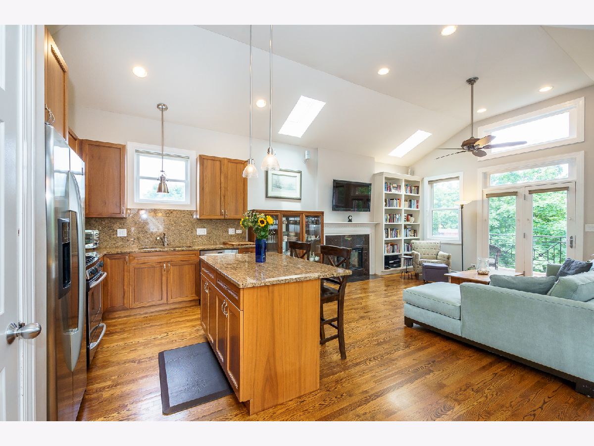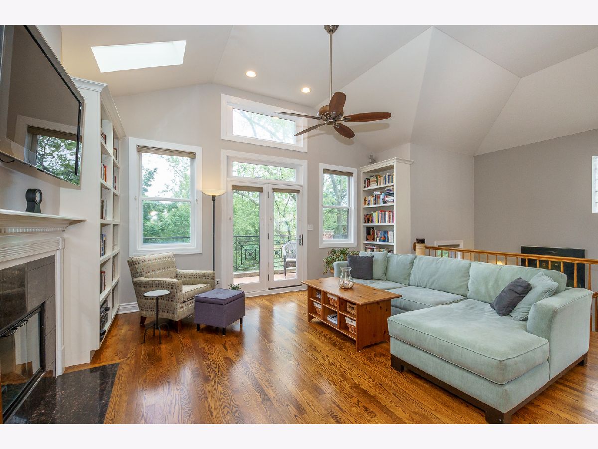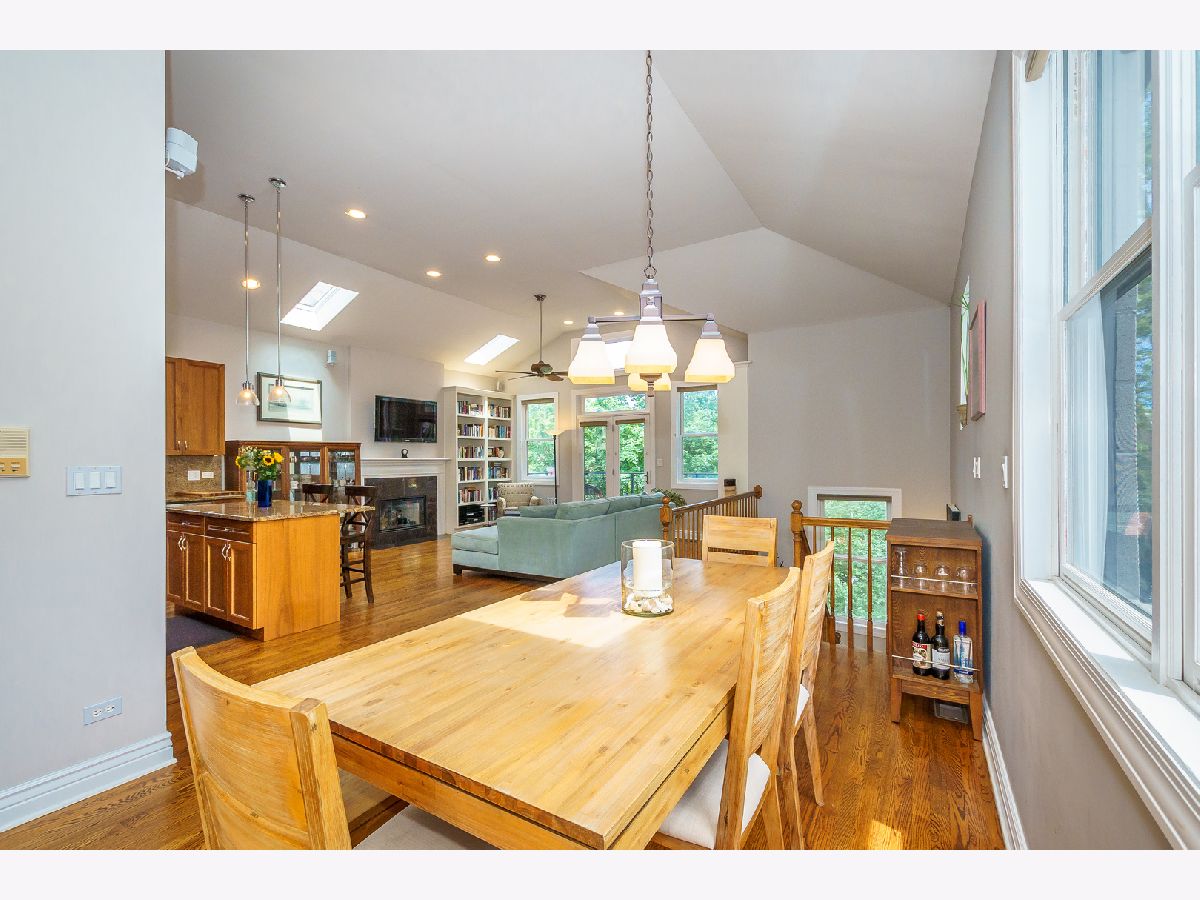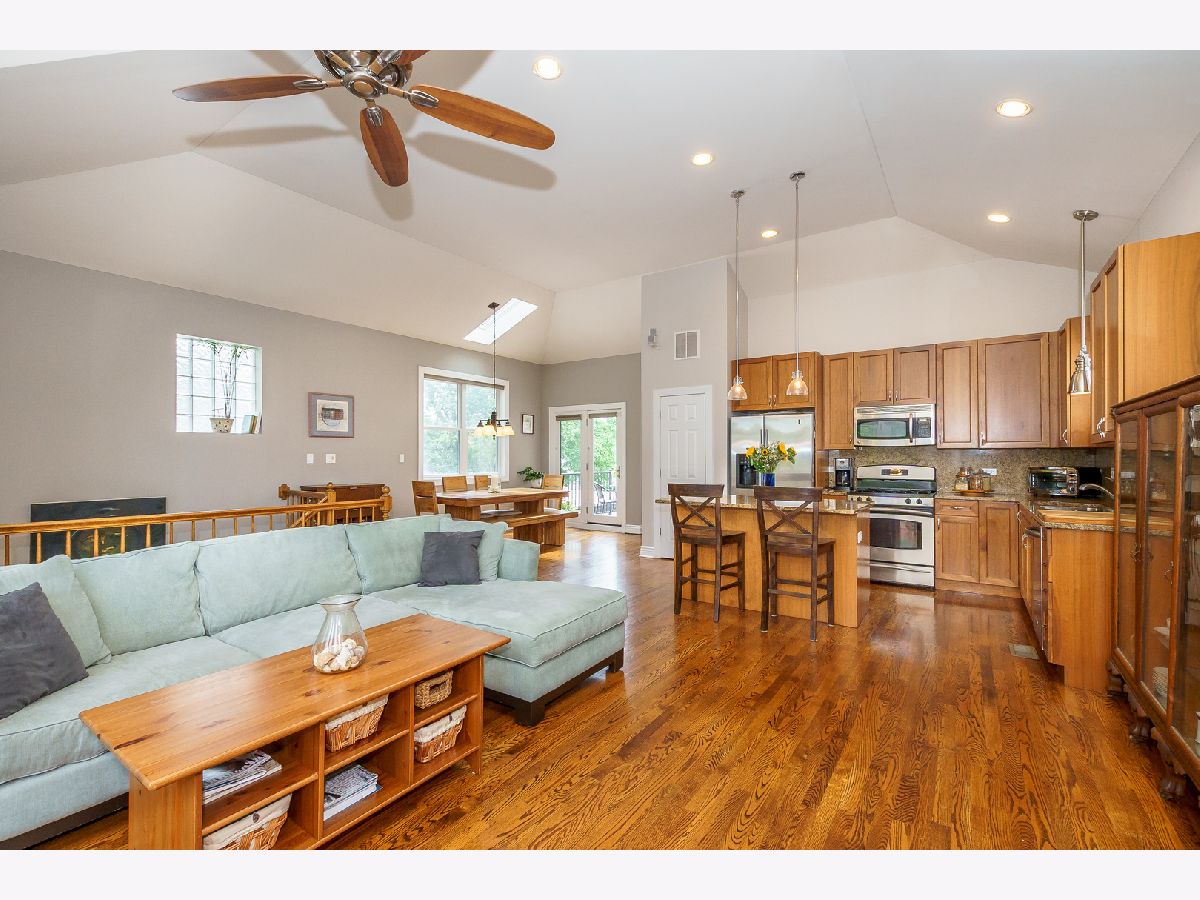 ** See 3D Tour! New Metra Stop being built 1.5 blocks away! Sunny Top floor 2005 construction 3BR/2BA unit with 12' vaulted ceilings and 3 outdoor decks (West, East and South Exposures). Pristine hardwood floors throughout. Contemporary open floor plan suitable for entertaining or working from home! New 2 Stage Central Air conditioning. WBFP. Walk-in Closet. Garage and Bike Storage included in this 4 unit building. Walk to lake, shops and transportation.