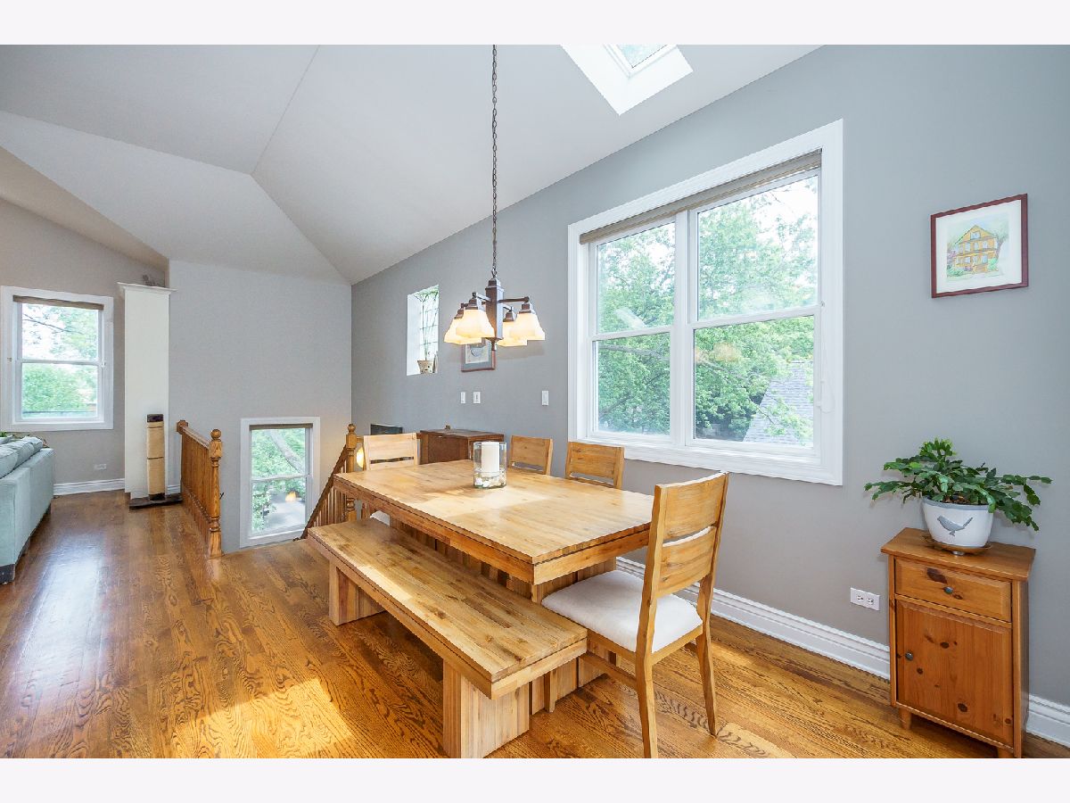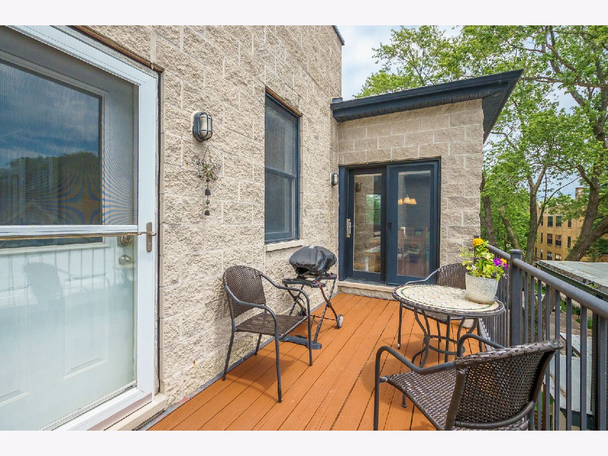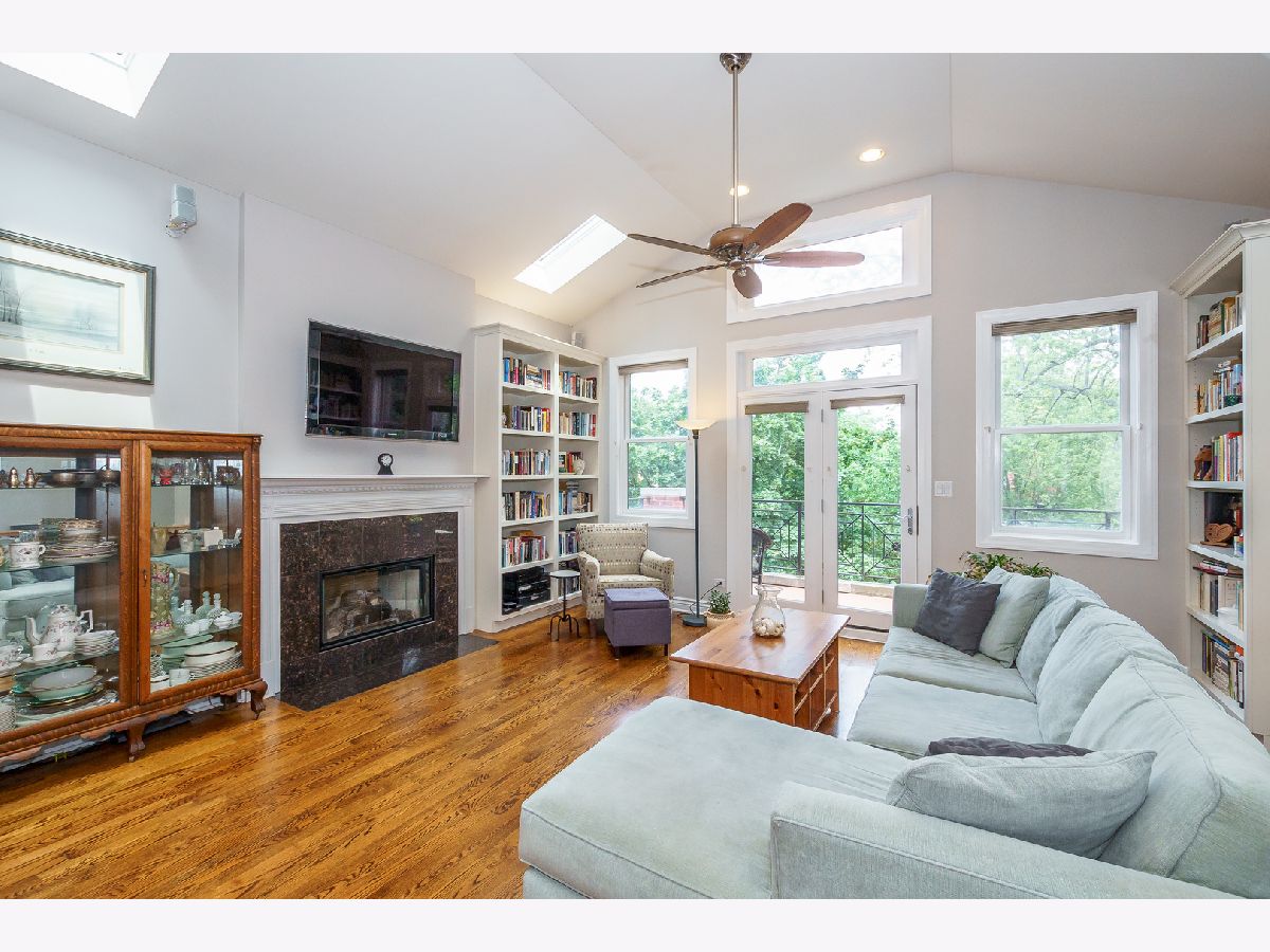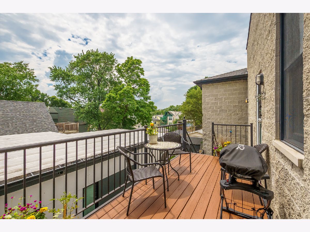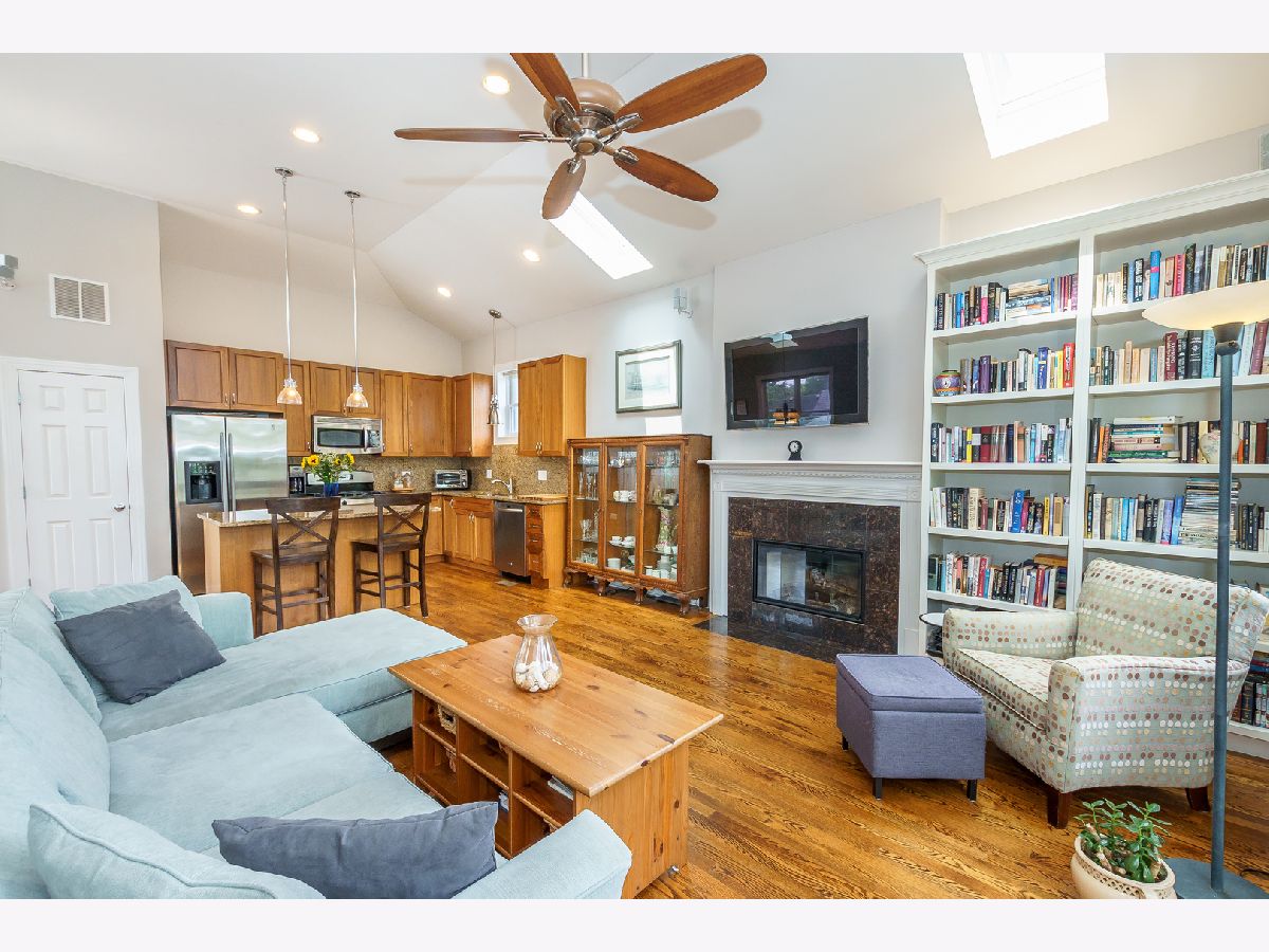 ** See 3D Tour! New Metra Stop being built 1.5 blocks away! Sunny Top floor 2005 construction 3BR/2BA unit with 12' vaulted ceilings and 3 outdoor decks (West, East and South Exposures). Pristine hardwood floors throughout. Contemporary open floor plan suitable for entertaining or working from home! New 2 Stage Central Air conditioning. WBFP. Walk-in Closet. Garage and Bike Storage included in this 4 unit building. Walk to lake, shops and transportation.
