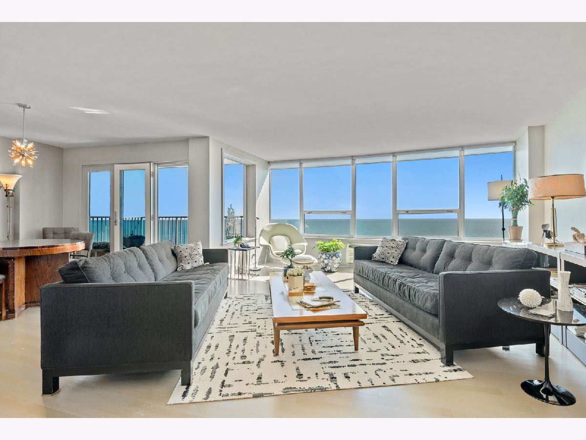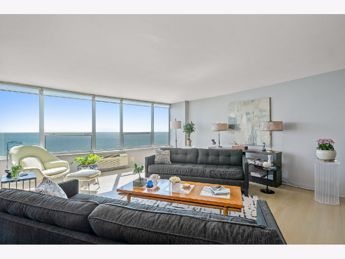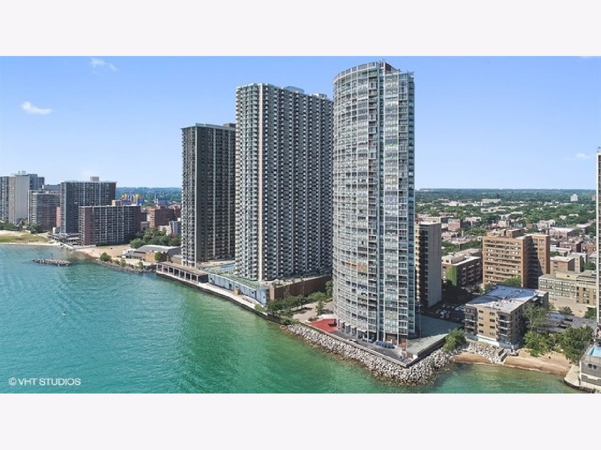 THE PINNACLE OF LAKEFRONT LIVING No other high-rise home in the city has magnificent sweeping lake views quite like those from East Point Condominium. Tucked just one building east of Sheridan Road, this architecturally unique boutique-style 44-storey building reaches 100' feet out into the water for maximum "lake effect." Stunning extra-large 36th floor 2-bedroom D unit provides east, west, and northern exposures with a balcony overlooking the lake. Entryway with large guest closet opens to an impressive foyer setting up a dramatic "wall of windows" in the generously proportioned living room-dining area. Solid white oak floors throughout. Cook's dream galley kitchen features black absolute granite countertops, maple cabinetry, and glittering Bizzisi glass tile backsplashes. High-end appliances include a slim, counter-depth Liebherr refrigerator freezer, complemented by an under-counter Viking beverage cooler. Decor convection oven and induction-heat cook top, GE microwave, Bosch dishwasher, and full-size washer and dryer complete the picture. Step across the foyer to a large storage room/pantry. From two large separate west-facing bedrooms you can see all the way to Oak Brook. Second bath features a rain-head shower and soaker tub. A walk-in shower tiled in perfectly fitted unglazed porcelain tile is the highlight of the Master bath. Generous closet space for clothes and linens throughout. Contemporary colors and tasteful finishes make 36D move-in ready. A 24-hour doorperson, onsite building engineer, indoor parking, and an exercise room, mini-library, party room, your own storage space, a bike room, and a seasonal pool on the 44th floor complete the amenities. Stoplight at Glenlake makes auto access to Sheridan Road easy. Redline and #147 express bus nearby. Hollywood beach, parks, lakefront jogging/biking trail, Whole Foods, Jewel, Mariano's, CVS, Walgreens, plus other shops, restaurants, and bars are an easy walk away. Why would you choose to live anywhere else? 2021 Monthly assessment 627.66 2021 Capital reserve assessment 322.56. = 950.22 Small special for the year 2021 will be paid by seller