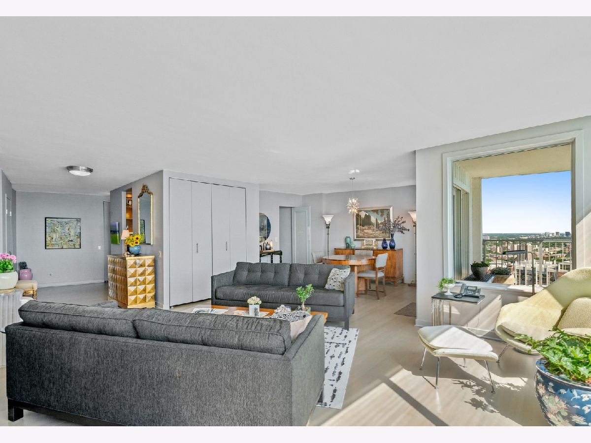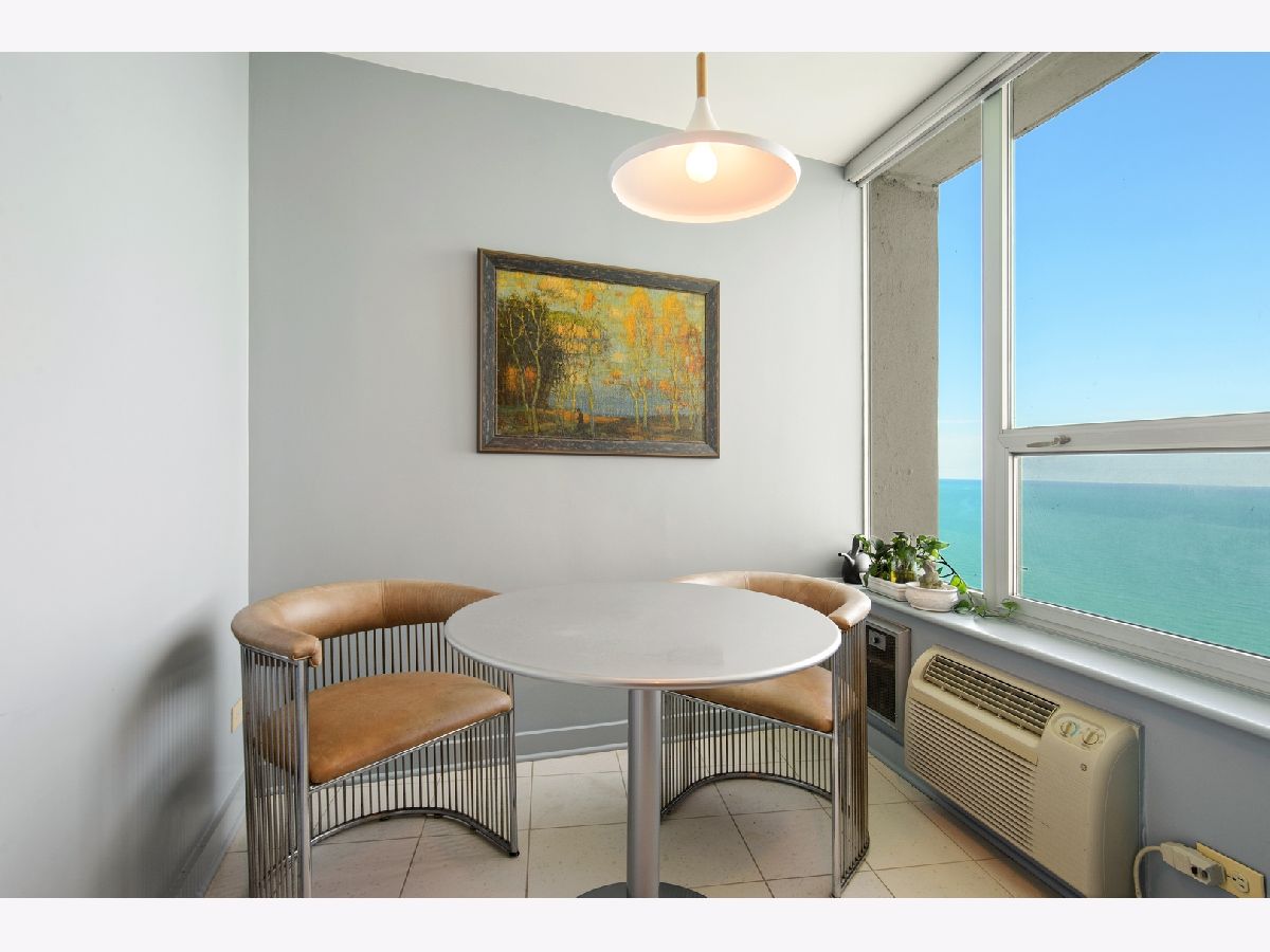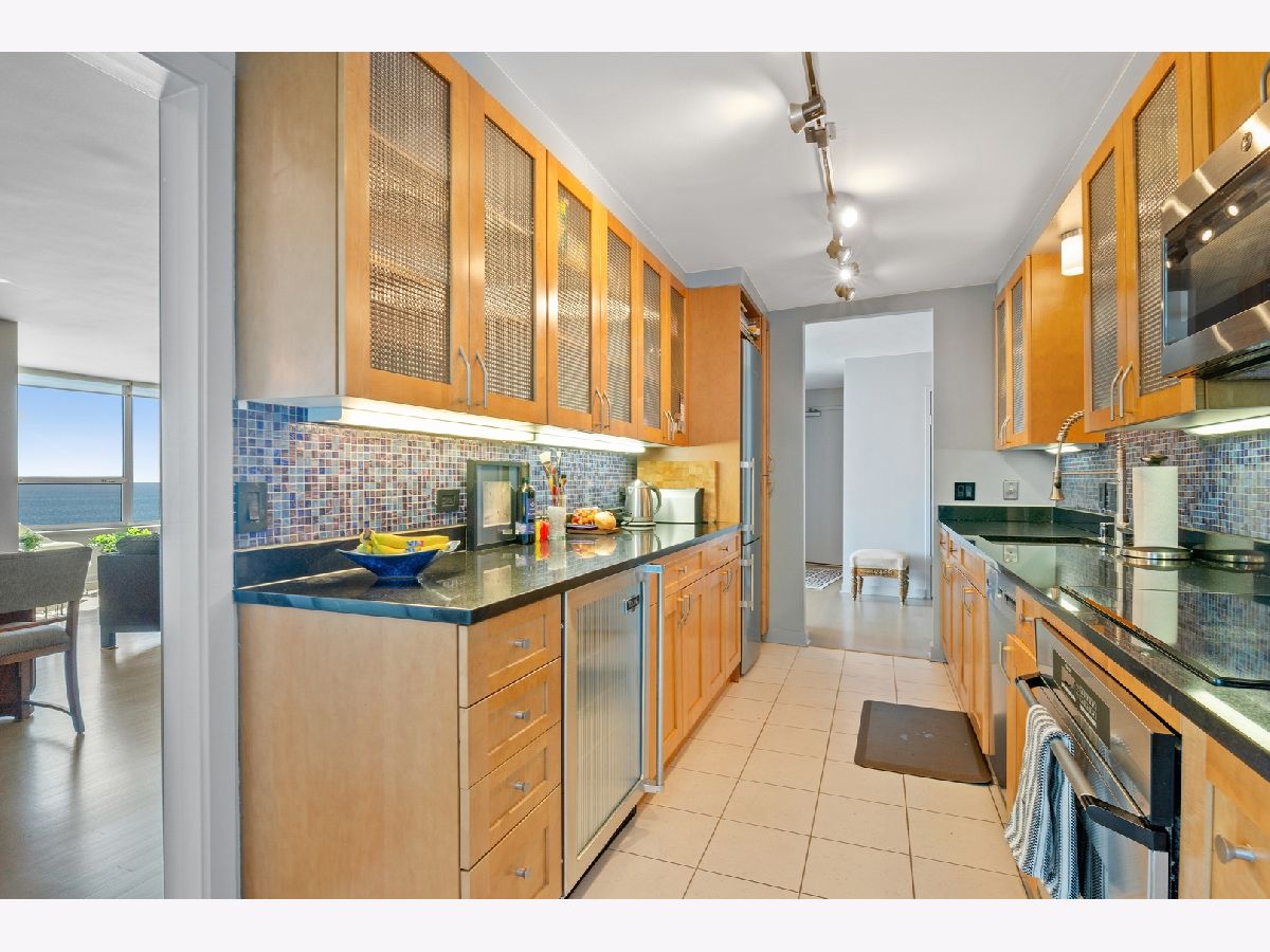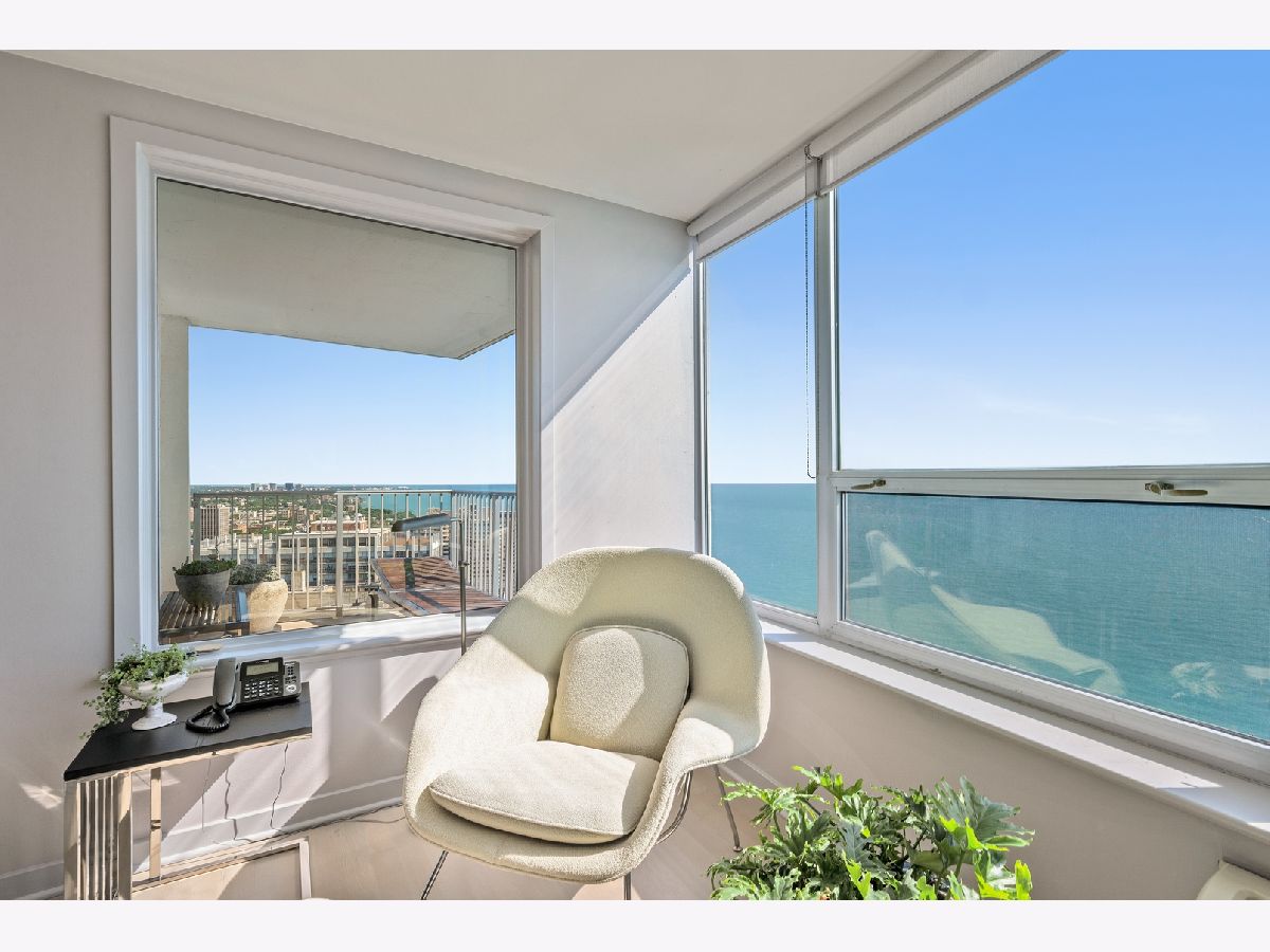 THE PINNACLE OF LAKEFRONT LIVING No other high-rise home in the city has magnificent sweeping lake views quite like those from East Point Condominium. Tucked just one building east of Sheridan Road, this architecturally unique boutique-style 44-storey building reaches 100' feet out into the water for maximum "lake effect." Stunning extra-large 36th floor 2-bedroom D unit provides east, west, and northern exposures with a balcony overlooking the lake. Entryway with large guest closet opens to an impressive foyer setting up a dramatic "wall of windows" in the generously proportioned living room-dining area. Solid white oak floors throughout. Cook's dream galley kitchen features black absolute granite countertops, maple cabinetry, and glittering Bizzisi glass tile backsplashes. High-end appliances include a slim, counter-depth Liebherr refrigerator freezer, complemented by an under-counter Viking beverage cooler. Decor convection oven and induction-heat cook top, GE microwave, Bosch dishwasher, and full-size washer and dryer complete the picture. Step across the foyer to a large storage room/pantry. From two large separate west-facing bedrooms you can see all the way to Oak Brook. Second bath features a rain-head shower and soaker tub. A walk-in shower tiled in perfectly fitted unglazed porcelain tile is the highlight of the Master bath. Generous closet space for clothes and linens throughout. Contemporary colors and tasteful finishes make 36D move-in ready. A 24-hour doorperson, onsite building engineer, indoor parking, and an exercise room, mini-library, party room, your own storage space, a bike room, and a seasonal pool on the 44th floor complete the amenities. Stoplight at Glenlake makes auto access to Sheridan Road easy. Redline and #147 express bus nearby. Hollywood beach, parks, lakefront jogging/biking trail, Whole Foods, Jewel, Mariano's, CVS, Walgreens, plus other shops, restaurants, and bars are an easy walk away. Why would you choose to live anywhere else? 2021 Monthly assessment 627.66 2021 Capital reserve assessment 322.56. = 950.22 Small special for the year 2021 will be paid by seller