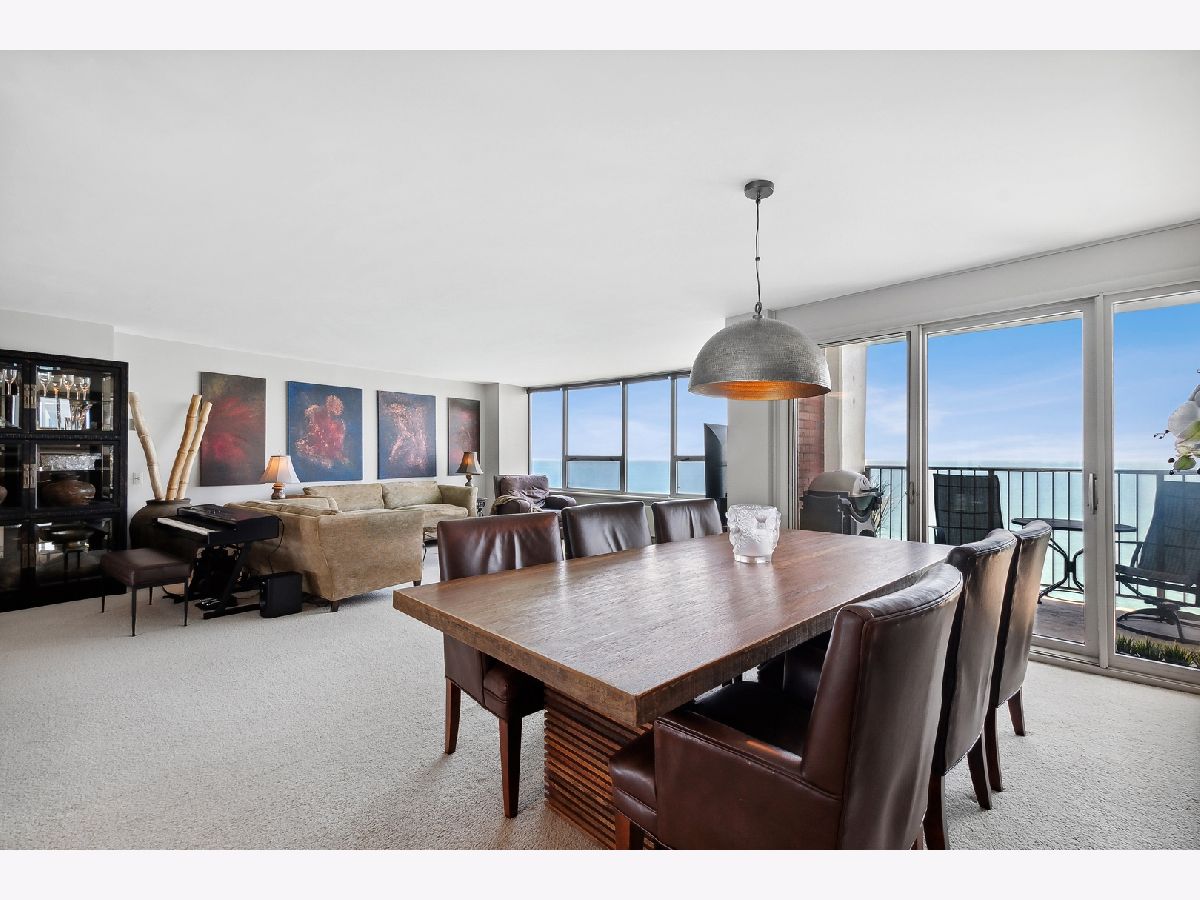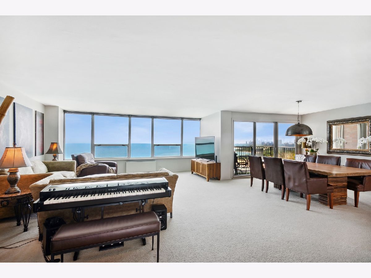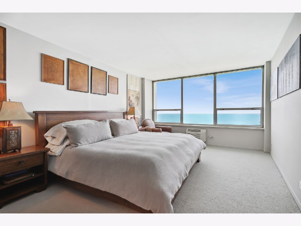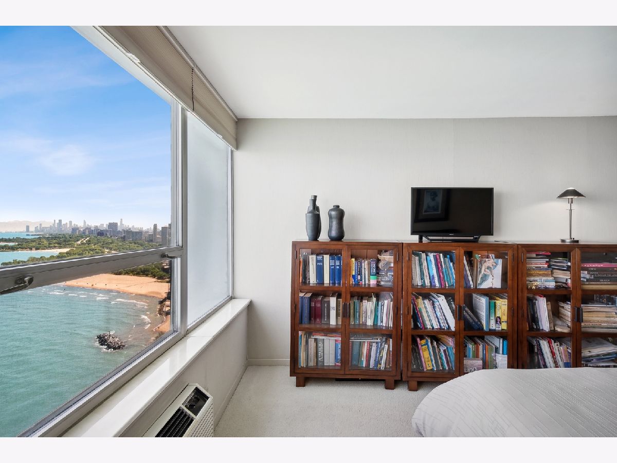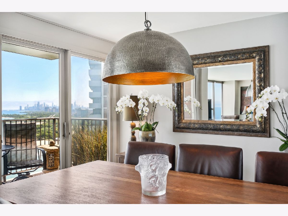 COMPLETELY UNEXPECTED, INSIDE AND OUT Enter a new world of architectural wonder in this intriguing 44 story north shorefront condo based on a segment of a circle. Travel up to the 33rd floor to access your own brilliant stage for creative living. Your coveted "B" tier unit opens to a marble entry way immediately exposing an uninterrupted view of the Lake and downtown Chicago. The open-plan LIVING area opens to your PRIVATE BALCONY with window wall on your large dining area with private office space to the right, and a beautifully outfitted kitchen. Granite counters are complemented with a range that includes a double oven (convection and regular), KitchenAid microwave, and refrigerator-freezer. Your Whirlpool stacked washer and steam dryer complete the picture. Two roomy bedrooms face the lake for more breathtaking exposure to Chicago's best "lakescape" day or night! The master bath features a striking new tiled walk-in shower with spa showerhead. The second bath is generously proportioned with a tub/shower combo. STORAGE abounds throughout, from the guest closet at the entry to the walk-in closet in the master suite, plus your own private storage space in the building's basement level. The unit features radiant heat from the ceilings and a/c from wall units. EAST POINT, an architectural gem of a building, is 100% owner occupied with just 4 units per floor, pool, gym, party room, heated garage and 24-hour door staff. Pets welcome (no breed, size, or quantity restrictions). Walk to Whole Foods, Walgreens, CVS, restaurants, the beach and bike trail. Downtown is just about 25 minutes away via the Red Line train and 147 express bus. 2022 monthly assessments for this unit are $608.46 and the monthly capital reserve fund is $351.17 Regular parking fee of $125 per month includes weekly car wash and valet service. ADDRESS IS BEING CHANGED TO 940 W GLENLAKE.