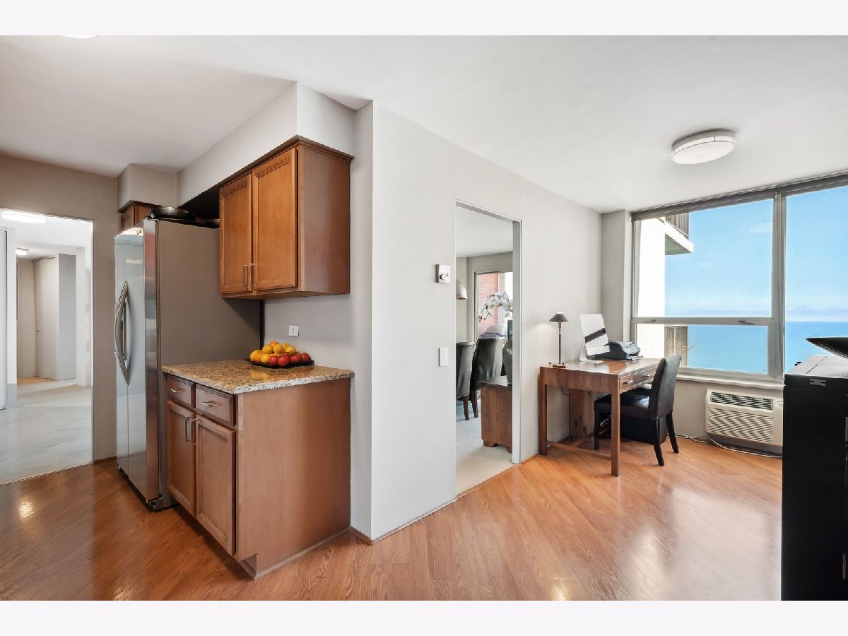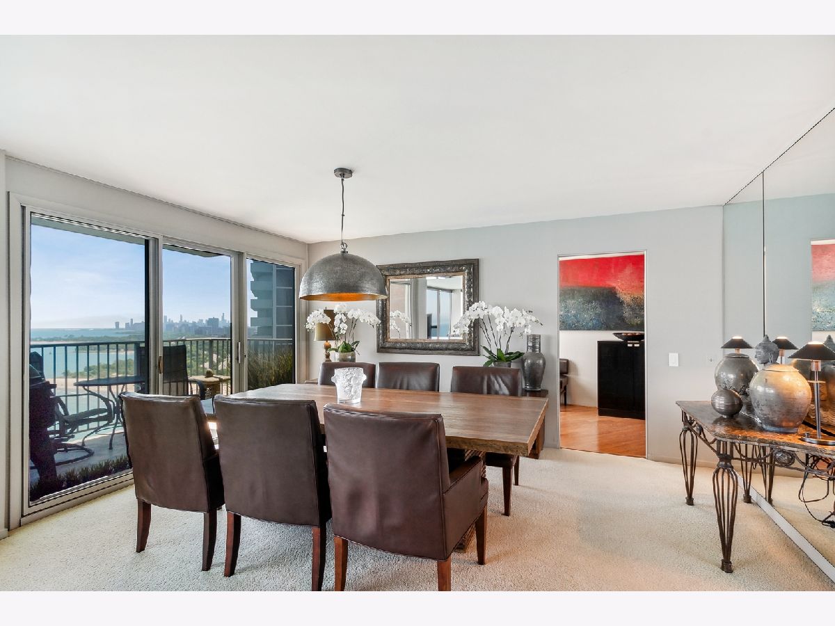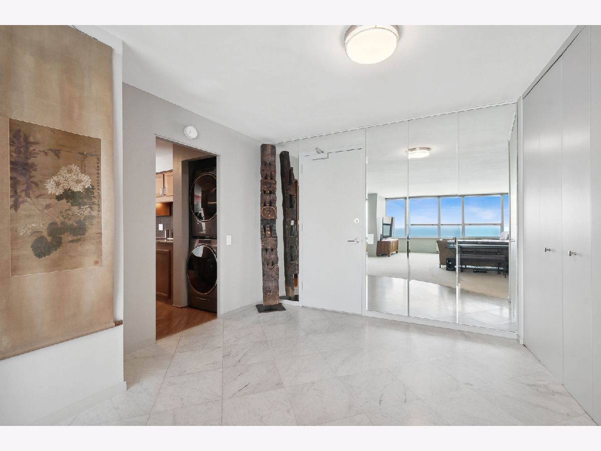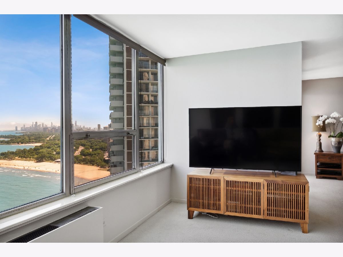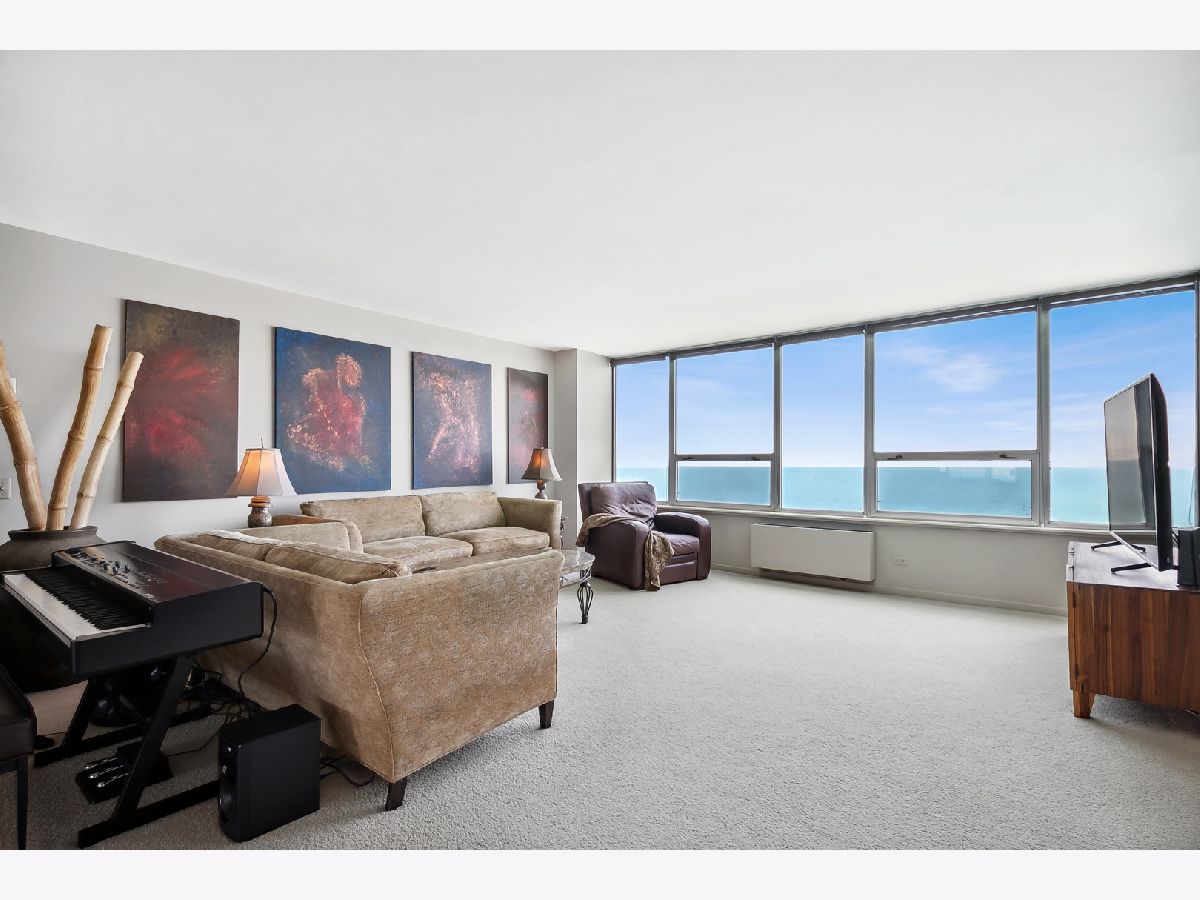 COMPLETELY UNEXPECTED, INSIDE AND OUT Enter a new world of architectural wonder in this intriguing 44 story north shorefront condo based on a segment of a circle. Travel up to the 33rd floor to access your own brilliant stage for creative living. Your coveted "B" tier unit opens to a marble entry way immediately exposing an uninterrupted view of the Lake and downtown Chicago. The open-plan LIVING area opens to your PRIVATE BALCONY with window wall on your large dining area with private office space to the right, and a beautifully outfitted kitchen. Granite counters are complemented with a range that includes a double oven (convection and regular), KitchenAid microwave, and refrigerator-freezer. Your Whirlpool stacked washer and steam dryer complete the picture. Two roomy bedrooms face the lake for more breathtaking exposure to Chicago's best "lakescape" day or night! The master bath features a striking new tiled walk-in shower with spa showerhead. The second bath is generously proportioned with a tub/shower combo. STORAGE abounds throughout, from the guest closet at the entry to the walk-in closet in the master suite, plus your own private storage space in the building's basement level. The unit features radiant heat from the ceilings and a/c from wall units. EAST POINT, an architectural gem of a building, is 100% owner occupied with just 4 units per floor, pool, gym, party room, heated garage and 24-hour door staff. Pets welcome (no breed, size, or quantity restrictions). Walk to Whole Foods, Walgreens, CVS, restaurants, the beach and bike trail. Downtown is just about 25 minutes away via the Red Line train and 147 express bus. 2022 monthly assessments for this unit are $608.46 and the monthly capital reserve fund is $351.17 Regular parking fee of $125 per month includes weekly car wash and valet service. ADDRESS IS BEING CHANGED TO 940 W GLENLAKE.
