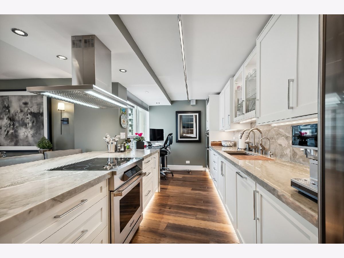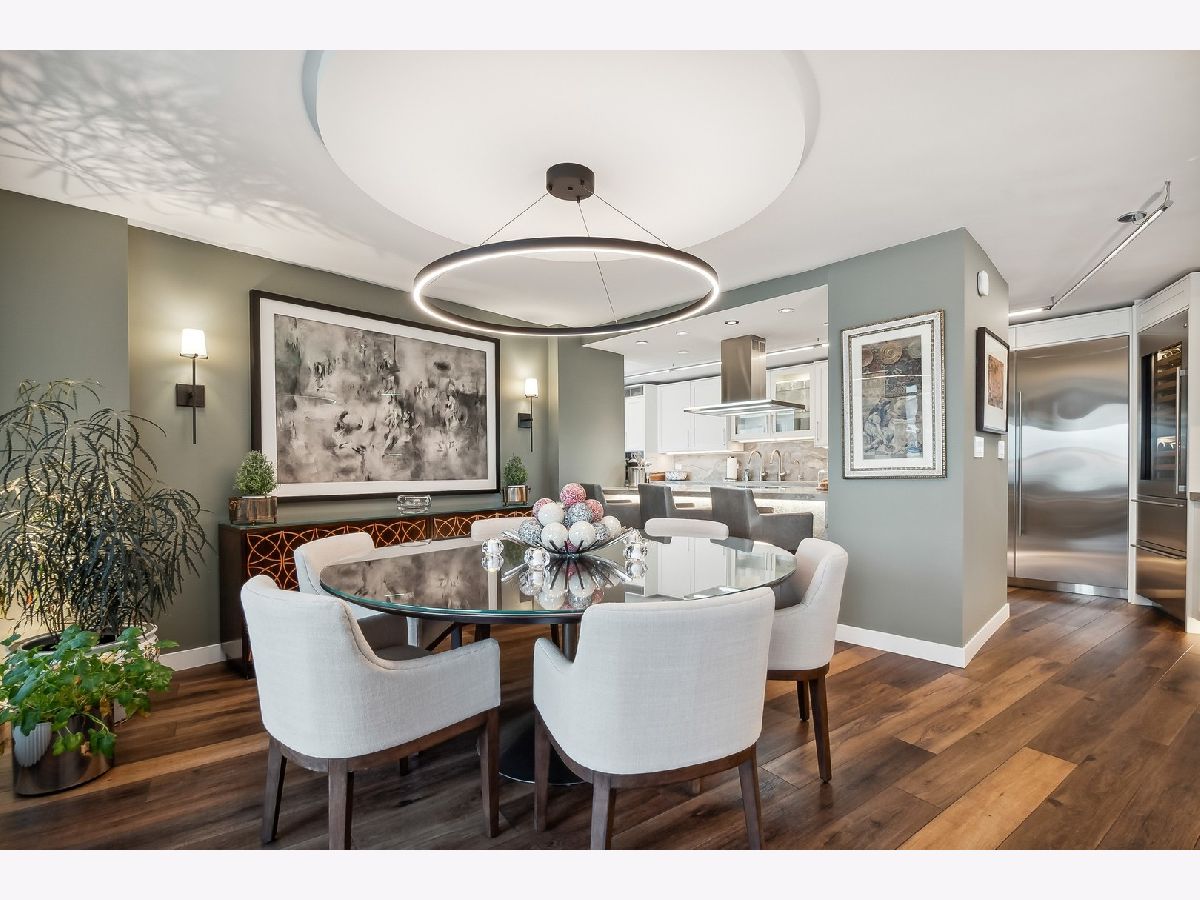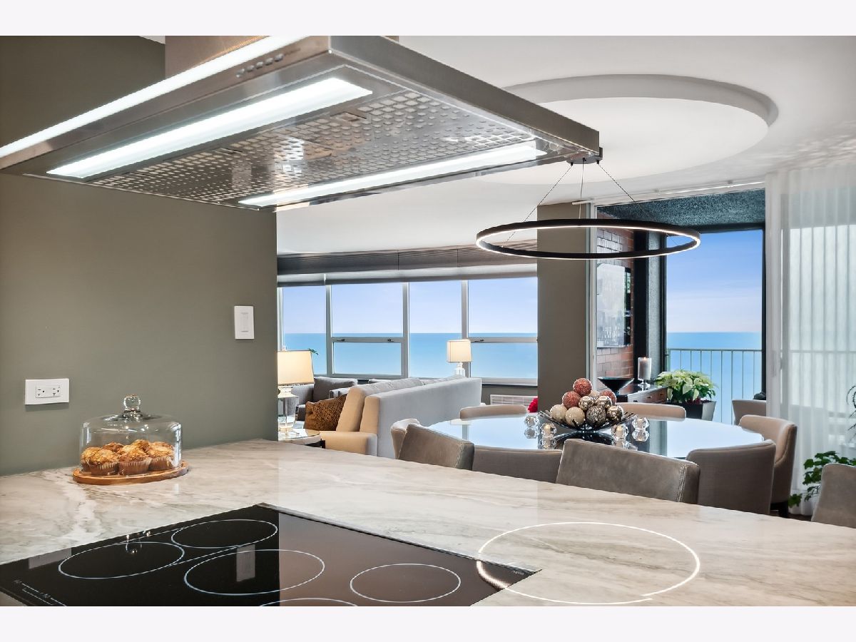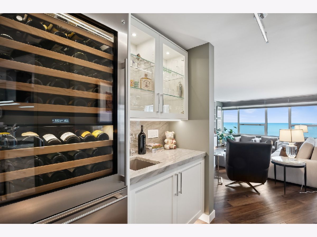 Waterfront living without parallel Originally designed to be a lakeside living dream home, the curved East Point Condominium building was far ahead of its time. Imaginative, generously proportioned, loaded with amenities, and the best in every way. The 42A unit now available was upgraded by its current owners, who worked passionately to maximize every feature. The result? An exquisitely updated Chicago home in the sky like no other. To the east, sweeping vistas of the lake wrap the generously proportioned living room, dining room, and enclosed balcony. Three bedrooms with western exposure see the sunset over a stunning view of our magnificent city. This home's nearly 360-degree views alone make it an exquisite choice for north-side living. And there's even more magic in the details. The kitchen is unparalleled: Sub-Zero refrigerator and freezer columns complement a Sub-Zero Wine Cellar with two refrigerated drawers. A Dacor professional induction range with a convection oven, steam oven, and microwave speed oven sets the stage for the serious chef or casual cook. Cap them off with a Futuro Italian range hood. Your 48" Kohler "Stages" kitchen prep sink is set in exquisite 2" granite countertops. Clean up with a top-of-the-line Cove dishwasher and a Kitchen Aid 1-1/4 HP waste disposal. The home also includes a high-end Miele laundry system, with a condensing heat pump dryer, and a DOS automatic detergent dispensing washing machine. Grohe, Hansgrohe & Axor faucets predominate with thermostatic shower valves, rain showers, body sprays, and hand showers throughout the kitchen and bathrooms. Baths are the ultimate indulgence. Jets, neck and back massage, and chroma therapy lighting are just the beginning. A party-sized shower in the primary bath features a 20" rain shower, body sprays, and hand showers for the total immersion showering experience. Robern medicine cabinets are featured in all three baths. Custom stone countertops and windowsills complement solid wood custom cabinetry with hard white maple doors and drawers. The inside story: this whole home was gutted to the concrete walls, with all-new metal framing that includes closed-cell foam insulation installed on all exterior walls. All interior walls between rooms were cushioned with 4.5" thick rock-wool insulation for noise reduction. Two layers of 5/8" fire-rated drywall was placed on all common walls with other tenants for sound and fireproofing. New solid core slab doors, jambs, and hardware have been installed-12 mm thick waterproof Shaw LV Goliath Plus plank flooring in every room. AprilAire humidifier assures whole-house comfort. APEC water conditioner and APEC purification systems ensure quality in every drop from your taps. Thanks to an 80-gallon Rheem high-efficiency heat pump water heater, enjoy near limitless hot water production. New Friedrich through-the-wall A/C heat pumps are in all three bedrooms, living room, and kitchen. Stelpro convection heaters throughout. FLO by Moen automatic water shut-off valve. An all-new electrical system is featured, from load center(s) to wiring, switches, and receptacles, including high-capacity surge protection. In addition, copper water, waste, and vent pipes are all new. A "Smart Home System" makes everything easy to manage, from most kitchen appliances, Friedrich A/C heat pumps, Stelpro convection heaters, Rheem hot water systems, Flo by Moen, Laundry appliances, Leviton electrical systems, Nest video-doorbell systems, and Hunter Douglas, designer window treatments, completes the scene (with blackout and light filtering options in all rooms). Custom closet systems, bookshelves, and storage systems throughout. This stunning top-floor unit is top-of-the-line living, like residing in a 5-star hotel with your private spa! The rooftop pool, party deck, gym, and hospitality room add even more to the total experience of living in East Point. Valet garage, the express #147 bus stop just steps away, and the red-