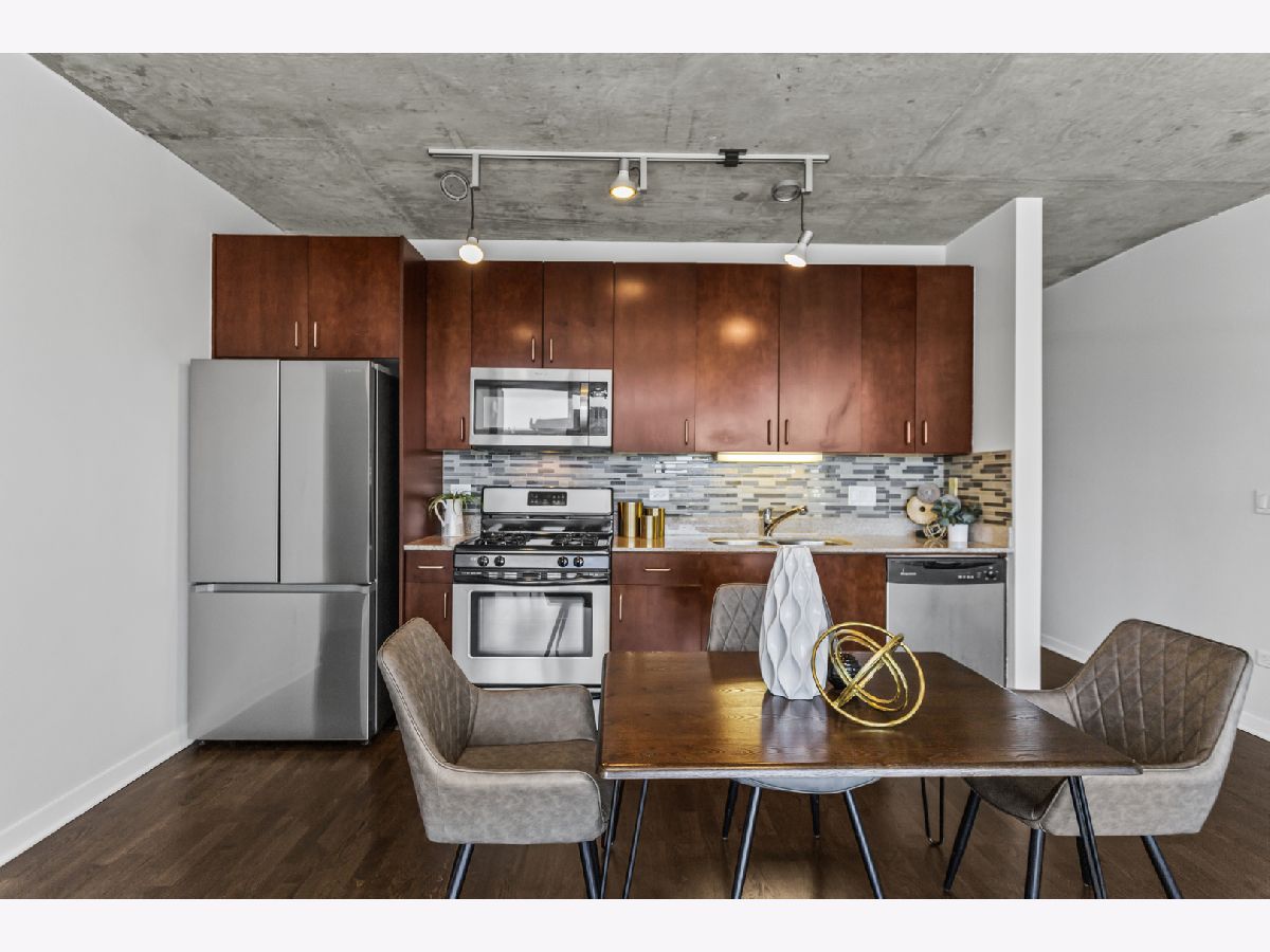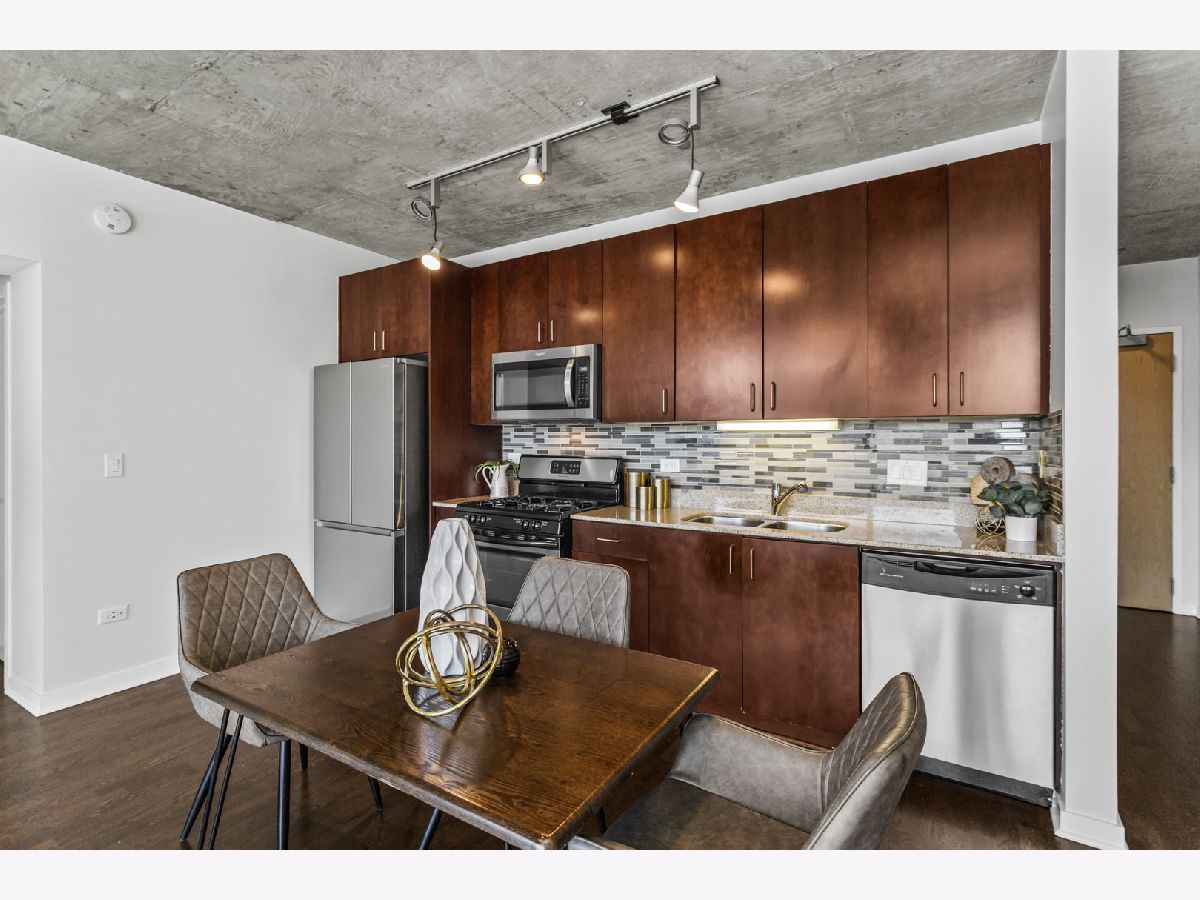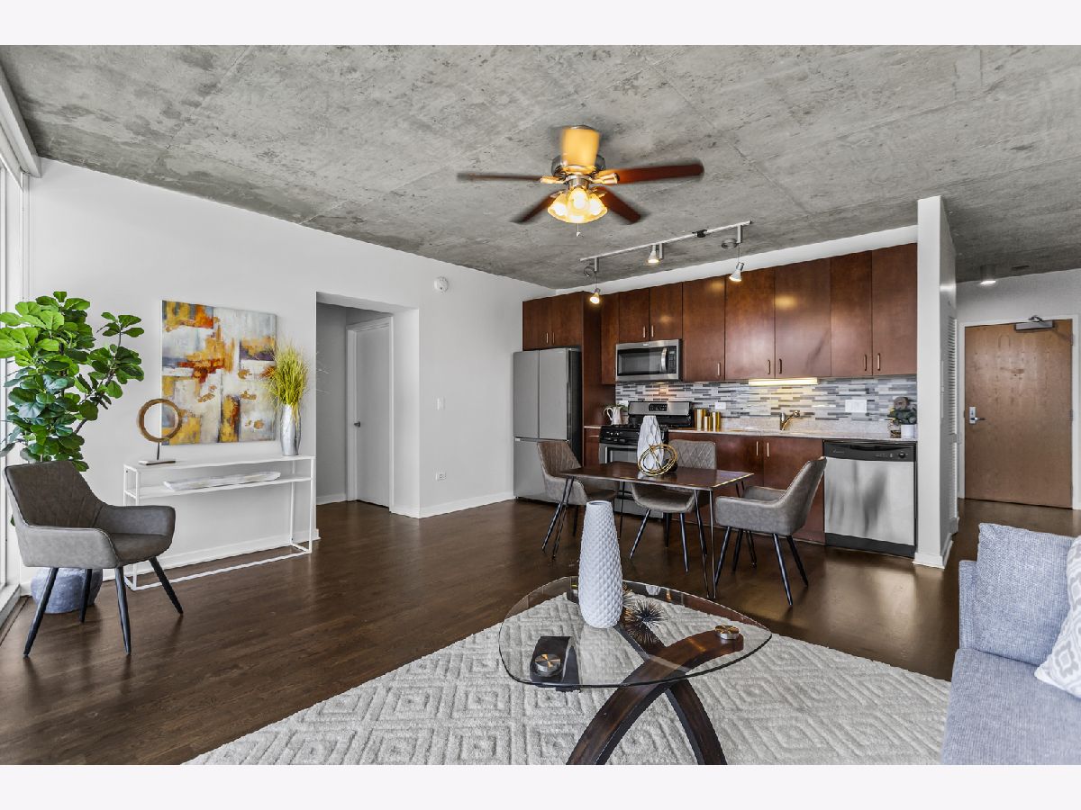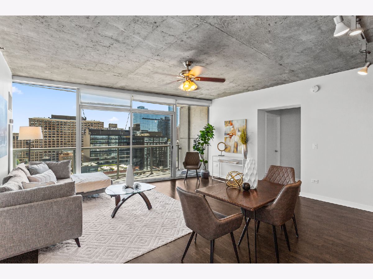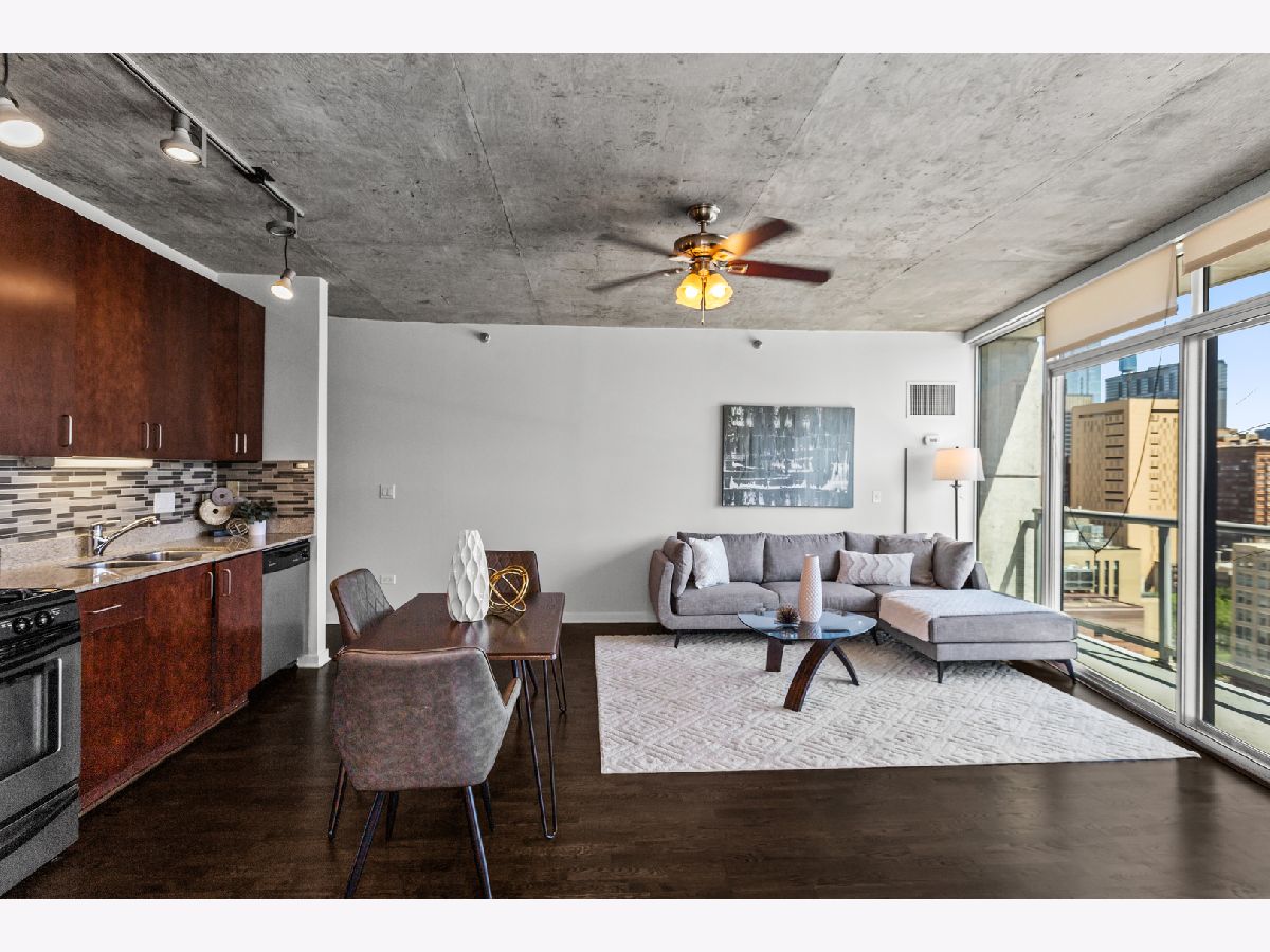 Experience elevated living in the heart of Printer's Row at Vetro, a premier full-amenity elevator building offering the perfect blend of luxury, comfort, and convenience. This high-floor, east-facing 1-bedroom, 1-bathroom condo is filled with natural light thanks to expansive floor-to-ceiling windows that frame stunning skyline and lake views. The freshly updated interior features newly refinished hardwood floors, carpet replaced in the bedroom, fresh paint throughout, and updated in-unit laundry for everyday convenience. Step outside to your large private balcony-the ideal spot to enjoy morning coffee or unwind with city views. The updated kitchen is equipped with sleek stainless steel appliances, perfect for cooking and entertaining. Residents enjoy access to a wide range of amenities including 24-hour door staff, a state-of-the-art fitness studio with spa, a private party room, and a spacious sun deck located on the 7th floor. Attached garage parking is also available for sale with the unit. Monthly assessments cover nearly everything you need: air conditioning, water, gas, additional storage, doorman service, clubhouse with spa and fitness access, exterior maintenance, lawn care, scavenger service, and snow removal-providing both value and peace of mind. Located just blocks from the Roosevelt Collection and the vibrant dining scene along Clark Street, this condo offers unbeatable walkability and access to the best of the city. With I-290 around the corner, bus stops at your doorstep, and the CTA Blue, Red, Orange, Brown, and Pink Lines all within a 5-10 minute walk, commuting is a breeze. You're also just a short distance from Union Station, Ogilvie Transportation Center, and the lakefront. Don't miss the chance to experience all that the Vetro building-and this beautifully appointed home-has to offer.