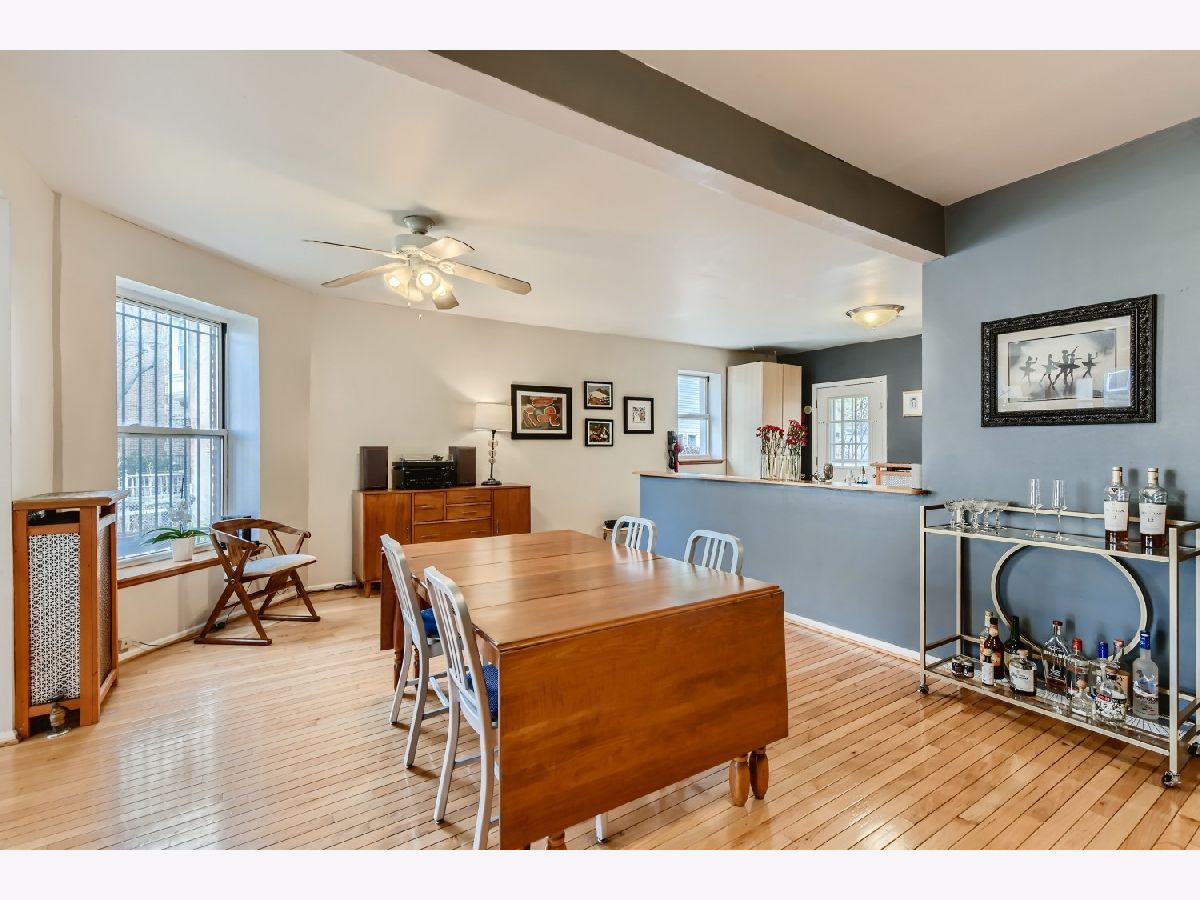 Large, sunny 2 bedroom, 2 bath condo 1/2 block from the University of Chicago. Separate living room + dining room + large sun room which can serve as an office or den. Recent updates include (2021) New refrigerator, dishwasher and microwave. Seller has updated both bathrooms, installed custom blinds and improved light fixtures. Unit features a private rear deck, hardwood floors throughout and Plenty of storage in-unit as well as huge designated space in the basement. Parking is included. Views of beautiful community garden in the adjacent lot. HOA fee includes heat, water and gas. Steps from the 61st St Farmers Market.