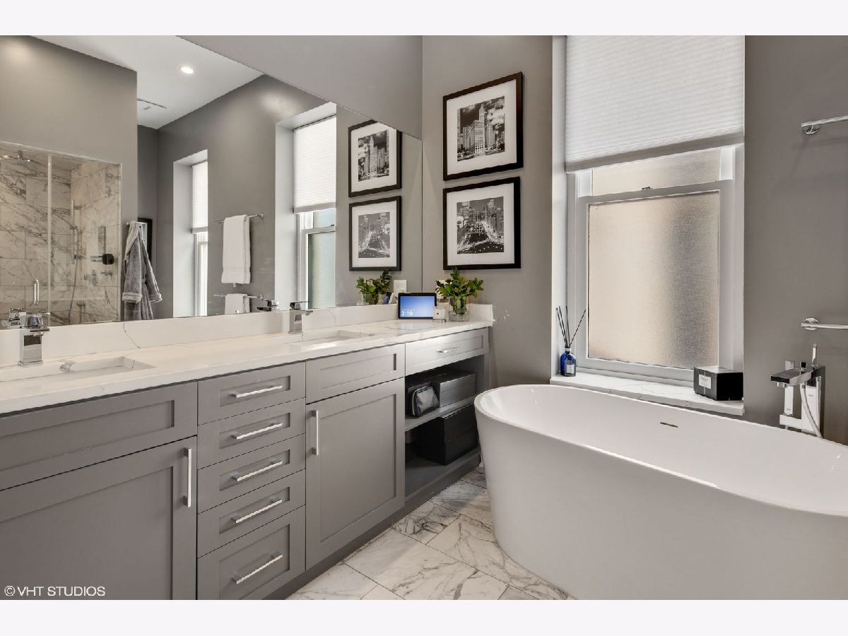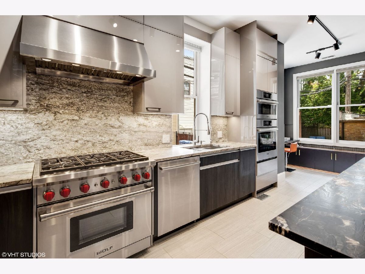 Gorgeous, Designer owned and renovated, 5 bedroom rehab in East Lincoln Park, across from Lincoln Elementary. Enter through the double doors into a vintage foyer/mudroom complete with coat hanger, bench and marble floor. Then continue through a second door into a stunning large main floor which boasts 12" Ceilings, a solid wood built-in closet with remarkable architectural detail.The grandeur continues with original vintage pocket Shutters, crown molding and wainscoting finishings throughout. The living room features a gas /wood-burning fireplace finished with Restoration Hardware double-door screen complete w/ accessories. This relaxing space then flows seamlessly into to a large dining area with a beautiful bronze and glass designer chandelier, and fantastic lighting flowing from the skylight on the second level. All new gut rehabbed eat in kitchen was designed for function and beauty. It includes, WOLF 6-burner range w/ convection oven, BOSCH dishwasher, 2nd combination oven (steam and convection) and built-in double door refrigerator. This custom kitchen features impressive finished from Millwork Cabinetry in Miami, aged marble on both surface and backsplash. Second living space off of kitchen has incredible convenience with built in bar, and access to the deck. As you move up to the second level via a grandiose staircase that boasts sophisticated banisters and large natural light from the 2nd floor skylight, you'll find a 12' storage, organized closet that will fit anything from your Costco goods to all of your linens. This floor hosts 3 bedrooms, full size side by side W/D, and all new bathrooms. In the primary bedroom you will find a large custom-built closet, second fireplace,12 foot high ceilings, tons of natural light, and space for not only your sleeping area, but also a built-in desk, armoire, and sitting area. The large primary bathroom boasts two windows, stunning tiles, and a large relaxing steam shower and soaking tub. Let the fun begin in the completely built out lower level which includes area for a gaming table, and large enough space to relax in an oversized sofa and large TV. Lower level is complete w/ two additional bedrooms, a full bath, and two built in desk stations. This home has a unique private outdoor space that includes landscaped back yard with lighting, lounging sofas/chairs, and main table with center fire pit, ideal for entertaining. The outdoor space is complete with artificial grass/covered puppy area for those cold rainy/snowy days. In addition to the stunning finishes, this beauty has all new plumbing, new electrical, tuck-pointing, interior and exterior Rhino Seal, and recently replaced dual zoned HVAC's. Two car garage.