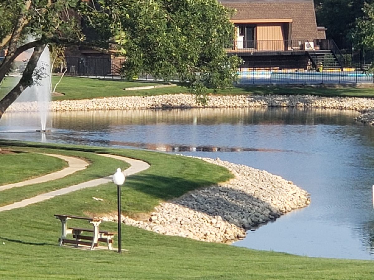 Enjoy the ambiance around the fireplace or the serenity of the water fountain view from the balcony. Bedrooms have view of the water fountain and courtyard. The master ensuite has a full bath and 9x6 walk in closet. 2nd Bdrm has extra large closet and access to 2nd full bath. New flooring throughout, updated bathrooms, newer kitchen cabinets. Excellent location in the heart of Schaumburg, convenient to all major expressways, Woodfield Mall, Schaumburg Library, Lifetime Fitness and Walking/Bike Trails. HOA fee includes heat, water, gas, lawn, snow removal & common area maintenance, play ground, clubhouse and pool. Assigned space #79 directly in front of building with plenty visitor parking. Great opportunity to make this your home.