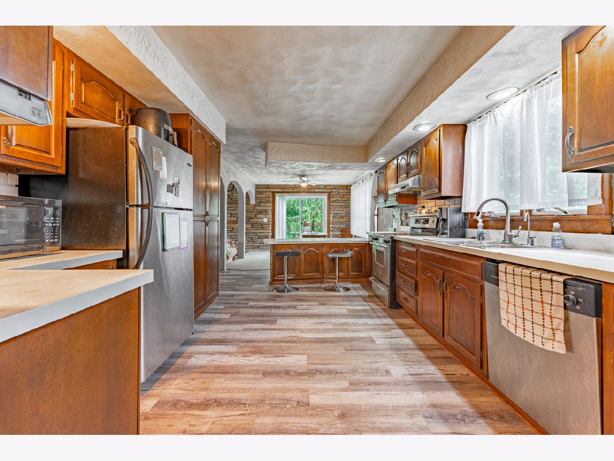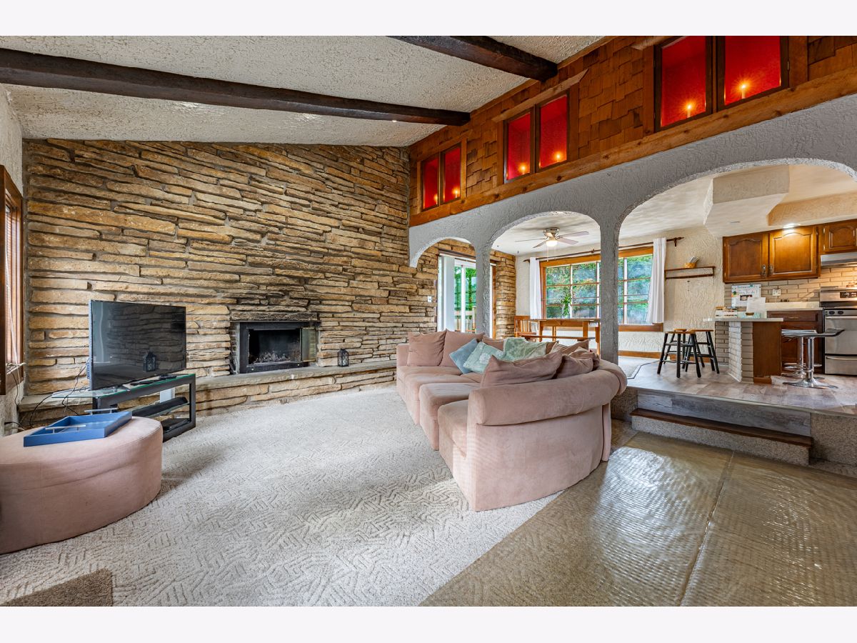This 3 bedroom 2.5 bath Loves Park Bungalow is a diamond in the rough!! Main floor offers large open living room with stone wood burning fireplace (new liner and tuck point in 2021). Open kitchen area with breakfast bar, eating area and formal dining room topped off with family room and large picture window looking into 3 season room. All original wood work in great condition. Large 1st floor laundry room with 1/2 bath. Upper level has 2 large bedrooms and full bath. Over sized 35x21 garage offering 220 power, with loft area would be great for car enthusiasts or extra room for entertainment. Roof on home new in 2013, roof on garage 2021. This home offers lots of natural light and amazing space. Back yard offers deck and seclusion, great central Loves park location. This is must see home!!