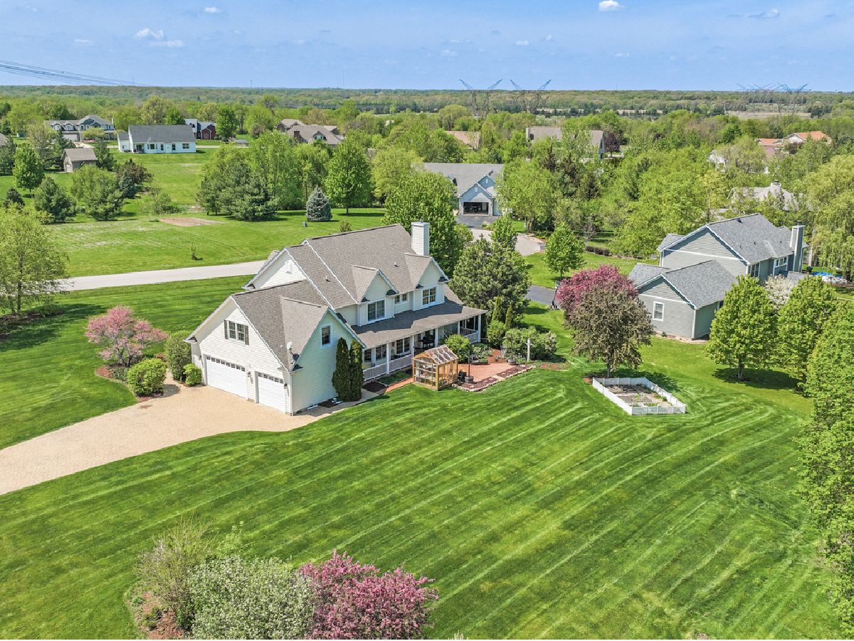 Welcome to this exquisite 6-bedroom, 3 1/2-bathroom home located in the charming town of Yorkville, IL. Nestled on an expansive 1-acre lot and in close proximity to the breathtaking Silver Springs State Park, this property offers an unparalleled blend of luxury, comfort, and natural beauty.Upon arriving, you'll be greeted by the inviting covered porches in both the front and back of the home, creating the perfect spots to relax and soak in the serene surroundings. Step inside, and you'll immediately notice the attention to detail and thoughtful design elements throughout. New carpeting installed on main and second floor June 2023.The main level boasts the primary suite, thoughtfully located on the first floor, which offers a private retreat with its own luxurious bathroom. You'll also find a bright and airy kitchen overlooking an elegant eating area, a cozy breakfast room, and a magnificent two-story great room adorned with a fireplace, creating a warm and inviting atmosphere. The current owners have repurposed the living room as a study, showcasing the versatility of this exceptional property. You will also find a large laundry area. The oversized 3-car garage features epoxy flooring, providing a sleek and durable finish. The large garage is ideal for storing outdoor gear and keeping the rest of the house pristine. On the second floor there is a 5th bedroom/bonus room, added in 2015, which provides about 550 square feet of finished space, perfect for a home office, playroom, or media room. Three more spacious bedrooms and a loft overlooking the family room complete the second level, offering flexibility and comfort for family and guests alike. The finished the basement adds a full bathroom, a bedroom, and a generously-sized recreation room, ensuring plenty of space for entertaining or quiet relaxation. Ample storage options are also available to accommodate all your belongings. Stepping outside, you'll discover raised garden beds and a convenient greenhouse, allowing you to indulge your green thumb and enjoy a variety of plants and flowers. With the covered porches both in the front and back of the home, you'll have ample space to unwind, entertain, or simply bask in the beauty of the surroundings.