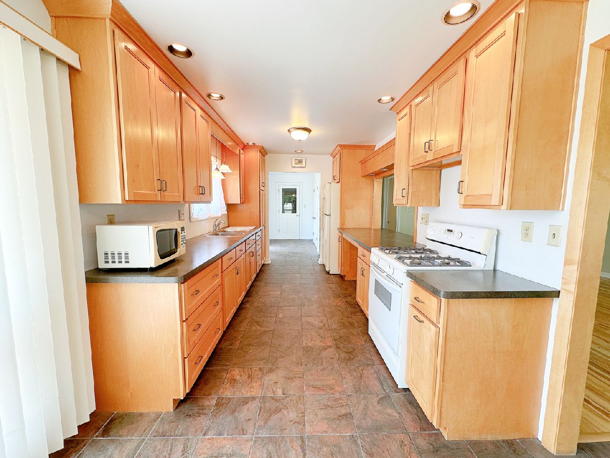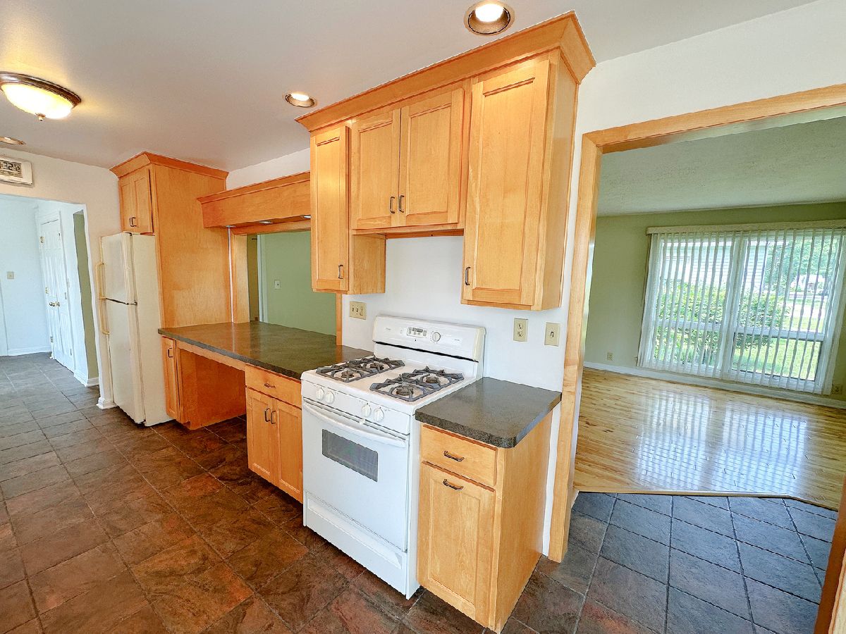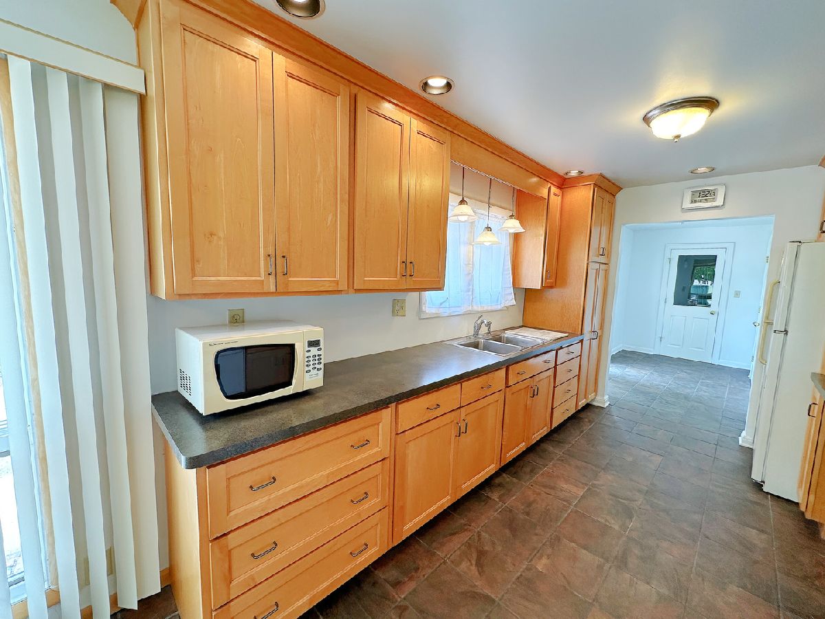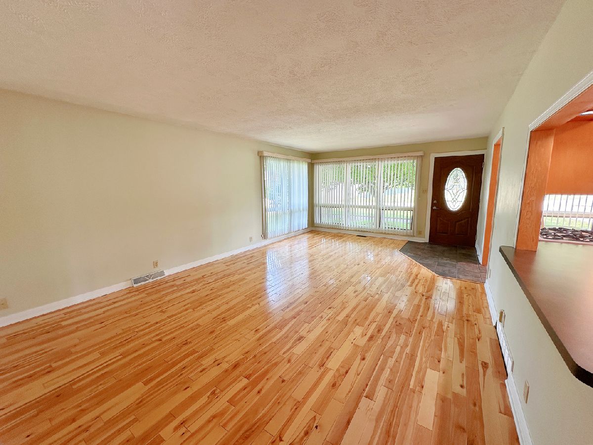 Welcome to this well-maintained 2 bedroom, 2 bathroom single-level home, offering 1,200 square feet of comfortable living space. This inviting home welcomes you in to a spacious living room featuring beautiful hardwood floors and large windows that flood the home with natural light. The updated kitchen offers ample cabinetry, generous table space, and a view overlooking the living area. A convenient mudroom adds functionality with additional cabinet and closet space. Both bedrooms are generously sized, and the oversized main bathroom boasts a large vanity, tiled walls and floors, and a tub/shower combination. The expansive basement includes a second bathroom, laundry area, and plenty of space for storage or future finishing. Outside, enjoy the large yard, a charming Barr brick walkway and patio, a spacious driveway, a side patio, and mature trees that offer shade and add character to the property. With its thoughtful layout, move-in ready condition, and inviting outdoor space, this home is the perfect place to settle in and make lasting memories.