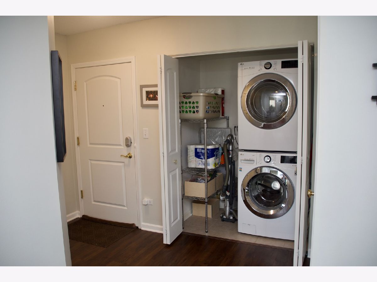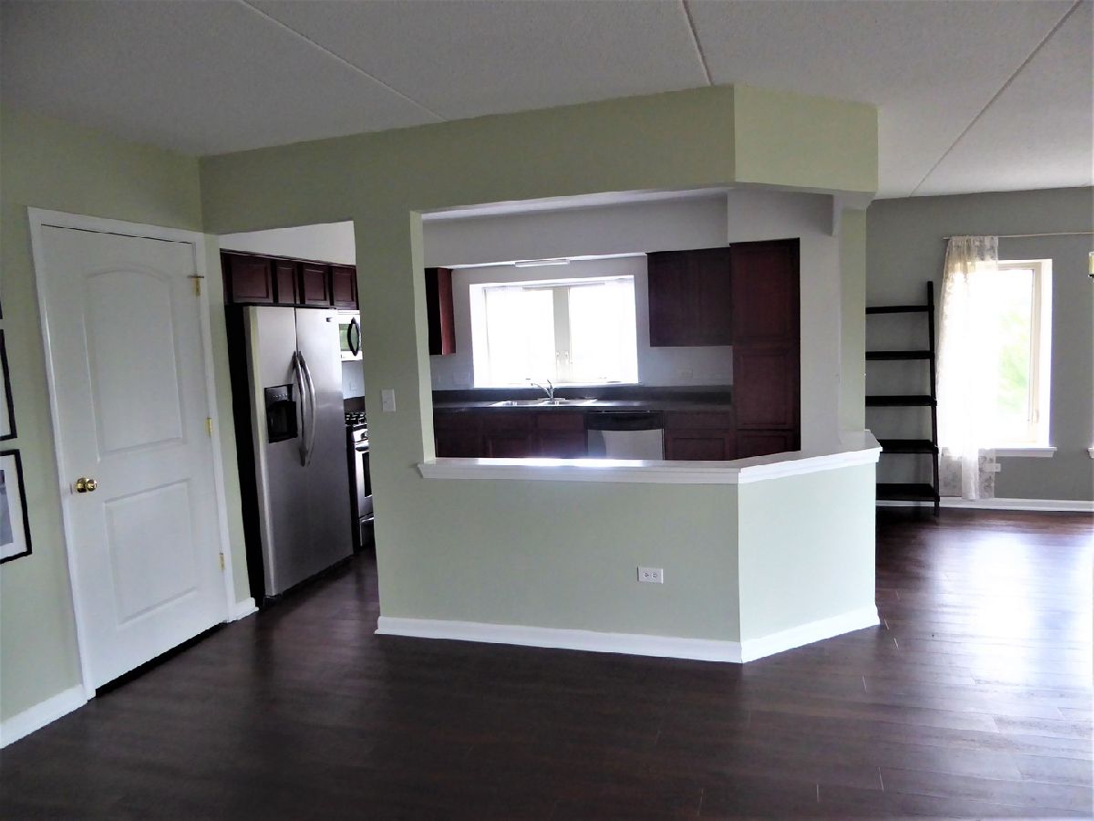 FROM THE MOMENT YOU WALK INTO FOYER YOU GLAD YOU MOVED INTO THIS SPECTACULAR NEWER CONDO BUILDING .Come see this nice OPEN FLR PLAN W/9 FT CEILINGS. Entire unit comes with cherry wood flooring.Upgraded kitchen features Cherry cabinets, SS appliances, overlooking the spacious floor plan of the dining and living rooms. All kitchen appliances are newer, stove is 2 years old. There is a stove hood that is vented to the outside. Microwave , washer & dryer replaced in 2019. Pantry closet for mom next to the kitchen. Master BR has double closets. Master bath with ceramic floors and double vanity . Main bath has shower and ceramic floors. Both baths have corium vanity tops. Large balcony overlooking the park. Underground heated parking plus storage cage. Laundry room in the unit with washer & dryer. Great Corner unit overlooking the green belt. Located near by expressway, O'Hare Airport.