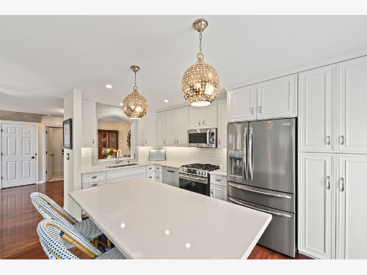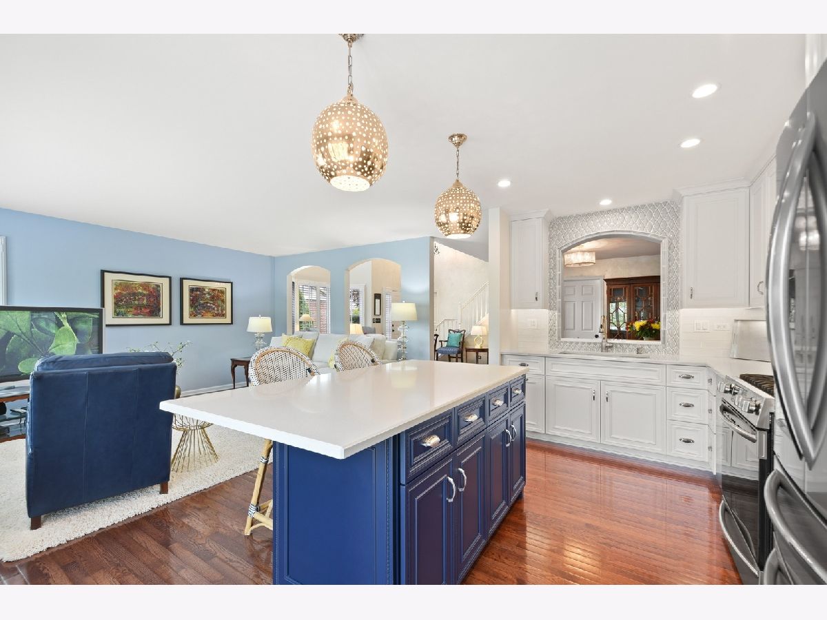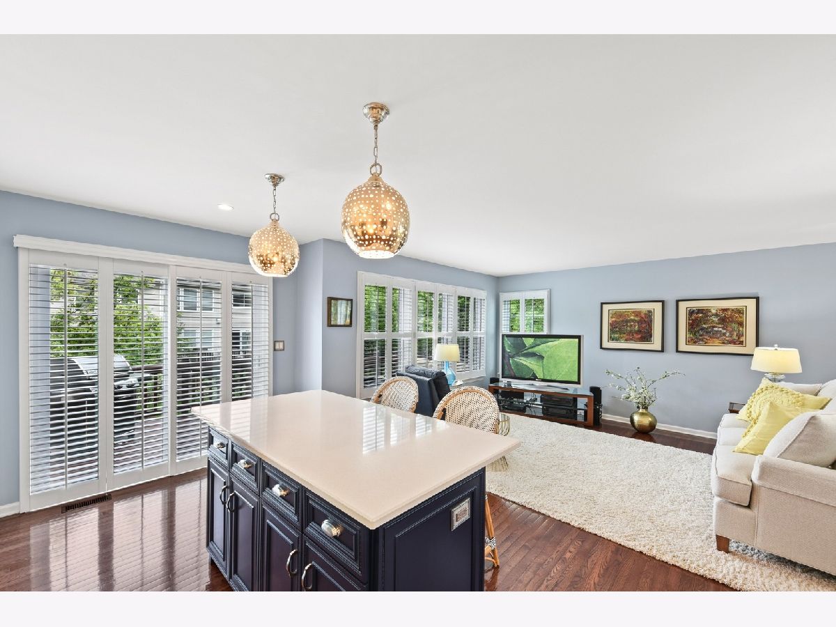 Unique opportunity to own a coveted END UNIT town home and the LARGEST floor plan in the neighborhood. Welcome to Hidden Lake, where residents enjoy easy access to miles of bike trails, highway, town, only 3.5 miles to the Lisle Train Station and short drive to vibrant downtown Naperville! Very quiet neighborhood with only one way in (no cut-thru, only town home resident traffic), bordering the Seven Bridges Golf Course and surrounded by a sparkling pond with resident swans. This town home checks all the boxes with every bell & whistle you can imagine! Gleaming white trim, doors, and Plantation shutters throughout the entire home! Enter into the 2-story foyer & living room with bay windows that allow for an abundance of natural light. This beautiful space boasts an open staircase, iron chandelier with crystal accents, hardwood flooring, ceiling fan, and dramatic arches that look through to the family room and kitchen. The floor plan is open and flows seamlessly from room to room. The living room flows into the dining room with hardwood floors and chandelier. There is a mudroom with coat closet coming in from the 2 car attached garage. Be prepared to be blown away by the Chef's custom kitchen renovation that spared no expense! Moon White Quartz countertops, white subway backsplash with decorative blue ice baroque tile enhancing the cutout over the kitchen sink, white custom ceiling height cabinetry with contrasting navy blue island boasts soft close doors & drawers, convenient "rollout" features for a heavy duty mixer, cutlery drawer, spice rack, and trash/recycle, spacious pantry cabinet with rollout shelves, Elkay stainless steel low divide double bowl sink with Moen motion sense faucet & soap dispenser, hardwood floors, under cabinet lighting, recessed canned lighting & 2 spectacular globe pendants over the island. Stainless steel appliances include a Bosch dishwasher, Frigidaire Gallery range with built in air fryer, and French door refrigerator with temp drawer. Sliding patio door leads out to the newly stained expanded deck with retractable awning. The kitchen opens to the family room highlighted by hardwood floors and a wall of Plantation shutter-lined windows that look out to the deck and green space. Heading upstairs to a master retreat you will never want to leave with Cathedral ceilings, ceiling fan with light fixture, walk-in closet with organizers and double door entry into the private master bathroom with corner jet tub, glass enclosed shower, dual vanities and private water closet. Convenient 2nd floor laundry room has wire shelving. There are 2 additional bedrooms with spacious closets. Currently bedroom 3 has a loft cutout and is being used as an office, but could easily be converted back into a private bedroom. 2 bedrooms share a hall bathroom. The open staircase has a spectacular view over the 2-story living room. Basement is English, unfinished, and awaiting your special touches or the perfect space for additional storage. Updates/Upgrades include high efficiency HVAC w/Aprilaire humidifier & healthy climate filter cabinet '16, ejector pump '19, sump pump '10, 50 gallon water heater '10, windows & patio door '07-'17, insulated garage door '13 w/opener '17, oil rubbed bronze switch plates & hardware thruout, crown molding, epoxy floors & built-in cabinetry in the garage, new roof & driveway '19, carpet '10, expanded deck w/privacy wall, retractable awning, river rock bed & landscape improvements '12, Plantation shutters thruout '13, kitchen renovation '17. The town home is truly turn-key and very low maintenance, as this original owner has taken care of absolutely everything! Take the Virtual Tour to see so much more!