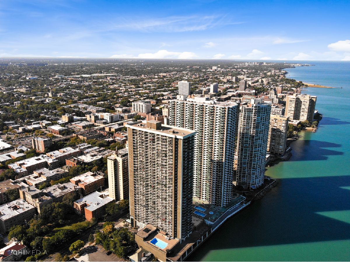 Enjoy Stunning South East Lake Views from every window in this Oversized One Bedroom / One Bathroom, Desirable "D" Unit Condo in the Highly Sought-After El Lago. Thoughtfully designed, the Open Floor plan treats you to Fresh Neutral Paint and Wood Laminate Flooring throughout. The Kitchen has been updated with Maple Cabinets, Granite Countertops and Gleaming Stainless Steel Appliances. Entertain in the huge Living Room / Dining Room that offers a Wall-of Windows to enjoy the spectacular Lake views. Generously sized, the Spacious Bedroom features Great Closet Space and to complete the Unit, there is a Full Bathroom. This Well-maintained Building offers: 24 Hour Door Staff, Fitness Center, Roof Deck, Business Center, Party Room, Onsite Property Manager, Coin Laundry Facility, Bike Room. This PRIME Location is just steps to: Lakefront, Parks, Granville red line stop, Wholefoods, Gyms, Shopping, Restaurants, Cafe's Nightlife, and More. Monthly Assessment includes: Heat, A/C, Water, Wi-Fi, Internet Access ~ Investor friendly Building with no rental limits