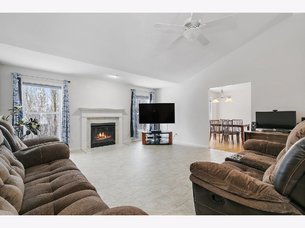 Charming ranch home in Kensington Pointe! This four-bedroom, two-bathroom gem offers a serene setting with no back neighbors, as it backs up to picturesque woods. Enter through the hardwood-floored foyer into the spacious family room adorned with ceramic tile that and a cozy gas fireplace with stunning views. The fully applianced kitchen, featuring a brand new stainless steel refrigerator, seamlessly connects to the family room and an inviting eating area. Envision stepping out onto a deck for a perfect spot to gather with family or savor the serene views. Future planning can make this a possibility. No back neighbors ensure privacy, and the conveniently located garage near the kitchen and laundry room adds to the practical layout. The laundry room boasts dual entrances - one off the kitchen and another at the home's entrance, making it an ideal space to handle dirty or wet shoes. Washer and dryer included! All bedrooms are generously sized, with the owner's suite featuring new carpeting, a walk-in closet, and a spacious ensuite. Bedroom No. 3 offers new carpeting and Bedroom No. 2 features ceramic tile flooring. Both rooms have scenic views of the wooded backyard. The fourth bedroom showcases a large window with serene woodland views. The walk-out basement is a blank canvas for your imagination, featuring roughed-in plumbing, 10-foot ceilings, and ample windows for natural light. Create additional living space and imagine stepping outside onto your future private patio with the potential for a concrete or brick paver finish. Updates include newer flooring throughout most of the main level, a new refrigerator in 2023, and fresh paint in the eating area. Conveniently located near schools, shopping, and easy I-88 access, this home offers a perfect blend of comfort and accessibility. Make it yours today!