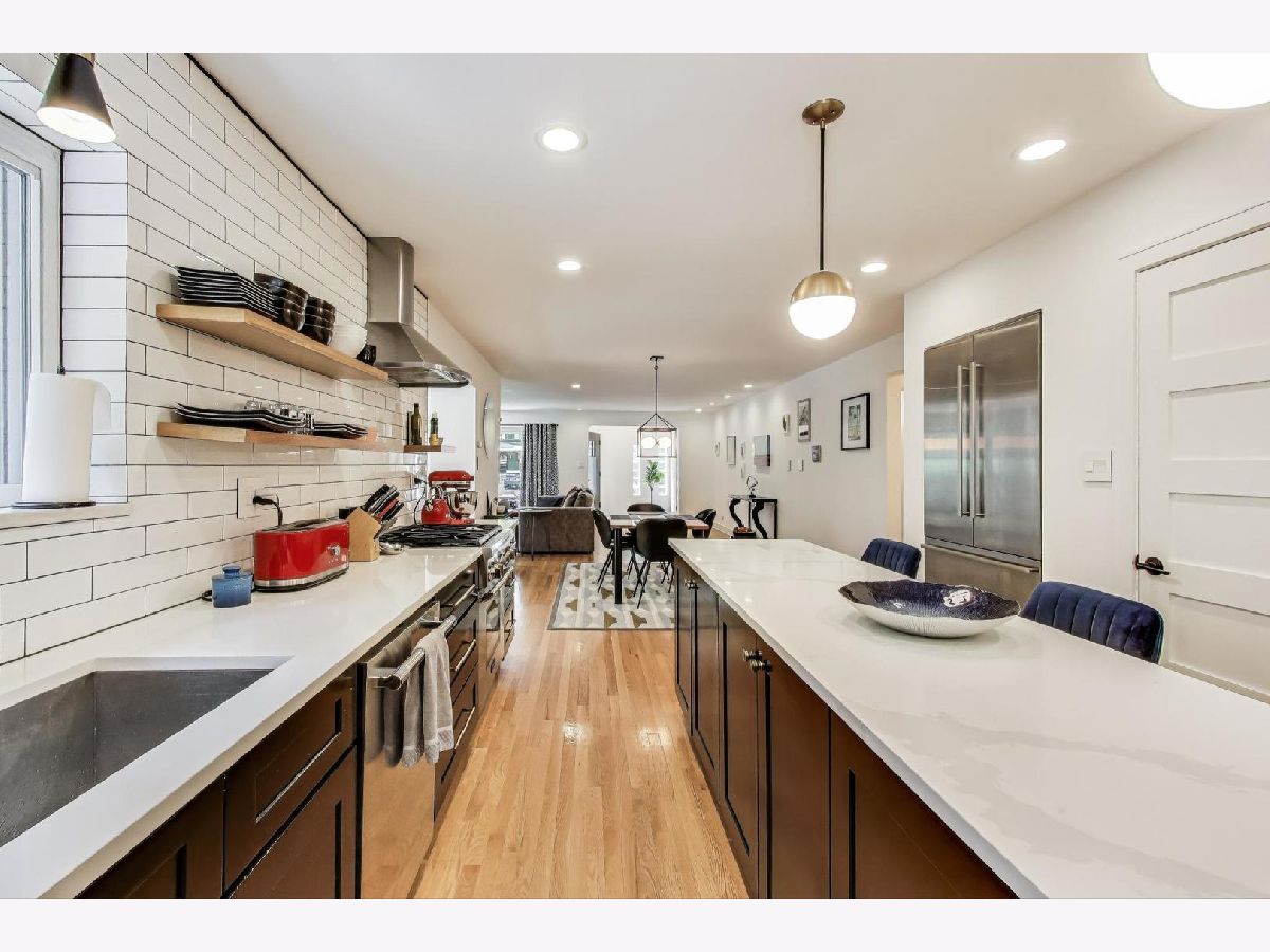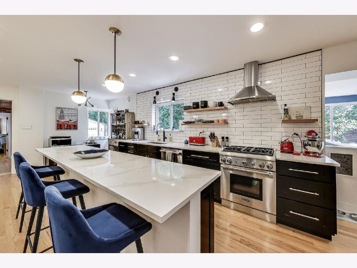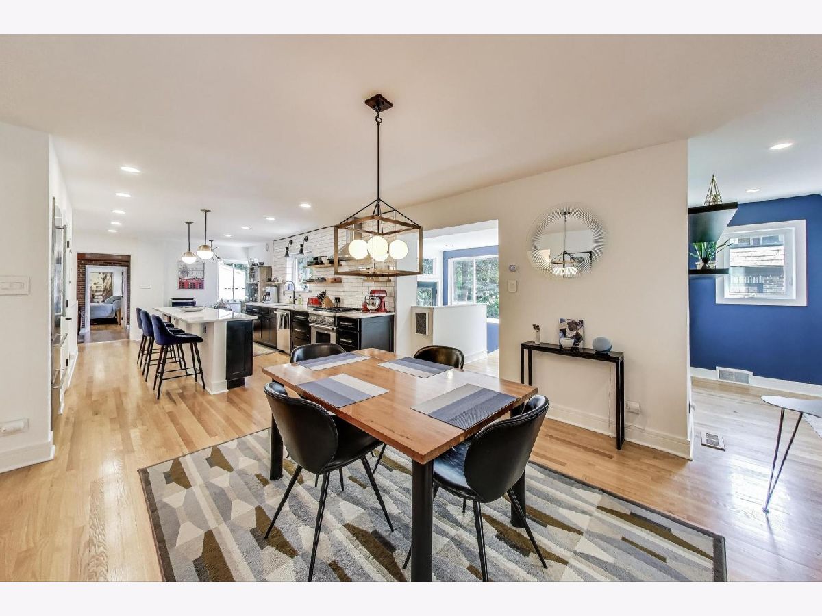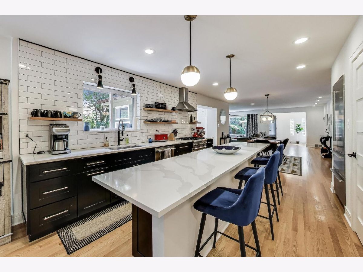 One of a kind! Have you been looking for a fully renovated ranch with a full basement and tons of storage? This beautifully restored open concept, mid-century ranch is just what you have been waiting for. True chefs' kitchen with amazing, oversized quartz countertops, high end ss appliances, eat in area and pantry. Additional side entrance with dream mud area, great storage, enjoy hardwood floors throughout. Large primary suite with two walk in closets, primary bath with custom double vanity, porcelain tile, walk in shower, step out to your serene yard, paved patio. Primary suite is adjacent to additional comfy family room or office space with original Wormwood ceiling with today's modern finishes. Two additional oversized bedrooms with great storage and two full newly updated baths on main level. Finished lower lever with recreational room and office/ 4th bedroom and full bath! Steps to Oak Parks estate section, parking for over 5 plus cars and a new 2.5 car garage. Extra room/office in basement. Walk to schools, train and downtown. You will not be disappointed!!