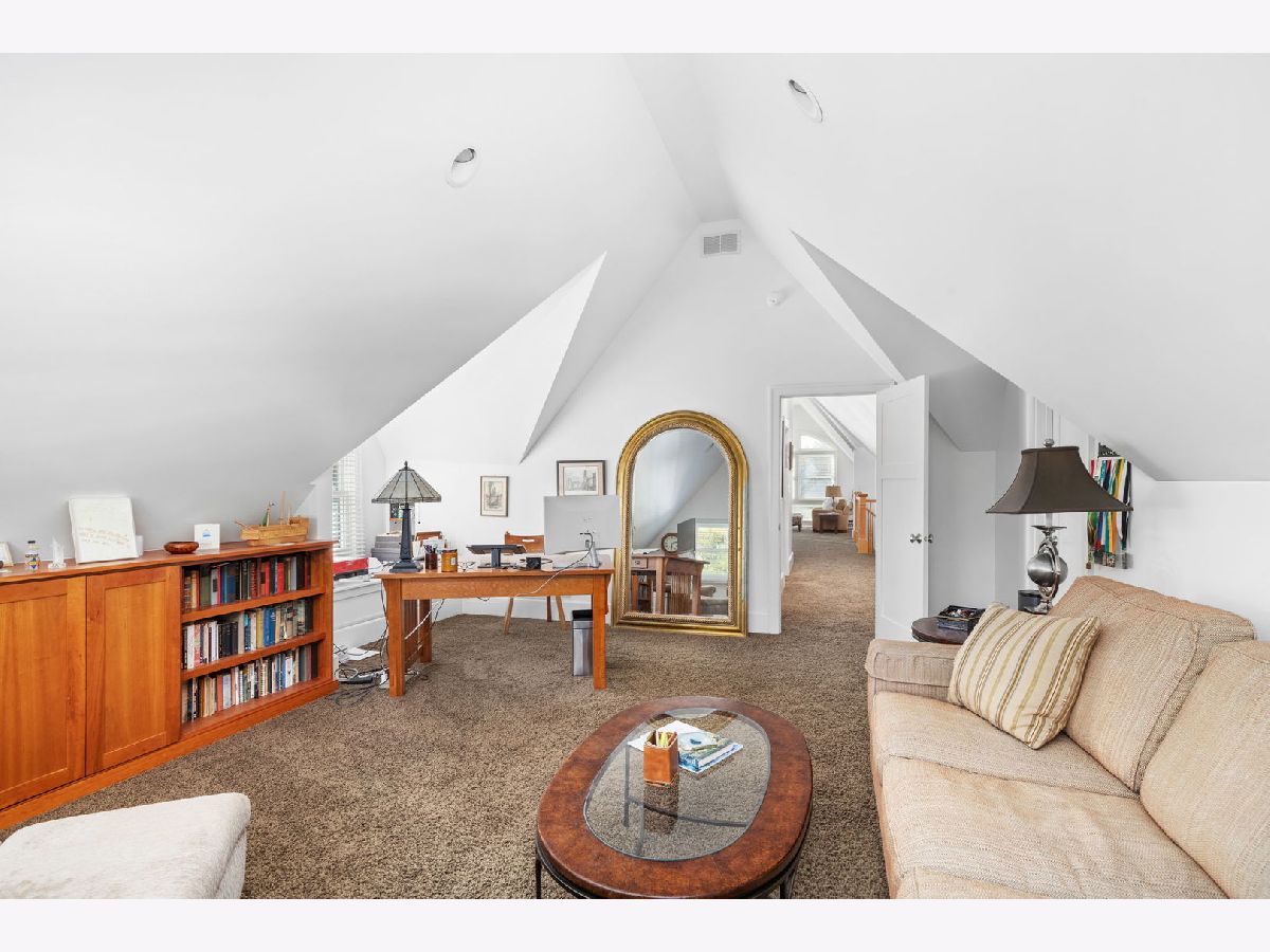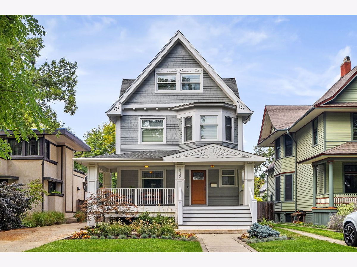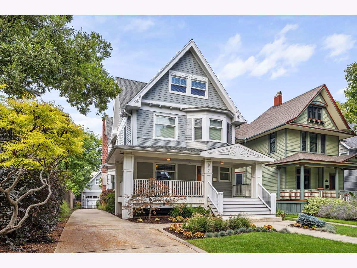 Where luxury meets functionality. Welcome home! This one-of-a-kind Oak Park residence is located in the heart of The Frank Lloyd Wright Historic District. Nearly 30 residences and buildings make up his masterpiece portfolio, including his own home and studio in the ever so loved community of Oak Park. 617 N Kenilworth was meticulously gut rehabbed in 2008. Three stories of new construction comprise an addition that was completed at the same time. There are a total of five bedrooms and four full and two half bathrooms that embody this picture-perfect property. The original structure blends seamlessly into the new construction. Pristine quarter sawn white oak flooring throughout is just the beginning. Natural sunlight drenches this envious floorplan thanks to endless "walls of windows." All staircases, handrails, balustrades, and posts have been precisely crafted. From the charming front porch to the welcoming foyer, you instantaneously feel a sense of hospitality. It has two primary suite options. One is currently being used as a penthouse office suite. The first floor is comprised of a charming living room, a striking open concept dining room and Chef's kitchen greet you. From high end appliances to luxury custom-made countertops and tiles, marble and granite per Ann Sacks, you are ready to effortlessly entertain friends and family. The first floor also boasts a gorgeous sunken family room which can harmoniously be accessed right off the kitchen. This intimate space encompasses a gas-ignite wood burning fireplace and a bank of floor-to-ceiling West facing windows with unobstructed views of the patio for a sensational sunset experience. Explore the second floor by proceeding up the winding staircase off the family room or take the second gorgeous staircase off of the entryway. This floor boasts the same pristine quarter sawn white oak flooring throughout. Revel in four idyllic sized bedrooms, three full bathrooms, and a second enticing laundry room. The primary bedroom showcases one of three fireplaces in its intimate sitting area. The third floor is currently being used as a third family gathering space equipped with fireplace, office, and full bathroom. Rich and cozy Ralph Lauren carpet throughout the third floor. This space could also be used as a second option as a penthouse primary suite. The vaulted ceilings and the designer bank of West facing windows (with sky lights) gives an unmatched airy feel. High-end Sonos/Sonance sound system through-out the home is a nice bonus. The addition also includes another large family room in the lower level which has 10' ceilings. This very generous gathering space is the pinnacle media and gaming room with thoughtful lighting, speakers, and ample sized beverage fridge. An additional half bath is also nearby. At an address that can never be duplicated, make this dream home your reality today! Overall square footage; Basement 1542, First Floor 1557, Second Floor 1579, Third Floor 1158. Updates and improvements are just beyond! Highest quality craftsmanship, design choices, and materials. Geothermal Heating/Cooling. All basement windows Marvin hurricane resistant glass. Marvin windows throughout.Ultra high capacity 1 1/2" gauge copper supply line from buffalo box. Two 200 AMP lines underground from pole. Hard-wired dedicated ethernet/Cat 5-E network, plus 6 commercial mounted access points, including on front porch. Full yard sprinkler and soaker system installed in 2021. New garage has a small heated loft with a skylight. Duo laundry 1 set in basement, 2nd on the second floor. Sonos/Sonance sound system, in ceiling and wall speakers/ subwoofers (11 speakers in main floor alone) Hard wired 5 hi-res security cameras at all key spots. All imagery stored on "Digital Watchdog NVR" system W.D.N Architecture Design.