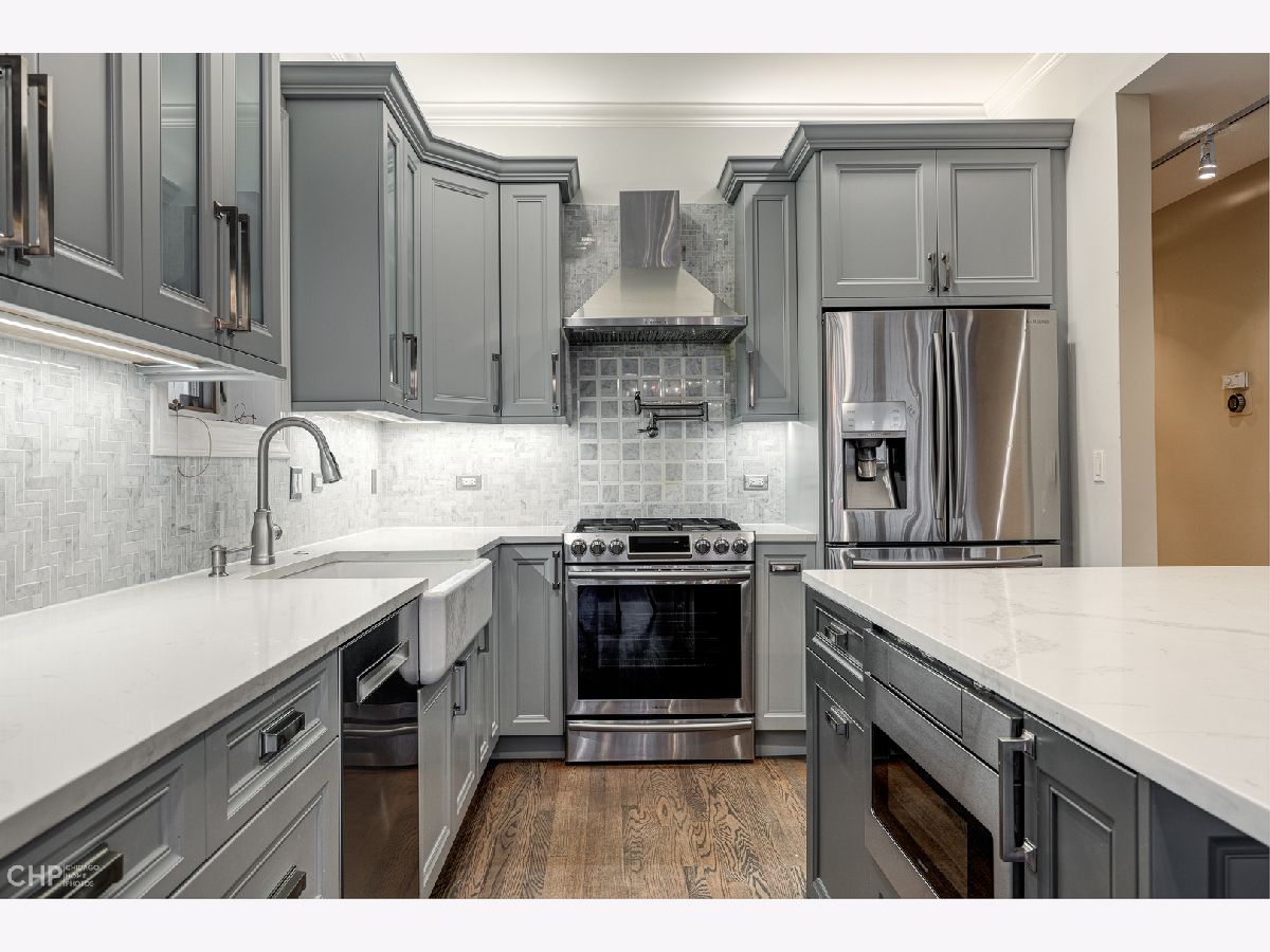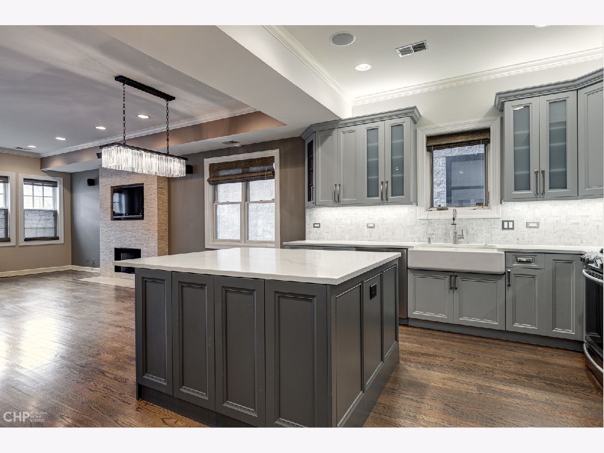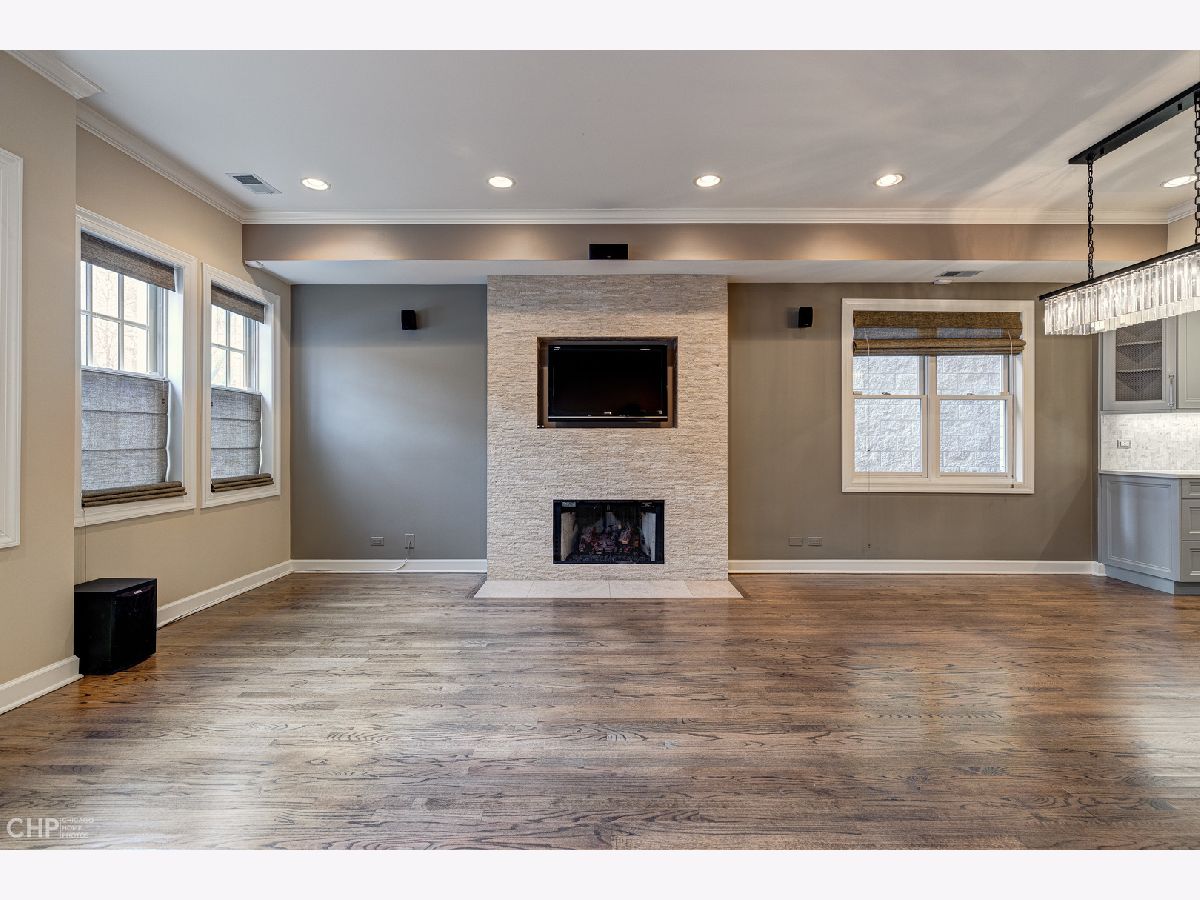 Beautifully renovated 3 bedroom PLUS office in A+ Lakeview location! The all brick building sits on a 35 foot extra wide lot, making for a spacious open layout, perfect for entertaining. Designer gourmet kitchen features quartz counters, SS appliances, substantial island with breakfast bar and custom stone back splash w/pot filler over range. Large sun filled living/dining room with wood burning fireplace and stone mantel. Primary suite features a spacious spa like bath with steam shower, jetted tub and heated floors as well as professionally organized closets. Two additional large bedrooms plus custom built-out office with glass French doors includes high end cabinetry and two built in work spaces. Second full bath includes custom stone finishes and cabinetry. Hardwood floors throughout the home, Nest thermostat, built-in speakers with Sonos control system and designer window treatments. Brand new paint, home is move in ready! One garage spot and additional storage. Pet Friendly building. New roof (2021). New furnace (2019). Located in the award winning Nettlehorst school district. Easy walk to all the amenities East Lakeview has to offer as well as parks and Lake Michigan