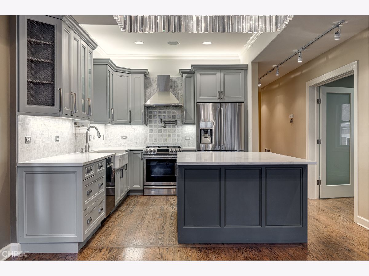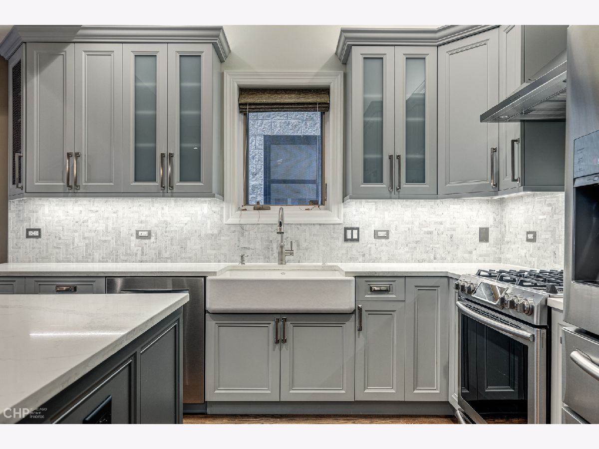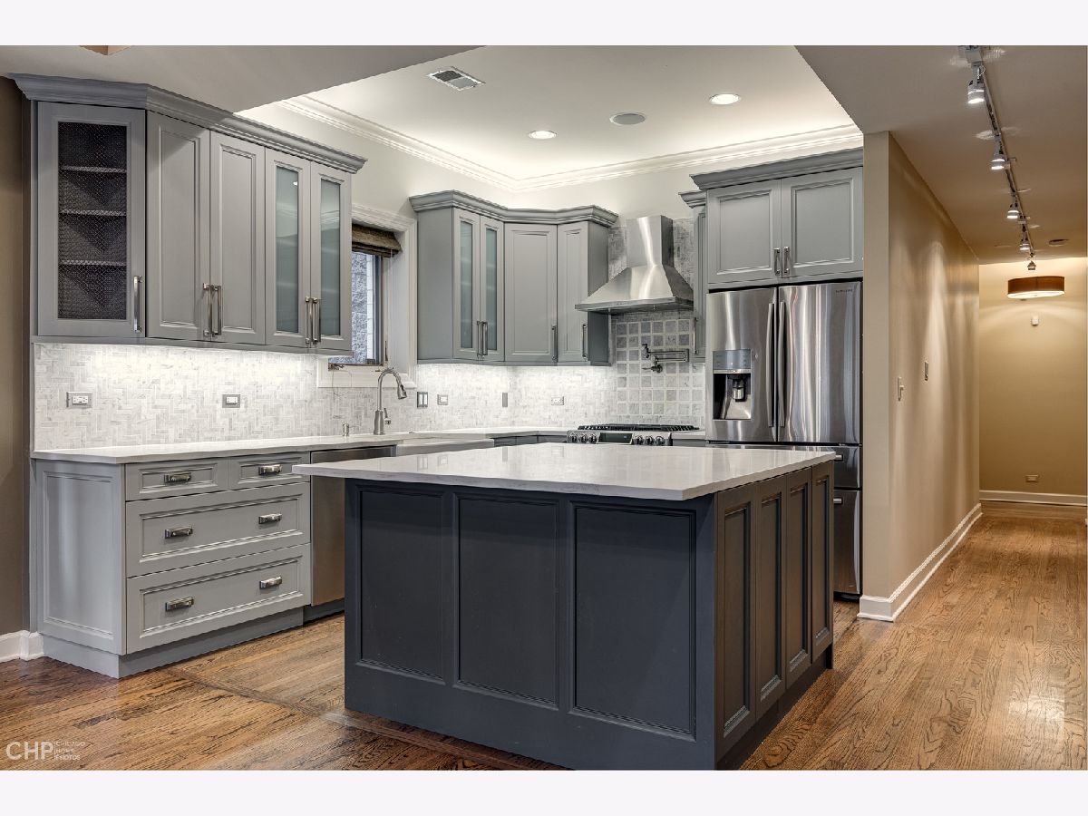 Beautifully renovated 3 bedroom PLUS office in A+ Lakeview location! The all brick building sits on a 35 foot extra wide lot, making for a spacious open layout, perfect for entertaining. Designer gourmet kitchen features quartz counters, SS appliances, substantial island with breakfast bar and custom stone back splash w/pot filler over range. Large sun filled living/dining room with wood burning fireplace and stone mantel. Primary suite features a spacious spa like bath with steam shower, jetted tub and heated floors as well as professionally organized closets. Two additional large bedrooms plus custom built-out office with glass French doors includes high end cabinetry and two built in work spaces. Second full bath includes custom stone finishes and cabinetry. Hardwood floors throughout the home, Nest thermostat, built-in speakers with Sonos control system and designer window treatments. Brand new paint, home is move in ready! One garage spot and additional storage. Pet Friendly building. New roof (2021). New furnace (2019). Located in the award winning Nettlehorst school district. Easy walk to all the amenities East Lakeview has to offer as well as parks and Lake Michigan