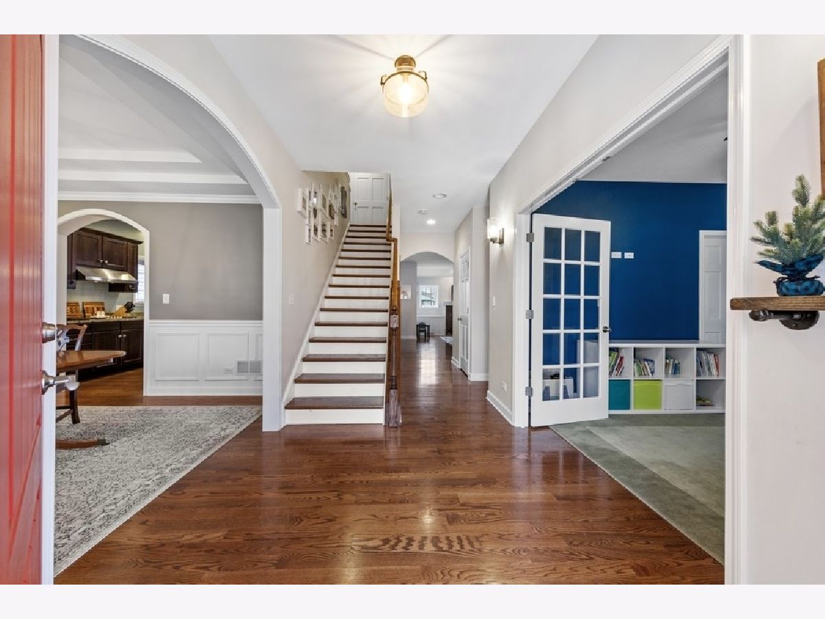 Beautiful 5 bed 4 bath home with large front porch located on a quiet picturesque street in northwest DG. The main level of the home features 9 ft ceilings, hardwood floors throughout, a large bedroom with double glass doors, a full bath, formal dining room with tray ceiling moulding detail, spacious kitchen with eat in area, double oven and 42 inch cabinets, open family room, fireplace and mudroom complete with built in cabinetry. Upstairs you will find the primary suite with his and hers closets, 3 additional bedrooms and a Jack and Jill bathroom with double sink vanity. The recently finished basement includes an additional bedroom, full bath, Lifeproof flooring, and large, open recreational area. The rear outdoor space is perfect for entertaining with a brick paver patio (new 2020), deck, playset and detached 2 car garage. Walking distance to downtown, 2 train stations, schools, parks and much more.
