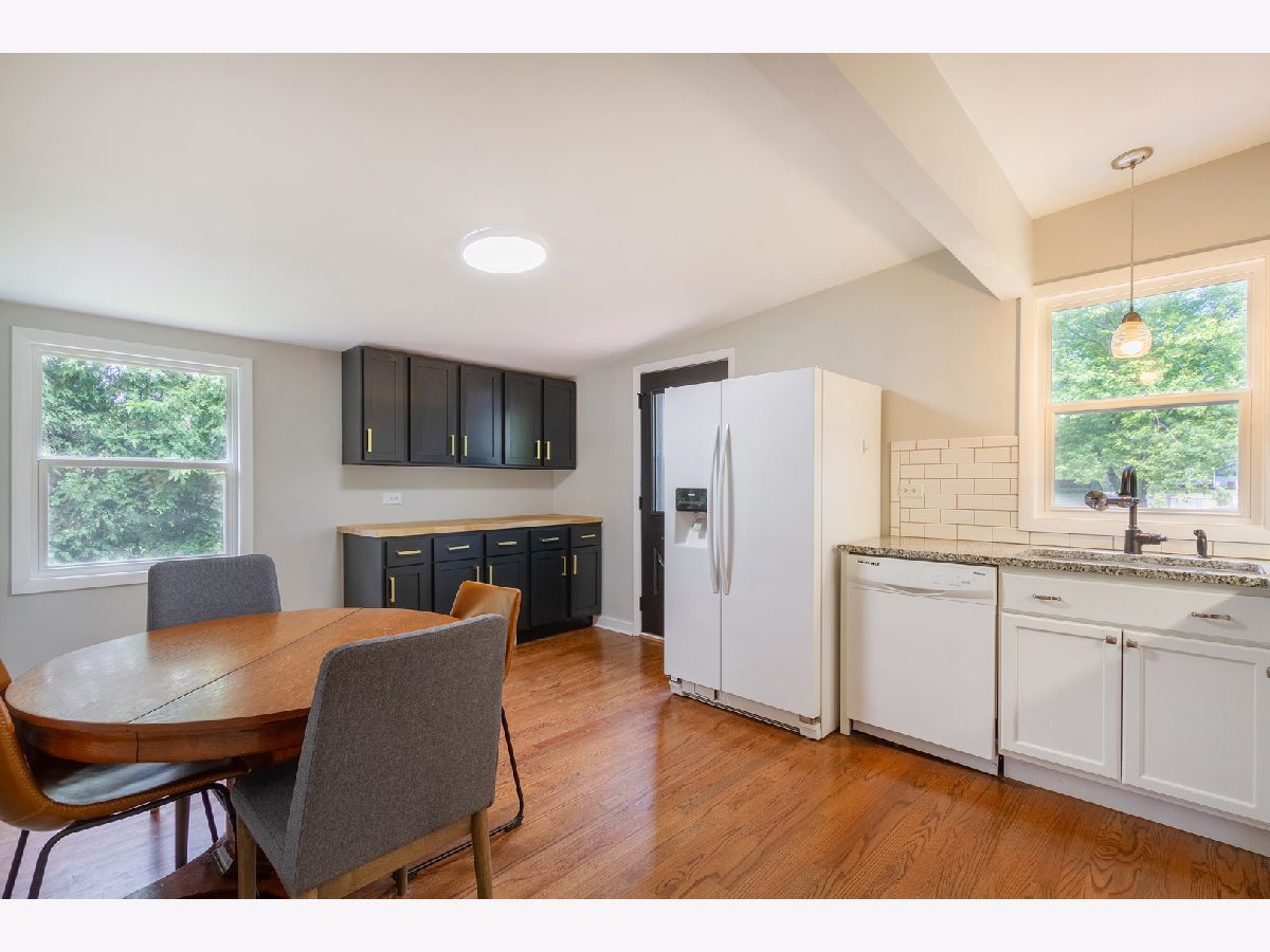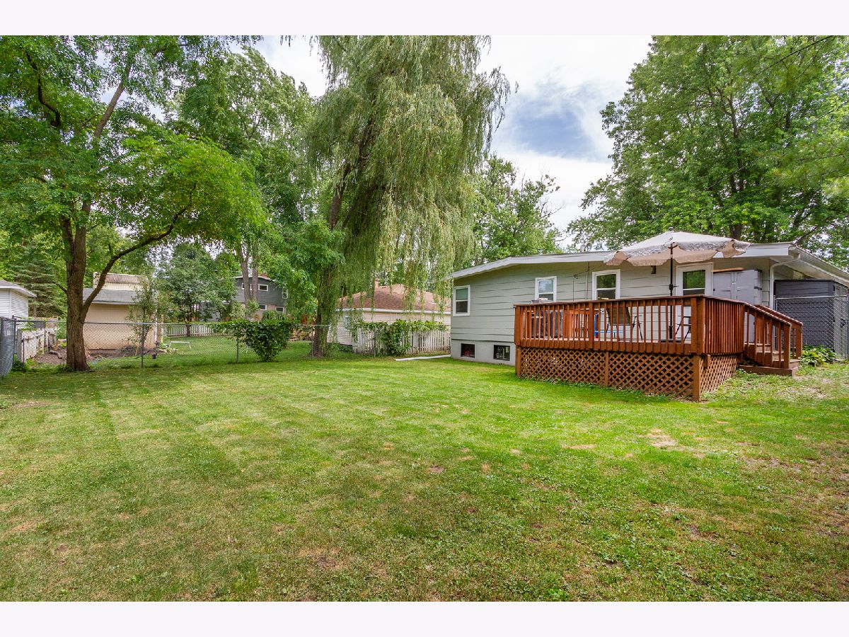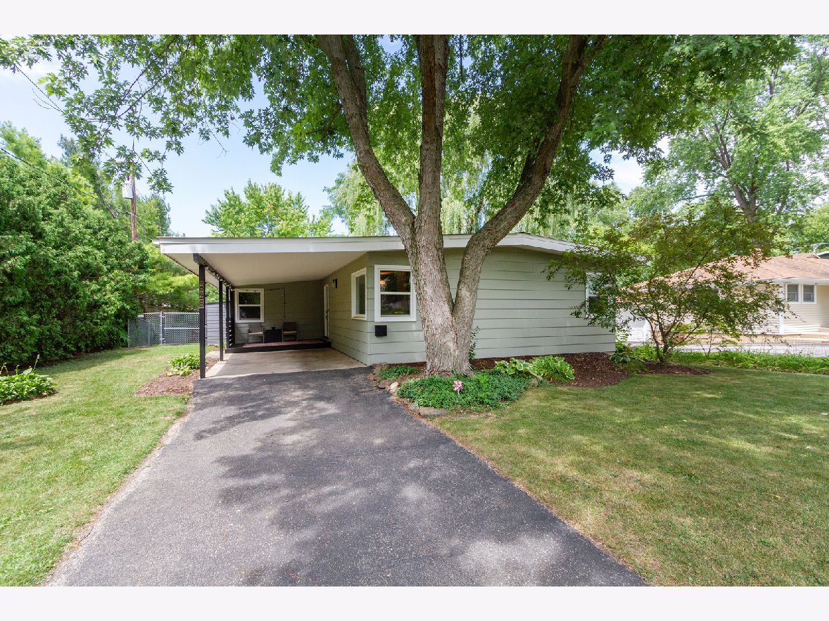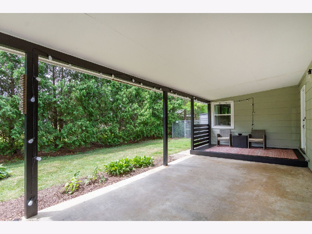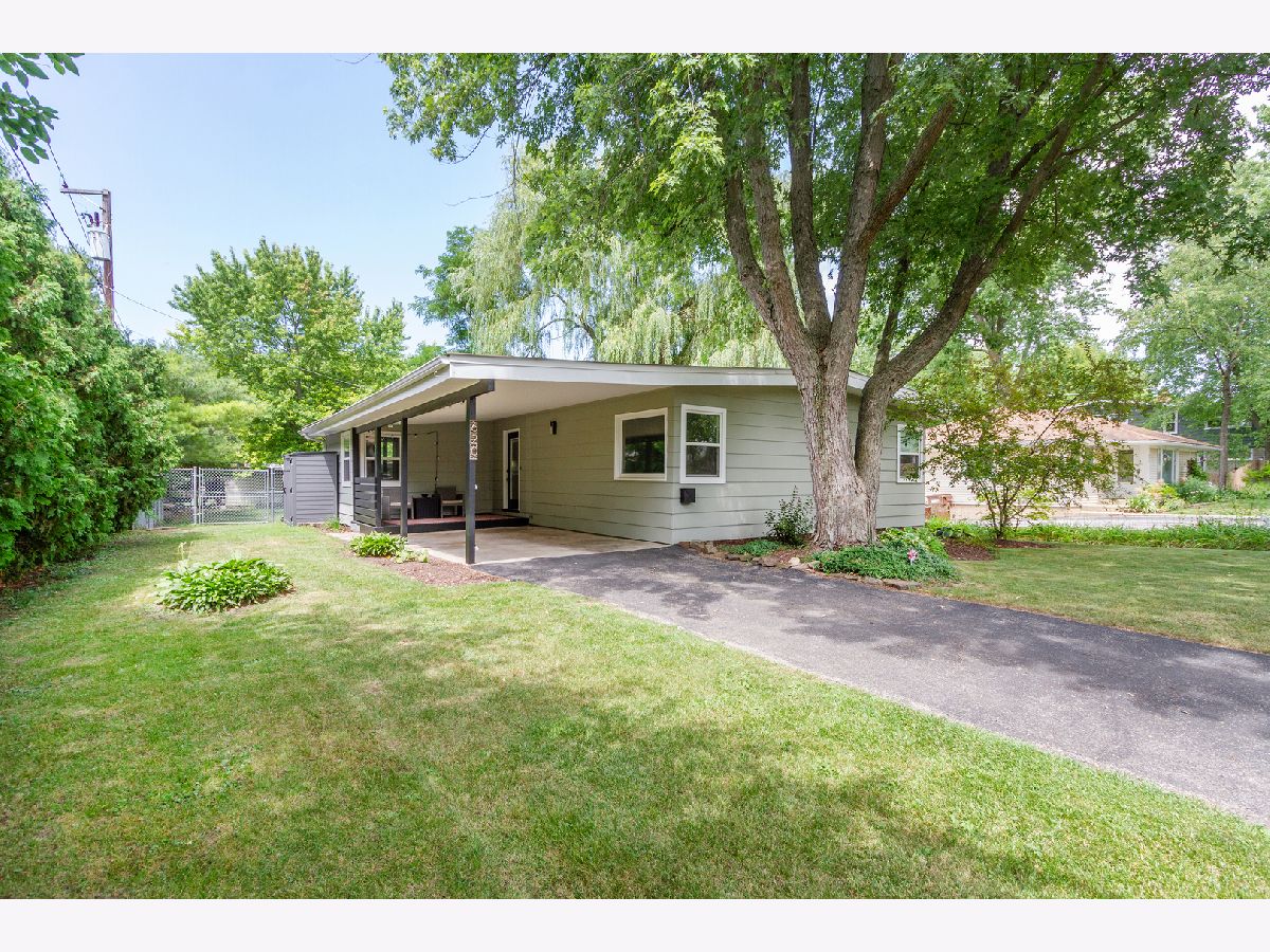 Nothing to do but move in to this beautiful mid-century modern style ranch! Great location on a quiet street, blocks from the high school and just one mile to the Woodstock Square historic district! A cozy covered front porch is the perfect spot to relax. Inside, you'll be met with tall ceilings, tons of natural light, hardwood flooring, on-trend light fixtures, and custom woodwork throughout. The spacious living room is accented by a chair rail. Beautifully updated eat-in kitchen boasting white cabinetry, subway tile backsplash, and granite countertops. The sellers added additional stylish black cabinetry with a butcher block countertop for additional storage/prep space! The full bath has been completely remodeled with a double sink vanity, his & hers mirrors on a gorgeous accent wall with additional overhead lighting, and a tub/shower combo with black fixtures that tie into the rest of the design. The master bedroom features board and batten paneling and an accent wall. All three bedrooms have custom closet organizers and custom blinds. The laundry can be found in the partial basement, which could be finished in the future to add more living space! Outside, the large backyard is fully fenced and has a large deck - perfect for hosting friends and family. Ideally located in a quiet neighborhood near schools and parks, and just minutes to shopping, dining, and other amenities. Close to the Metra, Route 47, and Highway 14 for easy commuting. This one has it all... WELCOME HOME!!!