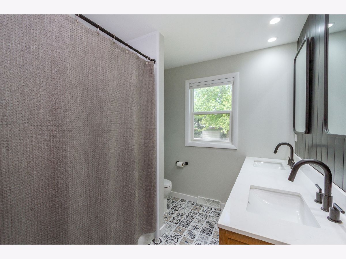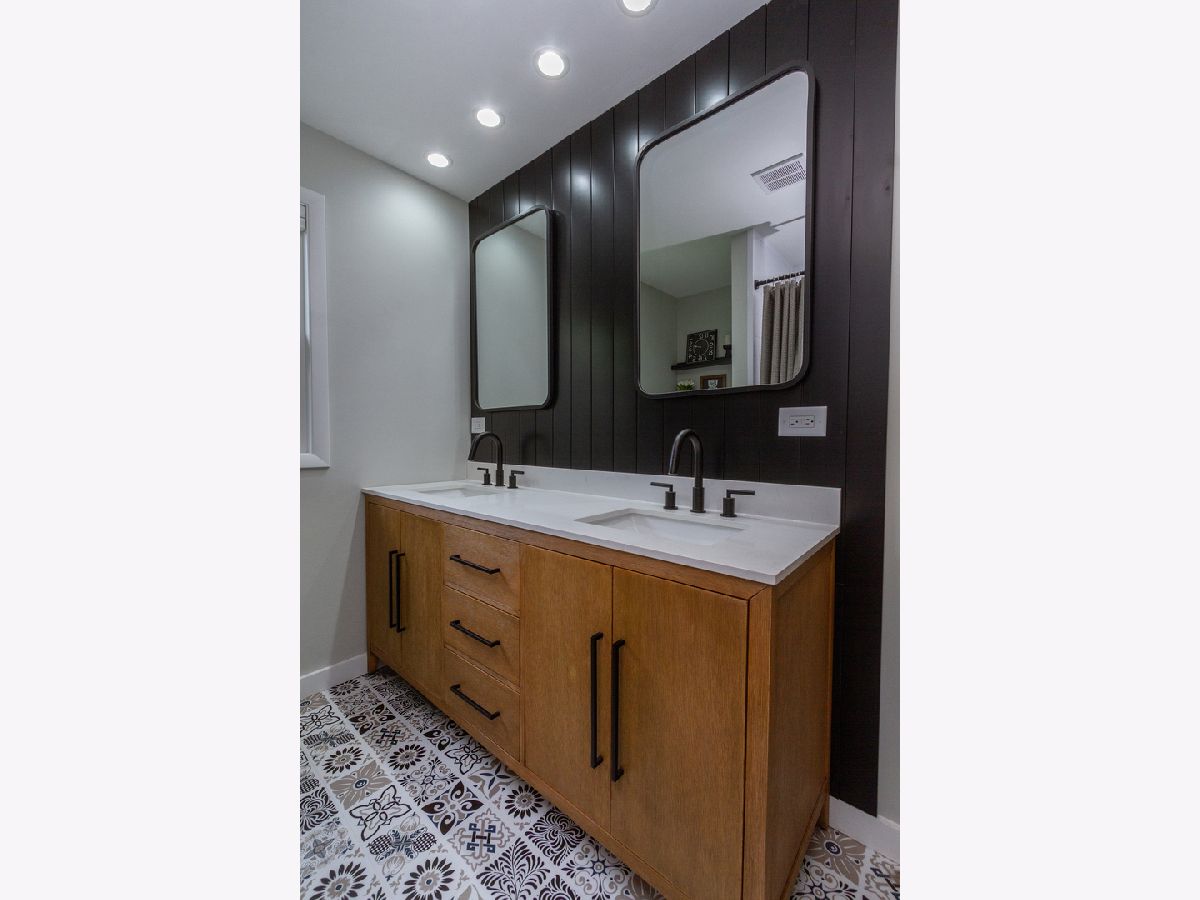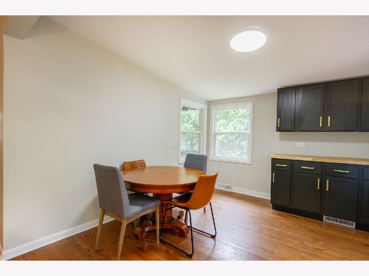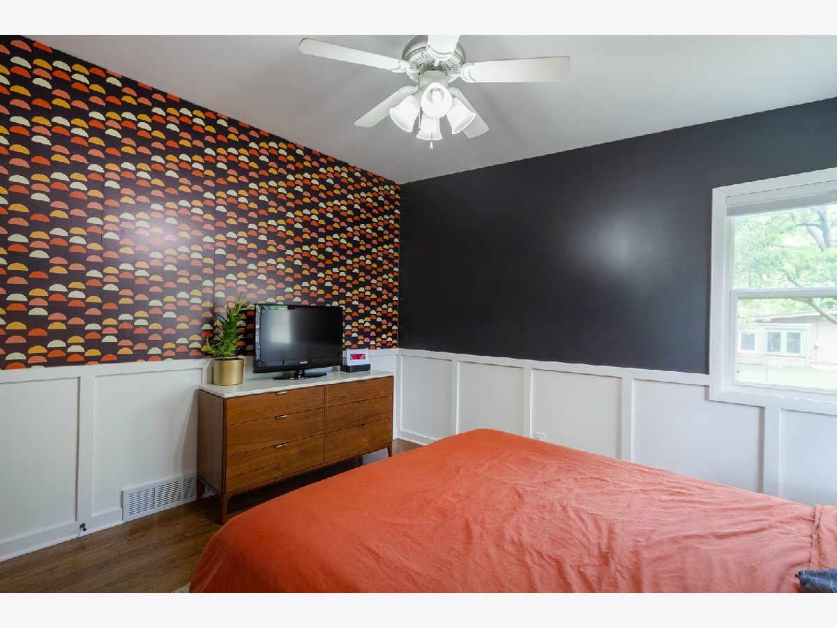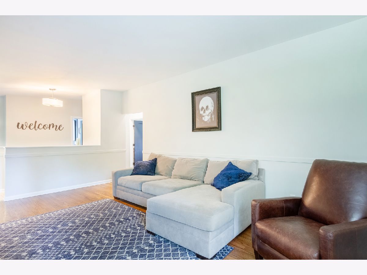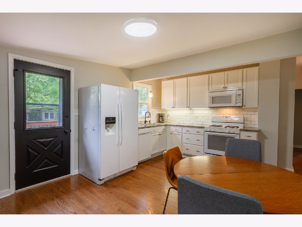 Nothing to do but move in to this beautiful mid-century modern style ranch! Great location on a quiet street, blocks from the high school and just one mile to the Woodstock Square historic district! A cozy covered front porch is the perfect spot to relax. Inside, you'll be met with tall ceilings, tons of natural light, hardwood flooring, on-trend light fixtures, and custom woodwork throughout. The spacious living room is accented by a chair rail. Beautifully updated eat-in kitchen boasting white cabinetry, subway tile backsplash, and granite countertops. The sellers added additional stylish black cabinetry with a butcher block countertop for additional storage/prep space! The full bath has been completely remodeled with a double sink vanity, his & hers mirrors on a gorgeous accent wall with additional overhead lighting, and a tub/shower combo with black fixtures that tie into the rest of the design. The master bedroom features board and batten paneling and an accent wall. All three bedrooms have custom closet organizers and custom blinds. The laundry can be found in the partial basement, which could be finished in the future to add more living space! Outside, the large backyard is fully fenced and has a large deck - perfect for hosting friends and family. Ideally located in a quiet neighborhood near schools and parks, and just minutes to shopping, dining, and other amenities. Close to the Metra, Route 47, and Highway 14 for easy commuting. This one has it all... WELCOME HOME!!!