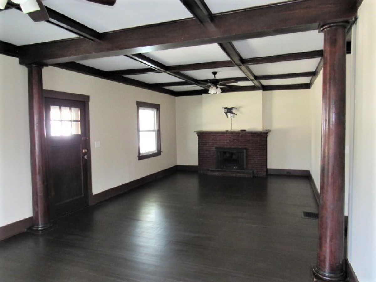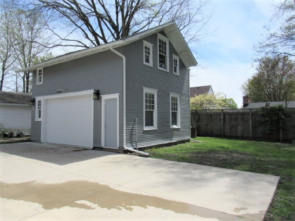Gorgeous 1 1/2 story home that has been tastefully updated. This home has beautiful wood trim including wood ceiling beams in the living room and dining room. The living room also has a brick fireplace with an electric insert. Enjoy the updated kitchen with ample cabinetry and counter top space , newer stainless steel appliances along with an area for a kitchen table. The main floor has two large bedrooms with good sized closets and a full bathroom off the extra wide 5' hallway. 1st floor laundry comes equipped with a washer and dryer. Upstairs you will find a large master bedroom with wood floors, built-in cabinetry, walk-in closet and remodeled bathroom with a tiled double shower. Outside features a large 11x31 covered front porch along with a 2-car detached garage that is insulated and has a loft for extra storage. Call to see this gem today!