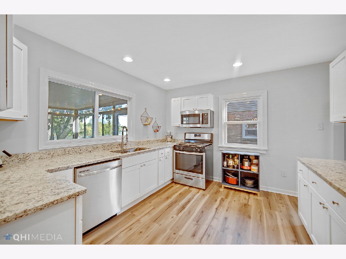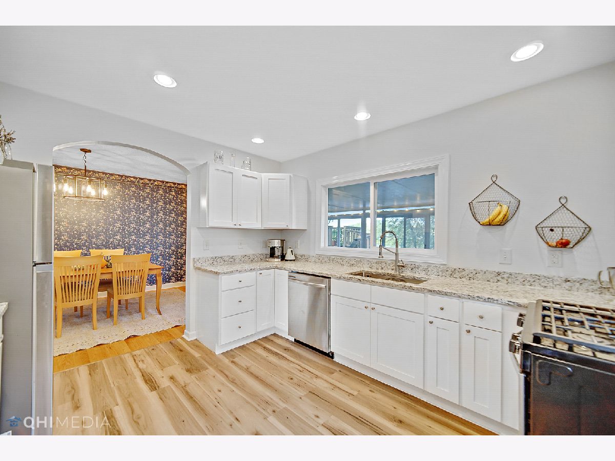 The blend of historic charm and modern style is balanced in this super clean 1.5 story riverfront home in West Kankakee! The all brick home has updates already done for you! You're welcomed into an entryway that leads to your living room with hardwood floors, a wood burning fireplace, and large windows. Through the living room, you'll enter the formal dining room that provides beautiful views of the river. The fully updated kitchen boasts all new appliances, cabinets, electrical, plumbing, flooring, fixtures, and granite countertops. The downstairs has two bedrooms and a full bathroom along with access to the 3-season room (this will be your favorite spot in the house!) and the rooftop deck over the garage. The three season room does also have a gas heater so you can extend those "seasons" to enjoy the beautiful views! Upstairs is a full master suite with a walk-in closet, skylights, a gas fireplace, and brand new tiled bathroom with walk-in shower. The full basement has the laundry room, a workshop space, storage closet, large family room, and access to the attached garage. The driveway winds alongside the home toward the back into the garage. You'll capture great views here with steps down to the river, too. Kitchen remodel was in 2020. Refinished hardwood floors was in 2020. All windows were done in January 2021. Roof is approximately 6 years old. Notice the attention to detail in maintaining the original solid wood doors and keeping the sweeping arch doorways! Close to MANY amenities! LOW maintenance! Move in ready!