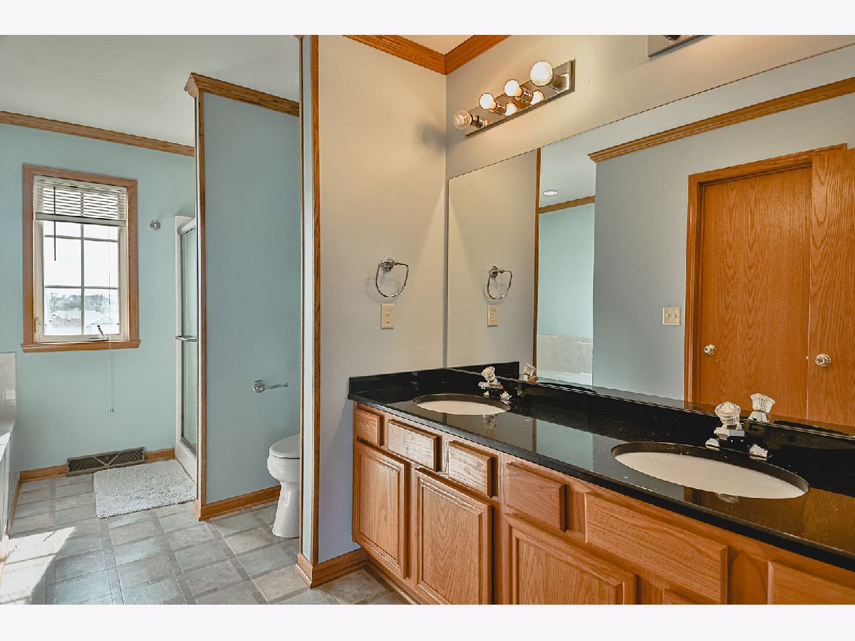 Spacious 2 story home in Harvest Glenn. U-shaped kitchen with Walnut cabinets, granite countertops, stainless steel appliances, roomy eat-in area and bay with slider. 1st floor laundry, family room with gas fireplace, formal living and dining room. Double Volute stairway up to the Master suite with private bath and walk-in closet. 3additional bedrooms and full bath on the upper level. Finished basement partial exposure with 2 windows, rec room area, movie theater room, and plumbed for an additional bath. Attached 3 car garage. Roof 2018. Water Heater 2018.