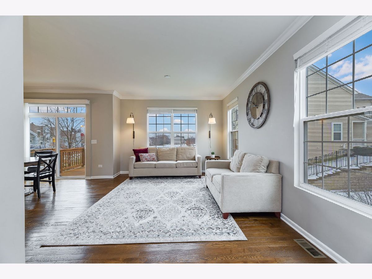 Welcome home! You won't want to miss the incredible opportunity to own this move-in ready, beautifully upgraded end unit townhome! Complete with a finished walkout basement, and ideally located within the Glen Ellyn District 41/Glenbard West High School boundary and minutes to the expressway and lots of shopping and dining! Upon entering, enjoy a main floor with 9' ceilings, stunning trim detailing, and updated hardwood flooring throughout. Situated on a south facing lot, this home offers a wonderfully bright and open floor plan with spacious, sun-drenched living room and kitchen with a large island overlooking the eating area. The kitchen has been beautifully upgraded with newer cabinetry offering upper-cabinet lighting; sparkling stainless steel appliances, including a double oven; gleaming granite countertops; and a large pantry with custom shelving perfect for all your food storage needs! The main floor also hosts a spacious half bath and deck overlooking the gorgeous open space behind the home. Upstairs, enjoy three spacious bedrooms - including a lavish master suite boasting a walk-in closet with custom organizers, and private bath offering a spacious shower with a bench and rain shower head. The additional bedrooms are equally spacious, feature large closets, and host hardwired electric for lighting or ceiling fans. Revel in the convenience of ideally situated second floor laundry! In addition to custom blinds on every window, this home comes complete with a fully finished walkout basement featuring a spacious family room, rec area, and plenty of room for additional storage. See video walkthrough for more information!