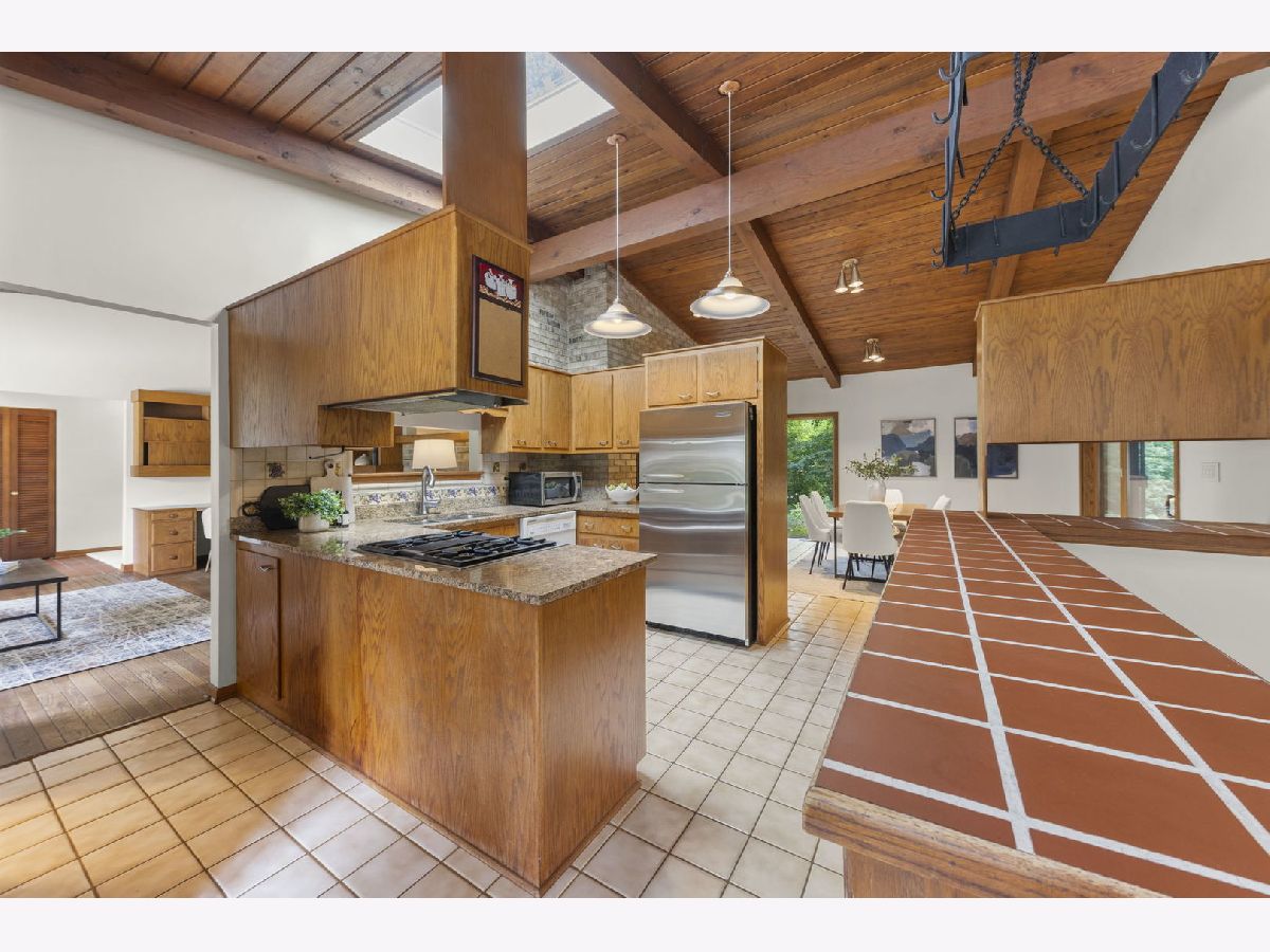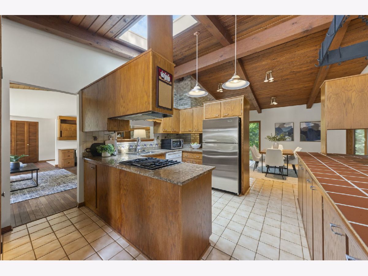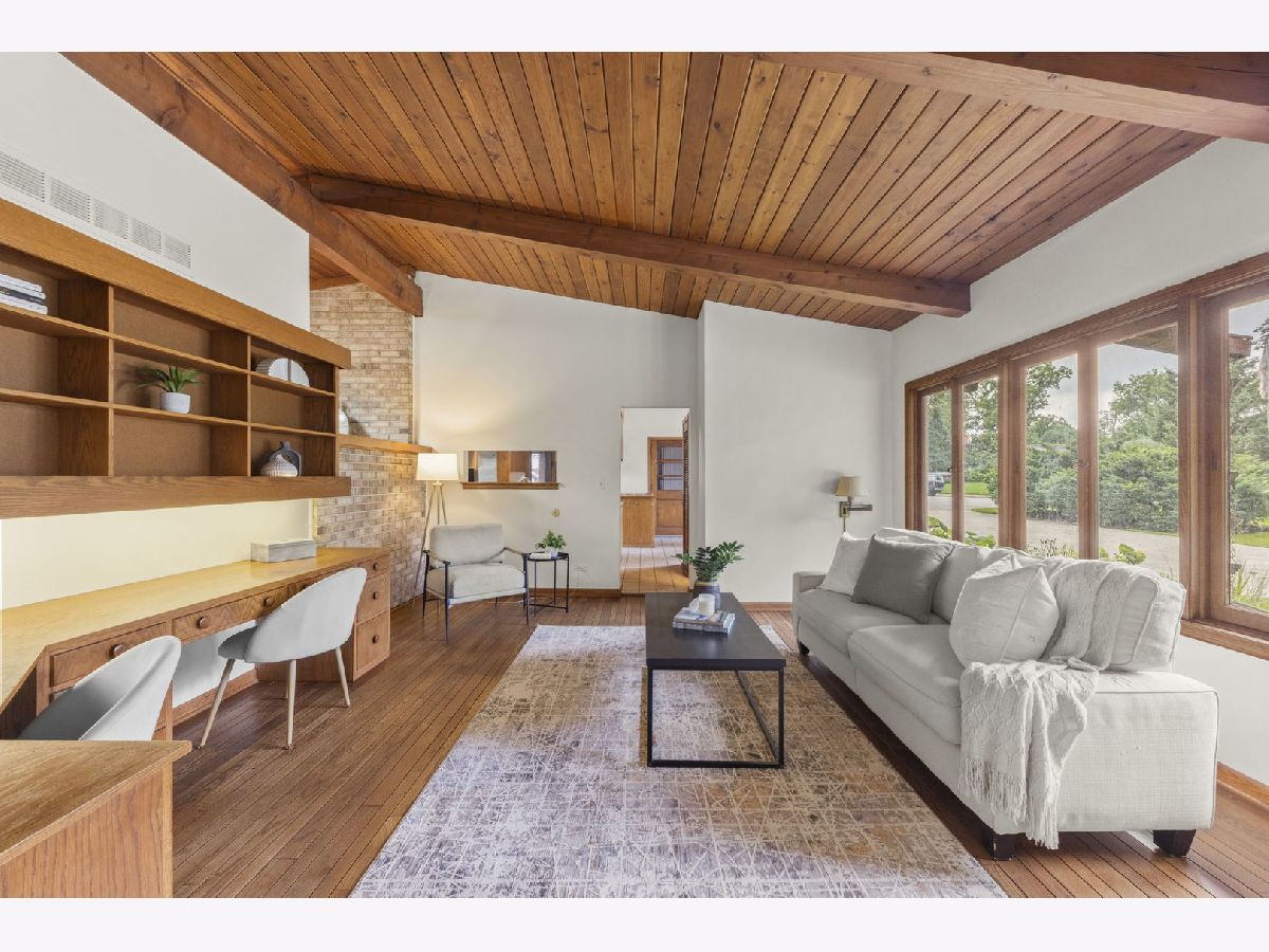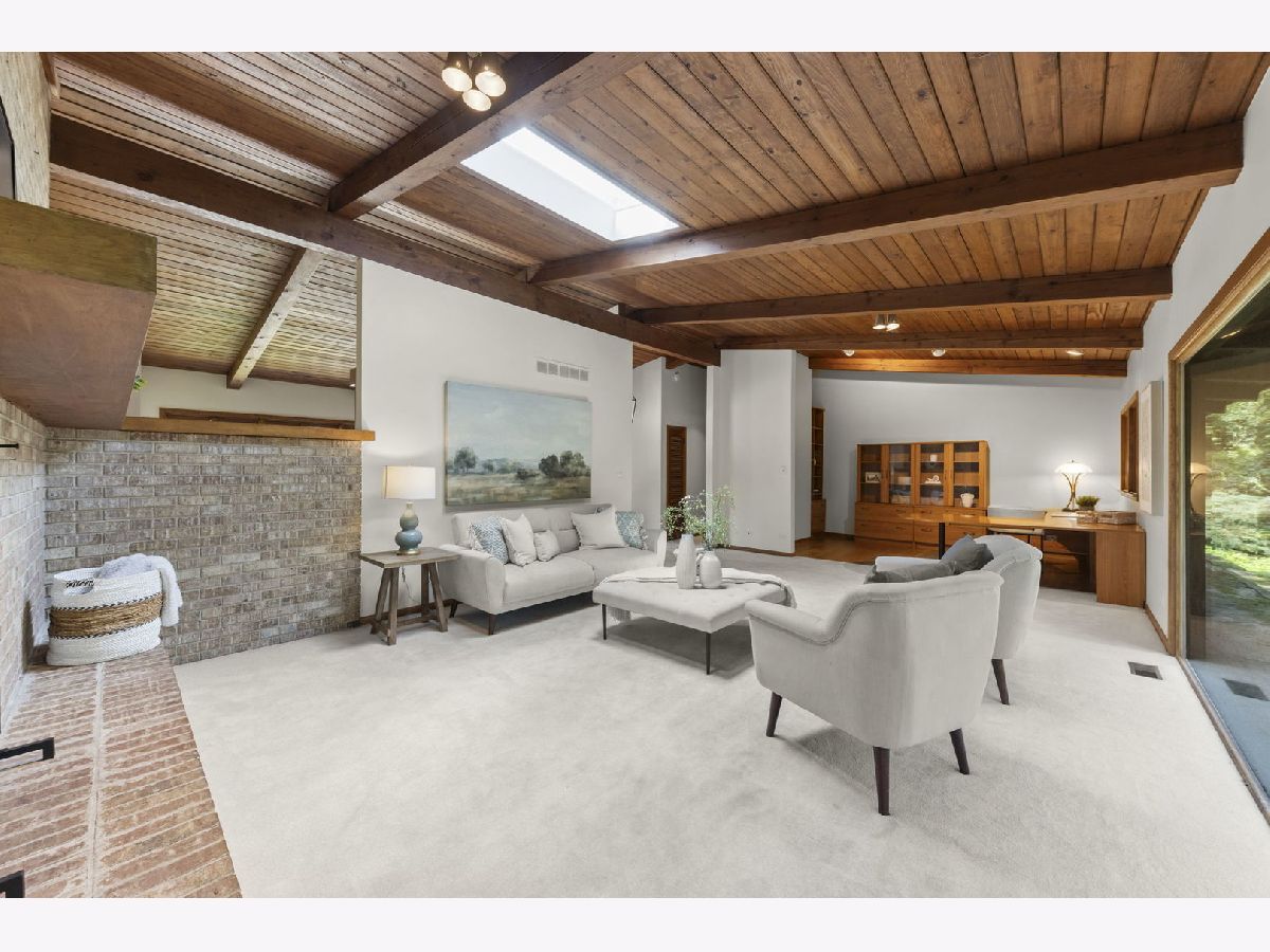 This authentic Mid-Century Modern ranch blends iconic design with modern comfort, offering a rare combination of timeless style and private, serene surroundings. Clean lines, open spaces, and floor-to-ceiling windows create effortless connections between indoors and out, flooding the home with natural light and framing lush views of the landscaped backyard on over 1/2 acre.Warm hardwood floors, exposed beams, and original brickwork honor the architectural principles of the era, while thoughtful updates-sleek cabinetry, contemporary appliances, and modernized baths-enhance everyday living. The spacious layout flows seamlessly from the open kitchen and dining area with fireplace to the covered brick porch, ideal for entertaining or quiet al fresco dining. Three bedrooms, including a tranquil primary suite with private bath, offer restful retreats. Outside, the expansive yard provides a rare sense of privacy, perfect for gatherings or peaceful afternoons. A 2-car garage with workshop space adds versatility and potential.Located across from the historic Chicago Golf Club and private access to the Prairie Path, the home is also minutes from downtown Wheaton's vibrant shops, restaurants, and Metra station. Families will appreciate the award-winning, sought-after Wheaton schools. Roof 2023, Skylights 2024, Furnace 2015. Meticulously maintained and conveyed as-is