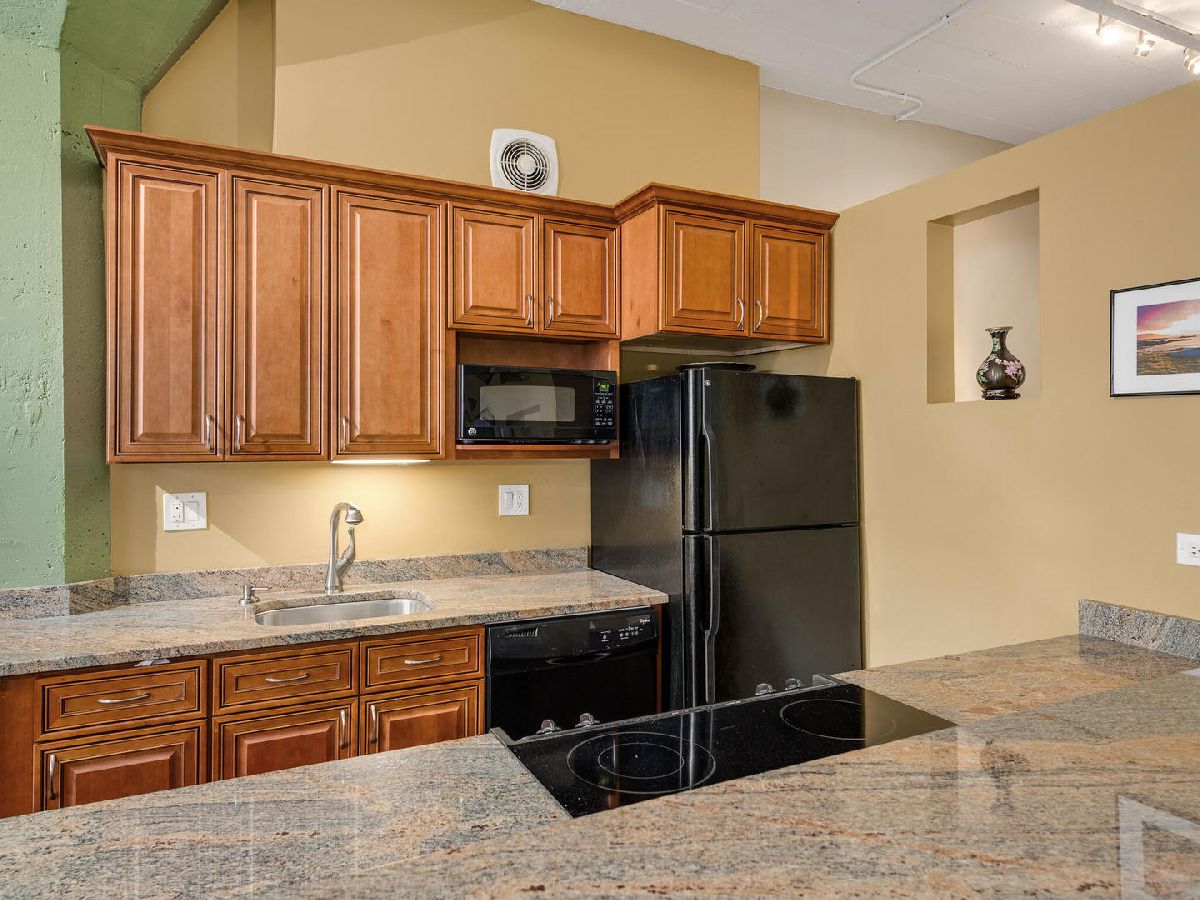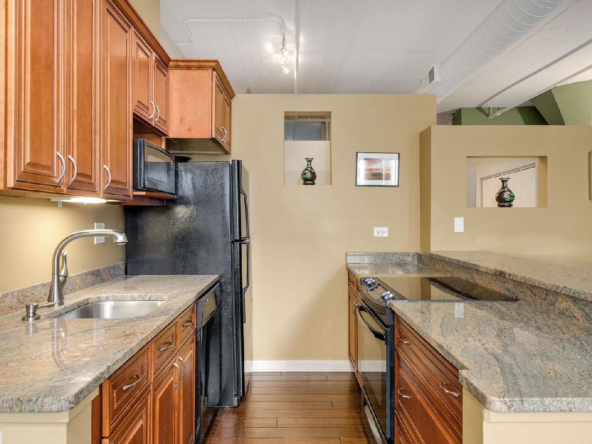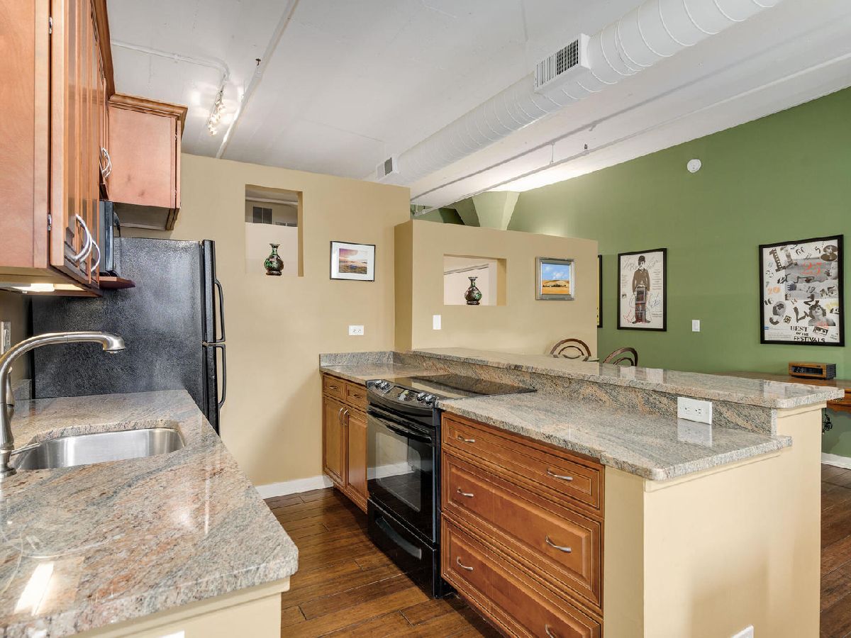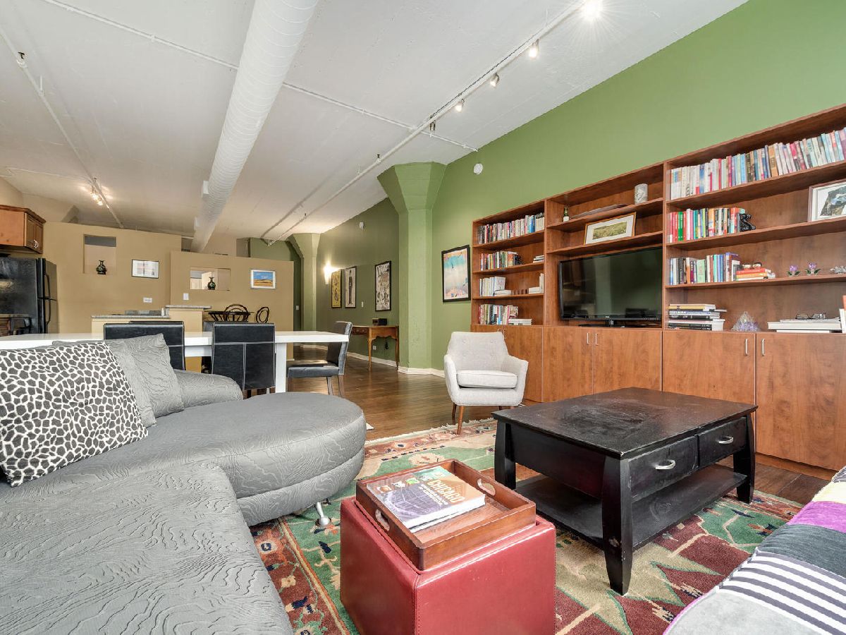 Immediately feel at home in this spacious loft ideal for both leisure and/or working. Upon entering, generous natural light is showcased by a wall of large windows, character adding warm brick, and soaring 11' concrete ceilings. Walking from room to room on classy hardwood floors, you'll notice plenty of room (1000 + square feet) for both living and storage throughout. Benefit from the ease of purchasing turn-key fully furnished or have the flexibility to coordinate moving your own furniture pieces in instead. Entertain or cook in a kitchen fully equipped with dinnerware/glassware, granite counters, and appliances (including microwave, Keurig, disposal, and dishwasher). Dine on barstools near the counter or spread out at a dining room table that can easily accommodate six. Recharge in the lofted bedroom with a comfortable queen-sized bed. Freshen up in a sizeable bathroom that features double vanity, plenty of granite counter space, and a tub-shower combo. Enjoy well-maintained laundry facilities conveniently located on the same floor, a bike room, and a building shared rooftop with impressive views. Geared towards convenient living, this condo is located in the heart of Printer's Row with easy access to public transit, restaurants, entertainment, and everything the city has to offer. Parking can be leased through other owners on-site or there are options in the neighborhood. Schedule a showing now!