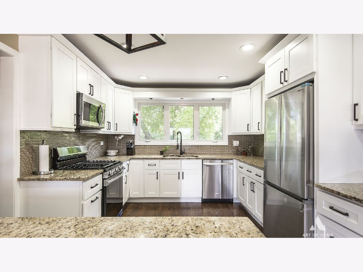 Updated 3 bedroom 2.5 bath 2 story brick residence on a spectacular lot in Arlington Heights. You'll love the great foyer with hardwood floors that flow throughout the main level. The upgraded kitchen features 42 inch white cabinets, granite countertops and stainless steel appliances. The owner's suite features a bright large bathroom with dual sinks and a spacious shower, as well as two additional bedrooms with hardwood floors and plenty of closet space. Hall bathroom has a tub and dual granite countertop vanity. You'll appreciate the convenience of the attached 2-car garage and circular driveway. The deck is perfect for entertaining and overlooks a large fenced-in yard. This home is walking distance to the Metra stop and the new Chicago Bears stadium. Don't wait, call today!