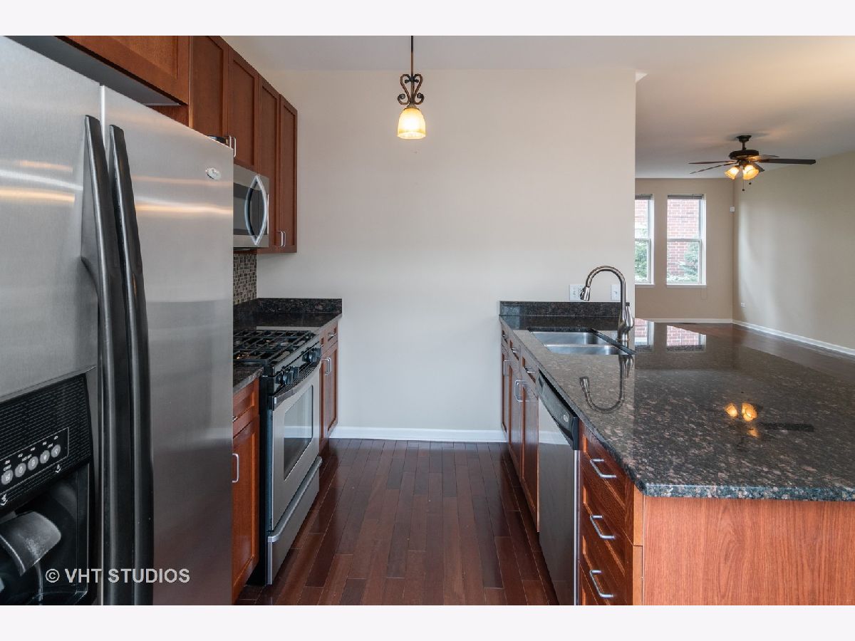 Looking for the perfectly sized, modern, move-in ready townhome in an excellent location? Your search stops here! This large unit with an open main-level floor plan is the one you've been yearning for. Large and bright living room boasts enough space for multiple conversation areas, yet is also perfect for an evening being cozy by the gas fireplace. Spacious dining area can host your biggest holiday gatherings or you can enjoy beautiful weather and dine al-fresco on the huge deck serving gourmet meals cooked up in your brilliant, east-facing kitchen with quality cherry cabinetry, stainless appliances, designer backsplash and miles of granite countertops! Beautiful hardwood floors and a perfectly sized powder room round out this main level. Upstairs is a huge, summery master suite with a large walk-in closet with custom Elfa shelving and a bath with double vanity; another big bedroom with a hallway sunny bath and oh-so-convenient second-floor laundry! Lower level showcases a cozy bedroom and a family room with French doors leading to a private patio. Huge two-car attached garage! Home has been recently painted and is ready for you! Wonderful complex with exercise room, walking/bike path and playground. Fabulous location - stroll to Forest Park downtown for sipping, shopping and dining; dash to the pool, tennis and skating; walk to the Blue Line or drive a couple of minutes to the expressway! This move-in ready townhome has all your heart desires. All you have to do is unpack.