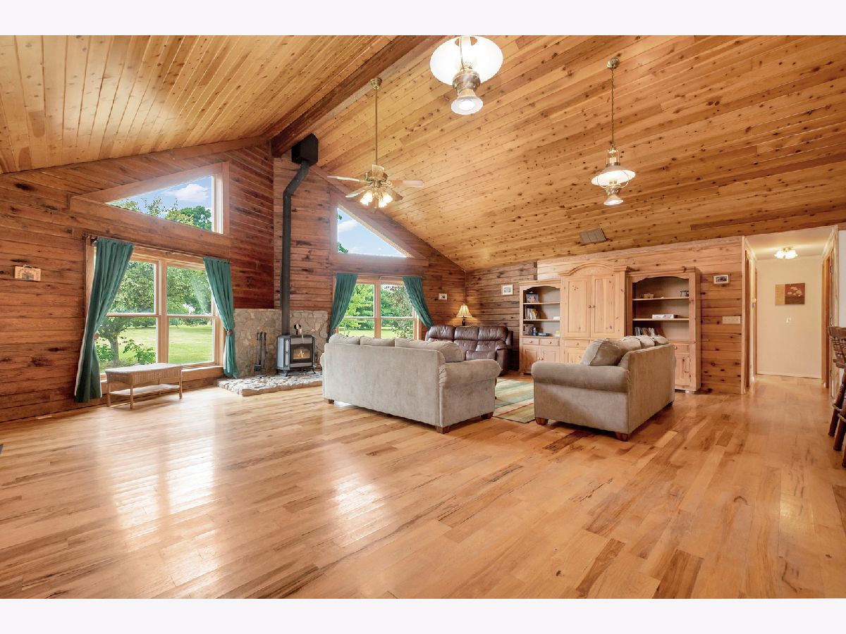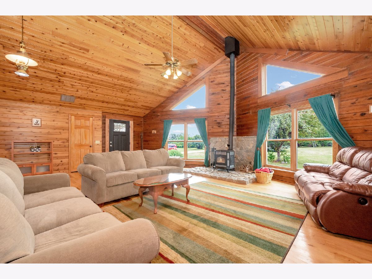 Country living with close by neighbors. Come live the dream in your own log cabin on 10 acres located in unincorporated Lee County! Enjoy the peace and quietness that comes with a location just far enough away from the hustle and bustle, but close enough to get back to civilization when you need. This 2108 sqft ranch home has a full walkout basement, offering 4,200sqft of total living space. 40 x 60 outbuilding with extra tall overhead doors is the perfect place to store an RV, tractors, cars, and toys. New shelves built in the garage. The mowing tractor stays. Up to ten horses are allowed on the property. The back seven acres is undisturbed woods. Watch deer and forest animals visit the house on a seemingly daily basis. The home was built in 1997. An entire log home exterior rejuvenation was completed in April 2018. A 50 year lifespan metal roof was installed in 2005! The gorgeous Great Room of the home measures 26 x 23 and features a beautiful wood, vaulted-ceiling and soap stone, wood-burning stove. The Great Room opens to the Kitchen with custom stone wrapped bar seating and dining area. Brand new Bathroom in Master bedroom with 2 sinks, shower and whirlpool. New carpet was installed in the bedrooms in 2021. New front door installed. Home electrical is equipped to accommodate a back-up generator. Students would attend Paw Paw schools and Indian Prairie HS. This is the homestead you have been dreaming about!