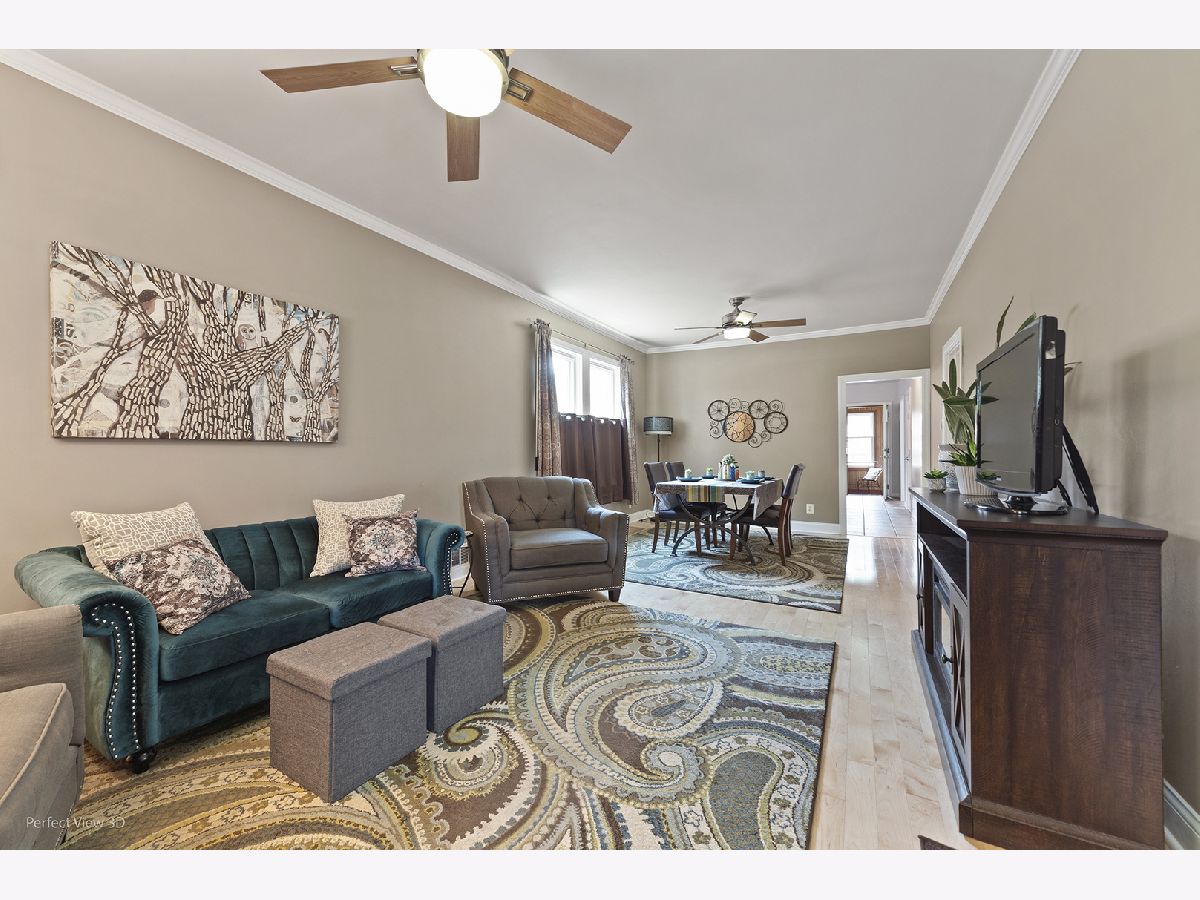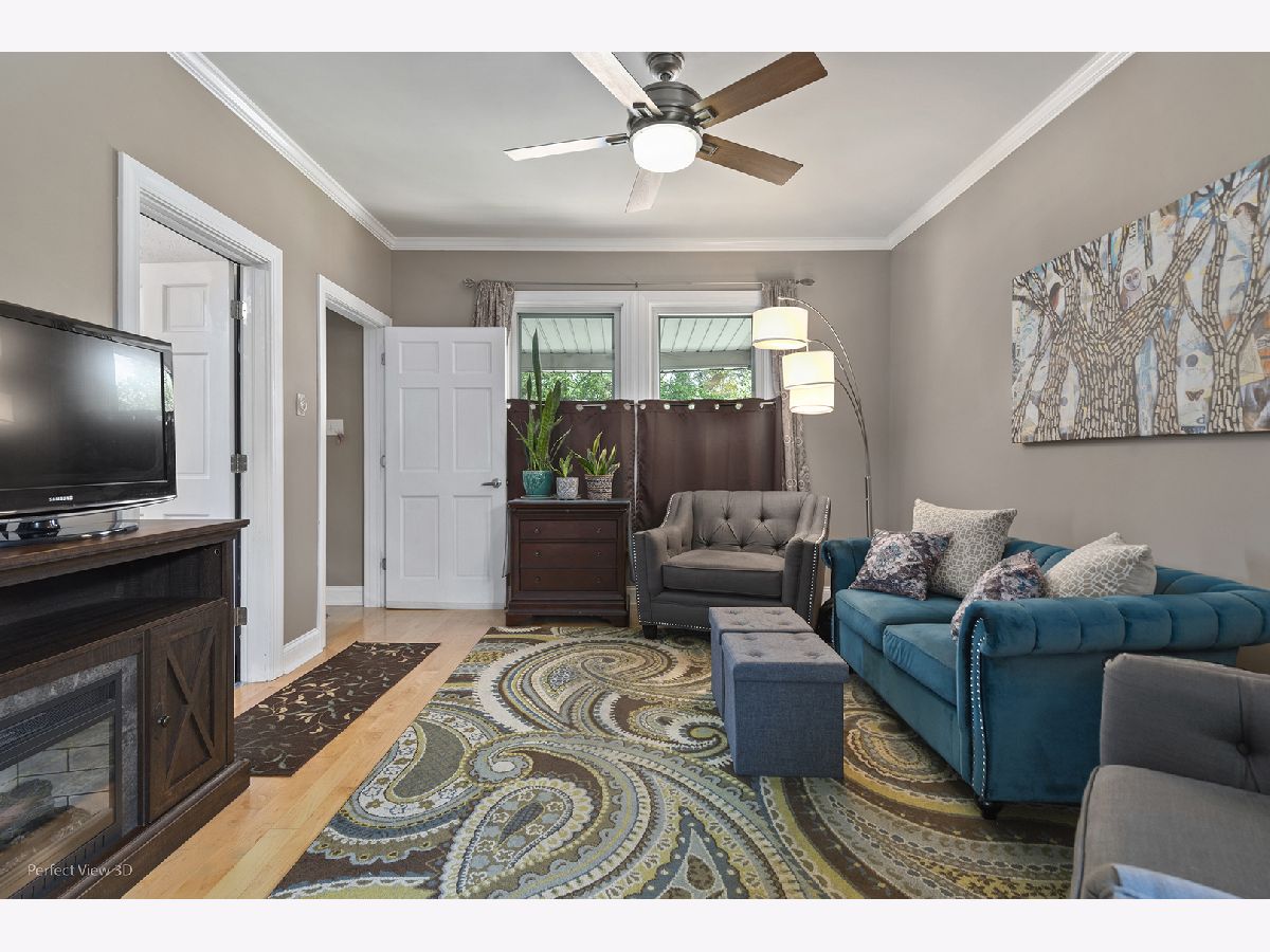 Don't miss this gem! Updates include insulated windows throughout, new sewers (2022), new gutters and downspouts (2019), furnace (2014), electric redone (2014), cement patio (2021), cement in back porch (2021), siding (2021). Full, dry, unfinished basement with flapper flood control system, New insulated windows will be installed in Fall 2024 as part of the Midway Sound Abatement Program. Beautiful turn-key single family home in the Clearing neighborhood. Abundant natural light greets you in every room. Living room seamlessly flows into the dining room with crown molding and maple hardwood floors. Kitchen has generous cabinet space, a breakfast bar, a spacious pantry. and stainless steel appliances. Additional closet under stairs. Enclosed porch leads to the second level which has 2 beds, 1 bath, a main living area with hardwood floors and can be used as an additional living space. Enjoy the outdoors on the covered front porch or in the beautifully landscaped yard and mature gardens. Detached 2-car garage. Home has been lovingly maintained and is being sold AS-IS.