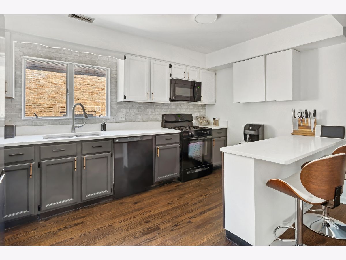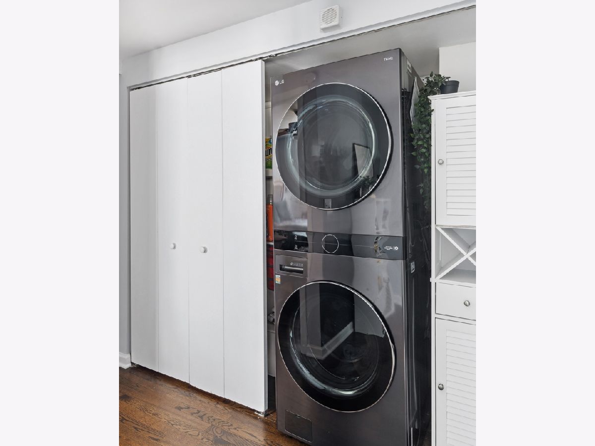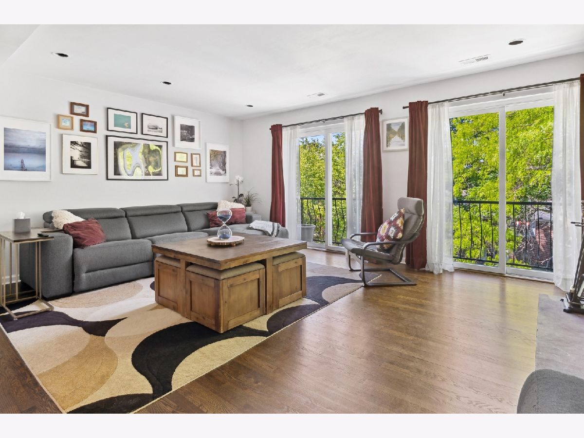 Entire top floor of this contemporary all owner occupied 4-unit building. 3 bedrooms, 2 full baths, beautifully refinished solid oak floors throughout, nicely updated eat-in kitchen with tons of counter space, quartz countertops, Samsung bespoke refrigerator/freezer. In-unit laundry, LG full size wash tower washer and dryer. New private decks on the back of the building will be built this year! 5-10 minute walk to the new Peterson/Ridge metra station! Close to shops and restaurants in Andersonville, yet perfectly situated on a quiet tree-lined street. Click on the 'Additional Information' tab for floor plan.