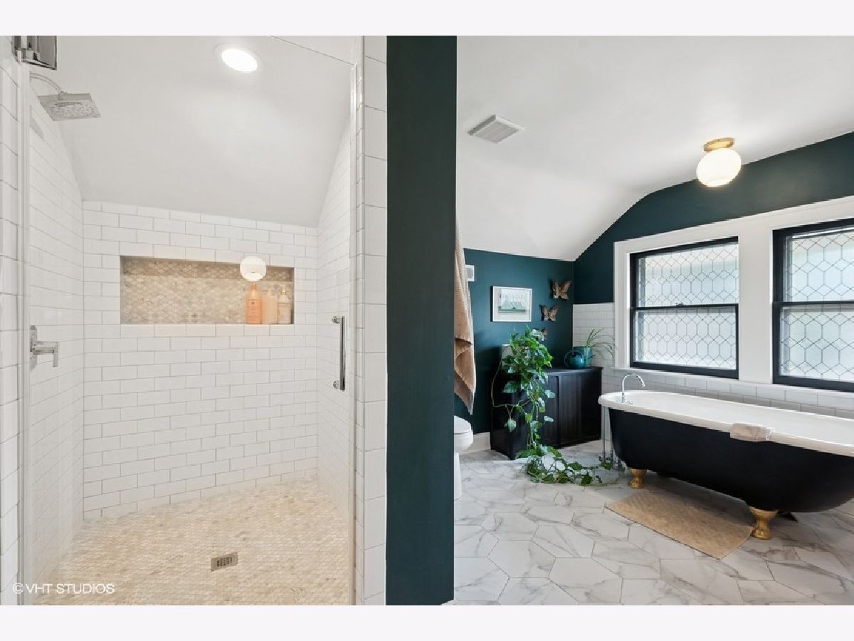 Welcome to this beautifully maintained, 100-year-old registered historic bungalow nestled in the heart of vibrant West Ridge. With timeless character and thoughtful modern updates, this 3-bedroom, 2.5-bathroom home offers the perfect blend of vintage charm and everyday comfort. Step inside to find custom-painted interiors and original hardwood floors throughout, complemented by abundant natural light and generous room sizes. The main level features two large bedrooms with spacious closets, a full bath, and a wide central hallway that leads you into a formal dining room and updated kitchen. The kitchen boasts a brand-new range and hood, a one-year-old refrigerator, a three-year-old dishwasher, and professionally refaced cabinetry. A standout feature of the main floor is the stunning and unique back room-accessible from both the kitchen and rear bedroom. With vaulted ceilings, exposed brick, original hardwood floors, and custom window frames, this space offers endless possibilities as a den, studio, or sunroom. Upstairs, you'll find a full master suite retreat with eastern and western exposure, hardwood flooring, a ceramic-tiled bathroom, a claw foot cast iron tub, a custom built in stand alone shower with marble tile and a floating shower door, one of a kind wood vanity with honed granite and double sinks and a very spacious walk-in closet. Mechanically updated and move-in ready, the home includes a new boiler (2023), central AC (2020), and water heater (2020). The exterior has been meticulously cared for with a one-year-old backyard fence, a beautifully landscaped yard, and recent updates including a new front fascia board and front eaves (2024), and gutters replaced in 2020 (garage and most of the house). A one-car garage completes the property, and the unfinished basement-with high ceilings-offers, a half bath, abundant storage and future expansion potential. The house is located on a one way zoned street and is steps from restaurants, groceries and transportation. Resources are abundant with Warren Park, West Ridge Nature Preserve and Robert Black Golf Course less than a mile away. The new Ridge/Peterson Metra station is less than one mile away and the Western Bus is blocks from the front door. Andersonville and Edgewater are also minutes away as well. This home lacks neither light nor space and presents a rare opportunity to own a piece of Chicago history with all the comforts of modern living.