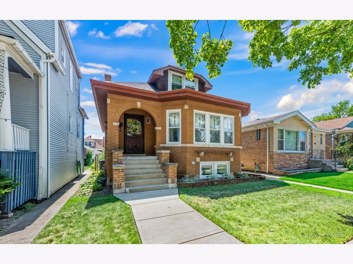 Certified Historic Bungalow from Chicago Bungalow Association! Solid all brick Bungalow in desirable neighborhood! Features Hardwood flooring ~ large Bay window in Living Room ~ Decorative brick fireplace in Living Room ~ Original stained glass windows in Living room ~ Crown molding ~ Arched entries to rooms ~ 2 Bedrooms down, 2 Bedrooms upstairs ~ Full Bathroom is on first floor between Bedrooms ~ Ceiling fans ~ Cozy Kitchen with Oak cabinets and large Pantry ~ Finished Back Porch for additional living space ~ Partially finished Basement ~ Large storage areas in Basement ~ Deck off rear of home ~ 2 car detached garage ~ NEW FURNACE AND A/C ~ ALL NEW WINDOWS except original bay Living Room windows ~ Newer Water Heater ~ Roof approximate 10 years ~ Update Electrical Panel ~ Washer and dryer included ~ Kitchen appliances included. This home has been well cared for for over 50 Years by current owners! GREAT CONDITION but SOLD AS IS ! All contracts to have AS IS initialed in contract ! QUICK POSSESSION POSSIBLE ! Parks, shopping, expressway all close by ! LOCATION, LOCATION, LOCATION ! NO FHA OR VA !!