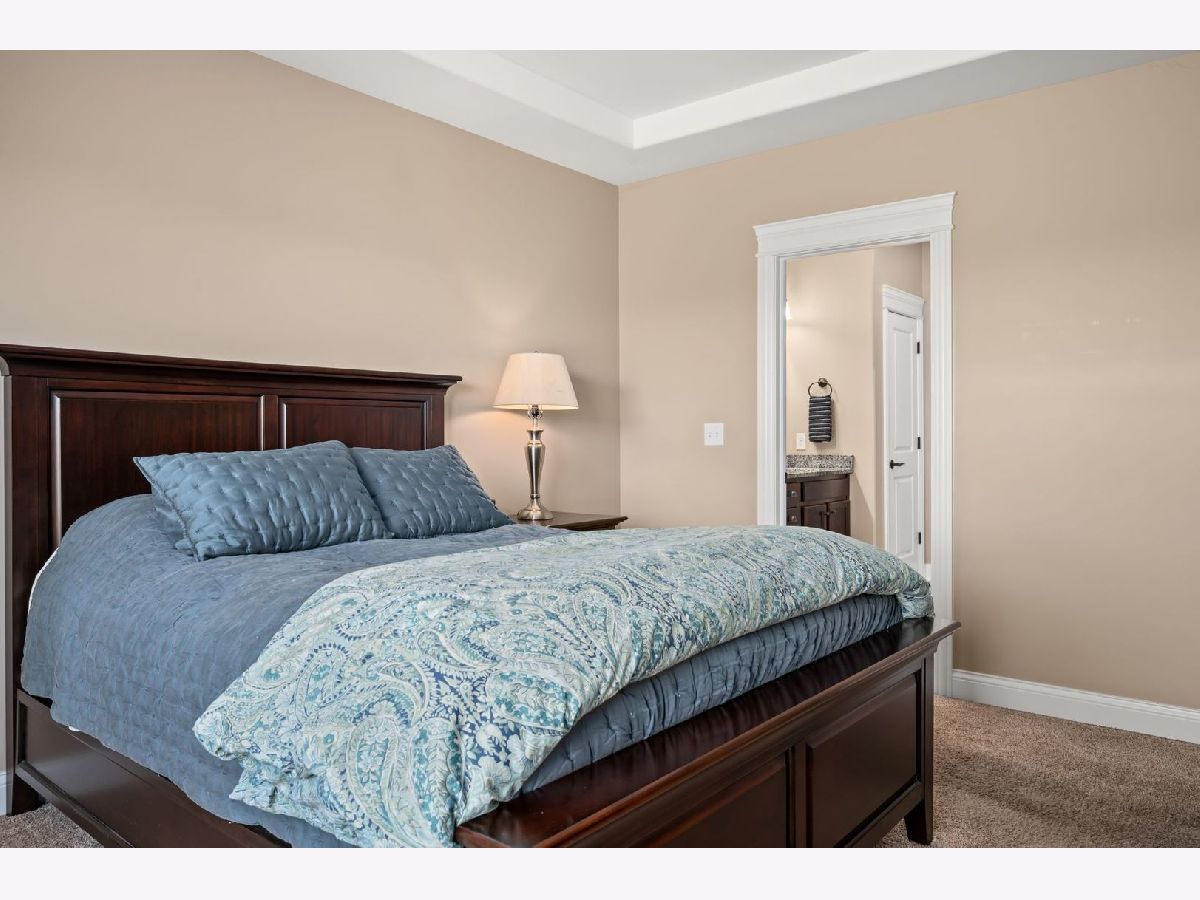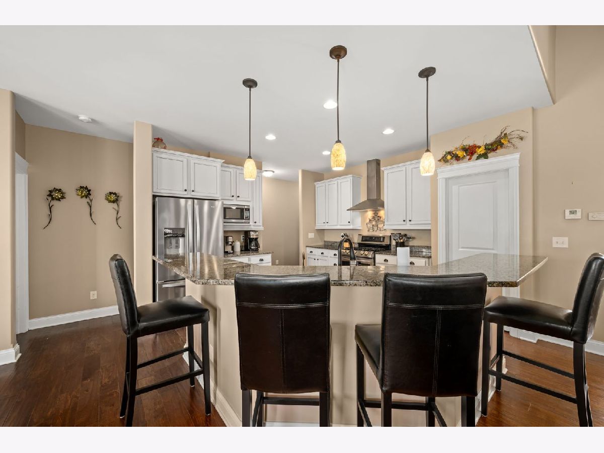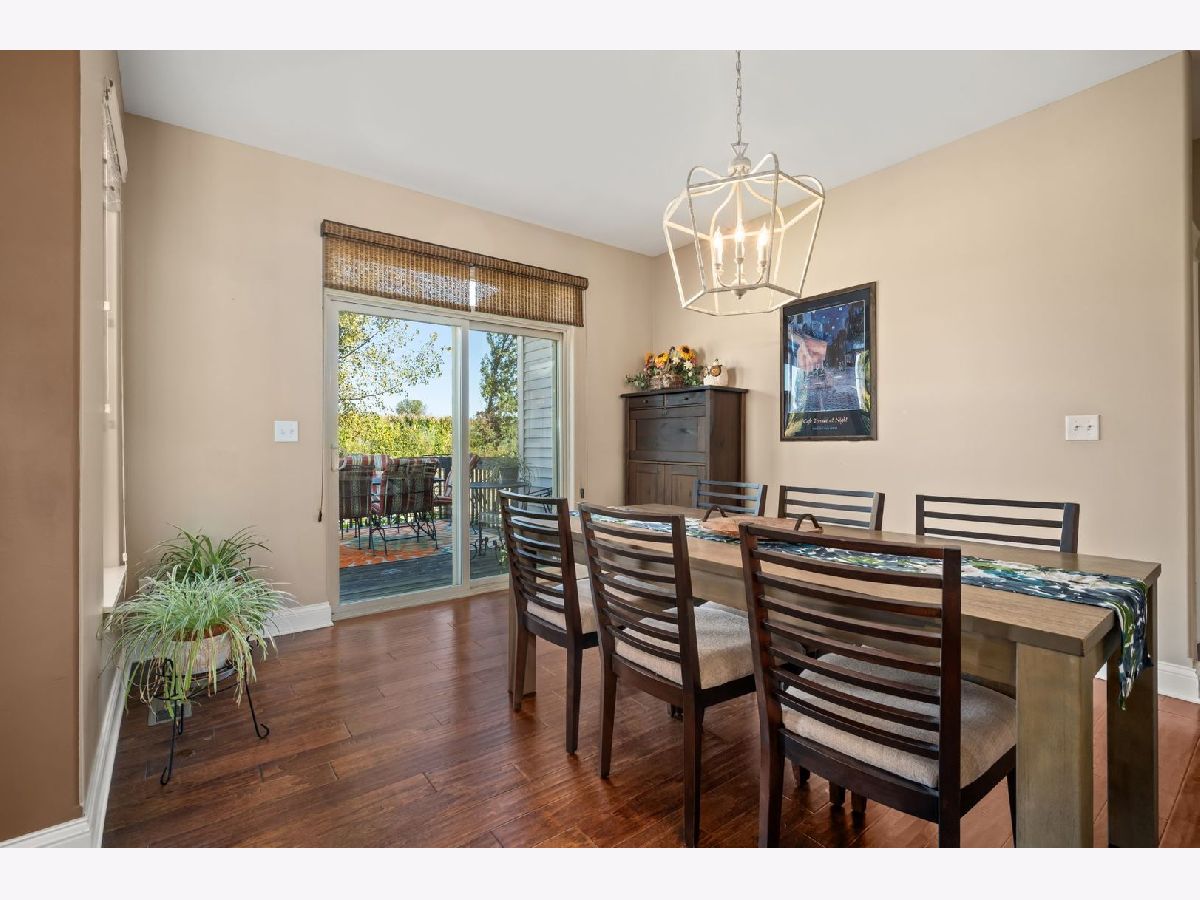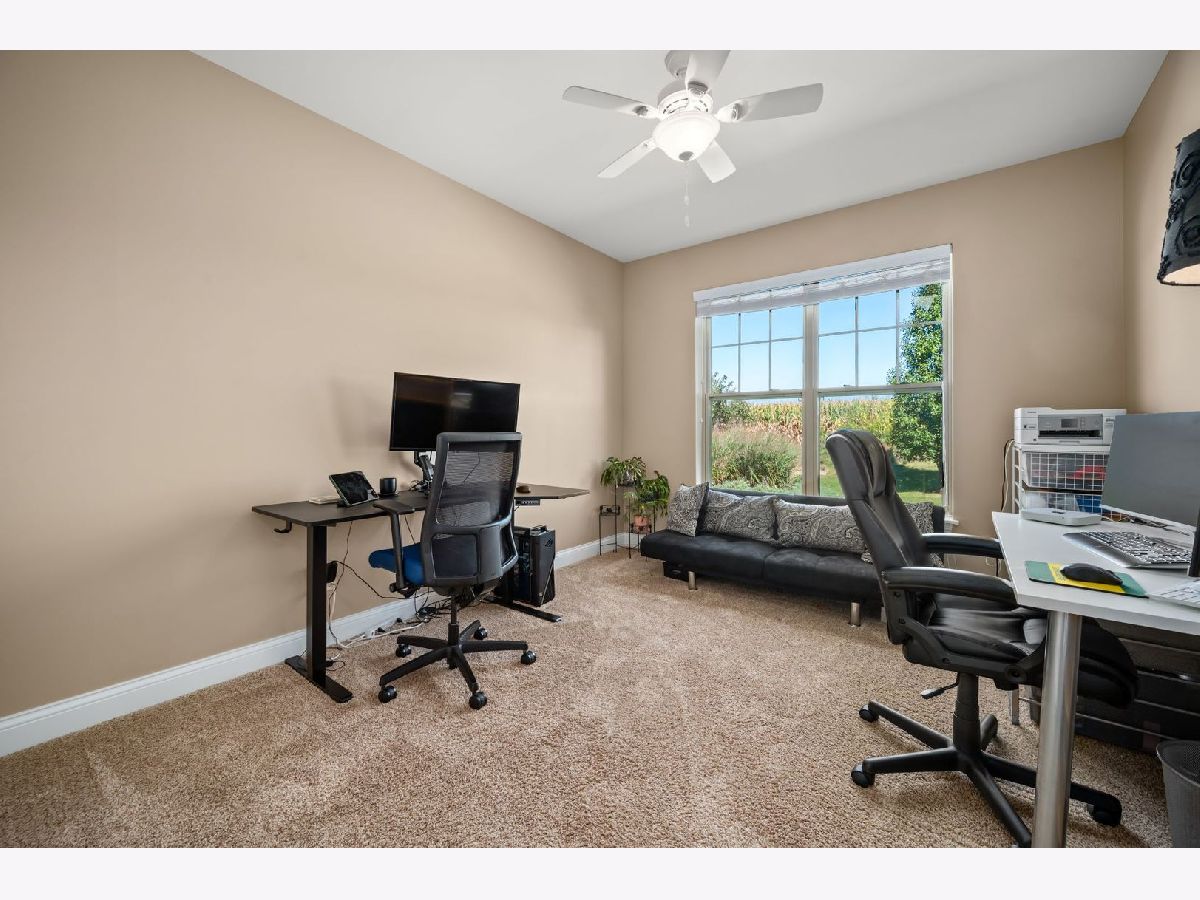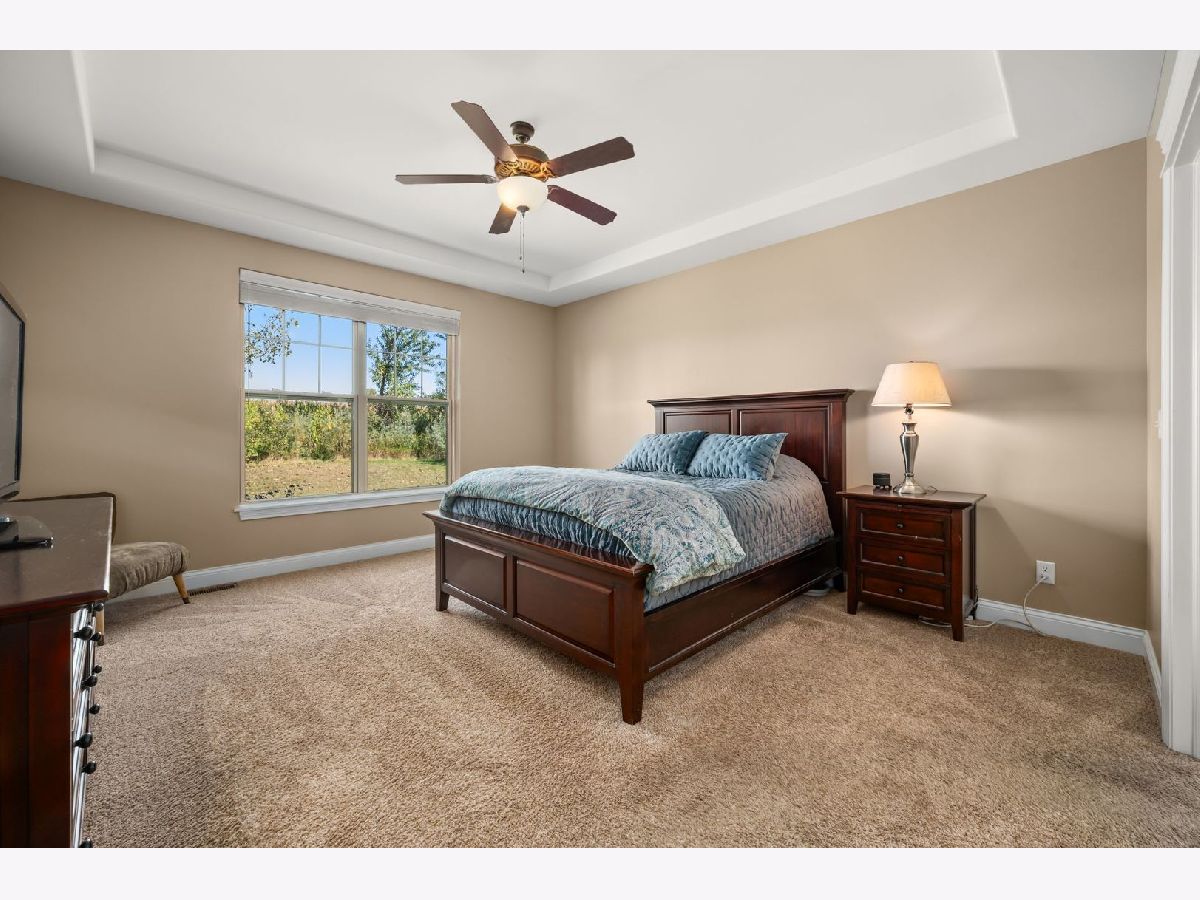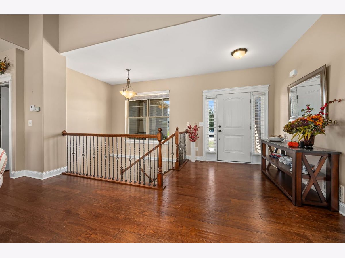 This stunning ranch located in North Grove Crossings boosts a welcoming covered front porch, open floor plan with grand foyer, open staircase, and gleaming engineered hardwood floors throughout. The foyer opens up to spacious family room with 13' tray ceiling and gas fireplace with wood mantle. The kitchen overlooks both the family room and dining room offers an extended island with a breakfast bar for casual dining and entertaining. The chef's kitchen features 2 toned cabinetry with soft close drawers and crown molding, granite countertops, stainless steel appliances, and walk-in pantry. The laundry is equipped with washer and dryer with shelving. You will love the privacy of split floor plan! The primary suite features tray ceiling and an en-suite bathroom with double sinks, tiled shower with Jolie showerhead, linen closet, and large walk-in closet. The 2 additional bedrooms with a hall bathroom located on opposite side of the house arounds off the first floor. If you need more room, check out the beautifully finished basement with living room, 4th bedroom, office, full bathroom, and storage rooms. The 14X12 deck overlooks meticulously landscaped, peaceful, and private backyard with a view of cornfields, making it the perfect retreat. 3 car garage, Sycamore Schools. Conveniently located near downtown Sycamore, shopping, dining, and I88. Make this your next move!