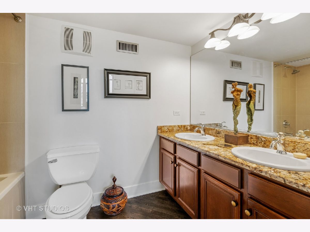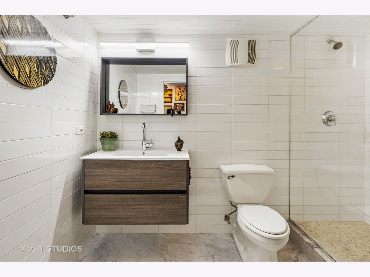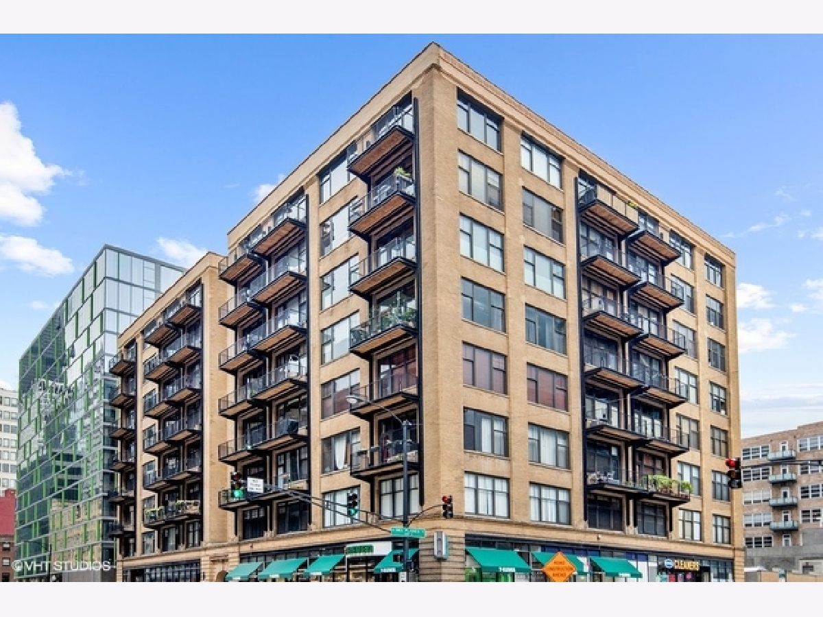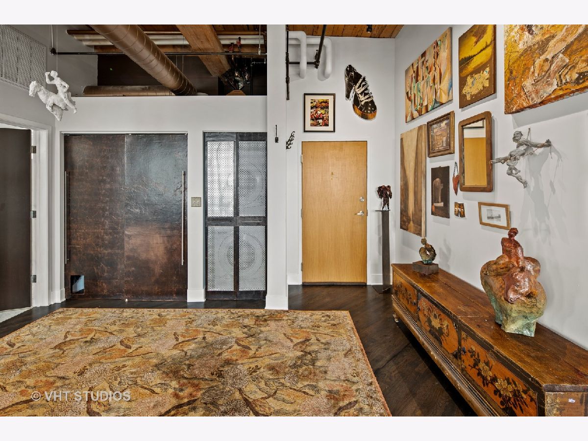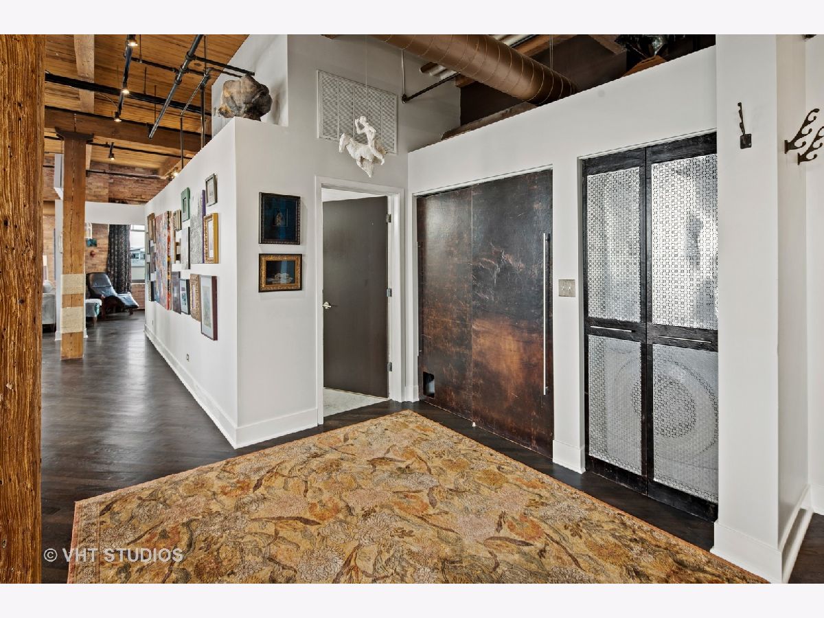 Beautiful penthouse loft filled with natural light in this one-of-a-kind South West corner timber loft at Capitol Hill Lofts in the West Loop that was two units combined from the developer (the top floor "04" two bed two bath with "05" one bed space) creating the largest loft in the building and only one like it with two 16'x5' balconies - one off kitchen for grilling and one off the living room. Filled with character this artist's loft offers exposed brick, soaring 13' timber ceilings, beams and columns, fifteen oversized 7' high loft windows, nearly 60' south-facing wall for all-day sunlight and almost 30' wall of west-facing light for incredible sunset views, and newly refinished, "aged barrel" dark stained hardwood floors throughout. The layout of this corner loft is ideal for the artist-owner who wanted huge open space filled with light in true open loft style with approximately 1,650 sq ft. Renovated chef's kitchen has a large island, quartzite countertops, stainless steel appliances including a SubZero 42" French door refrigerator, and a large walk-in pantry with chalkboard paint on the inside doors for your grocery list, to-do list or favorite recipes. Spacious primary bedroom has a wall of West windows, an organized walk-in closet, attached bathroom with double vanity, quartzite counters, and deep soaking tub with shower. The second full bathroom has a modern floating vanity, 18" Carrera white marble floors, white subway tiles on walls, ceiling and a frameless glass shower for a stylish, clean look. The large foyer is perfect for an art gallery wall and you have the conveniences of front-loading stackable washer/dryer, central air, and gas forced heat. A huge extra-wide attached garage parking space is included and can accommodate the largest SUV. Extra storage cage and bike room storage are included as well as a fitness center, Xfinity high-speed internet and cable, hot water, three elevators, package/mail room, onsite building engineer, and professional property management. Capitol Hill Lofts is a historic elevator building in hot West Loop neighborhood close to everything - transit, restaurants, shops and the Loop, gyms, Whole Foods, Mariano's, Target, Greek Town, Randolph and Fulton Market restaurant districts, 1 block from Heritage Green Park, Old St. Pat's Church, and short walk to Union Station, blue line train station, and more. Plus easy access to all highways for those who commute. A large artist's loft you don't want to miss!