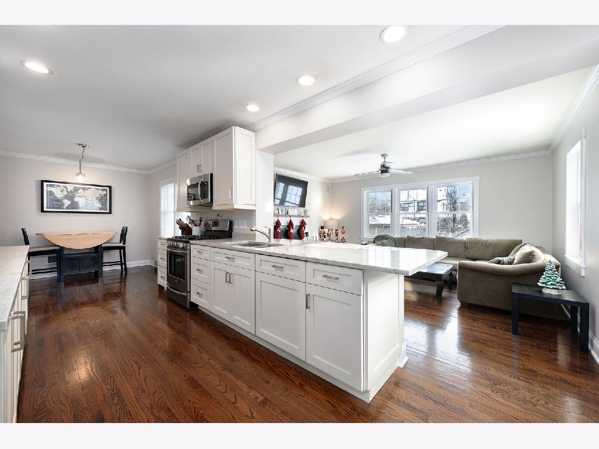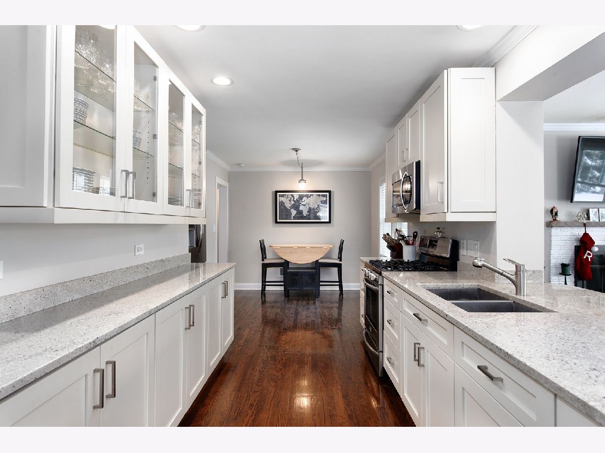 Close to vibrant downtown Arlingto Heights, this updated 2 bedroom, plus 1 bedroom/office in basement ranch with 2 full bathrooms is all you are looking for in your new home. The kitchen is updated with white cabinets, granite countertops, pantry cabinet and upgraded stainless appliances. Dining room is open to kitchen. First floor family room open to kitchen and has a wood burning fireplace, speaker surround system and is light and bright. Hardwood floors throught first floor. Bathroom was updated in 2018 all white , tile, marble floor, and glass door. 2 Bedrooms with hardwood floors and California closet organizers. Finished basement with recreation room, full bathroom, third bedroom/office, utility room and storage area. Exterior has Cement driveway & patio, detached 2.5 + garage with attached extra storage/workroom! Trude-build ranch freshly painted & super clean! Just blocks from Metra station, downtown shops & restaurants, Pioneer Park & Pool, South Middle School, Wayside church & school. Dont miss this gem!