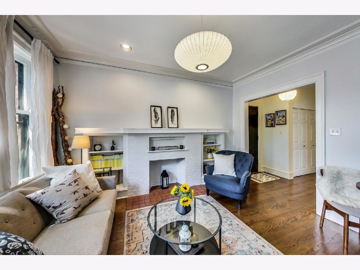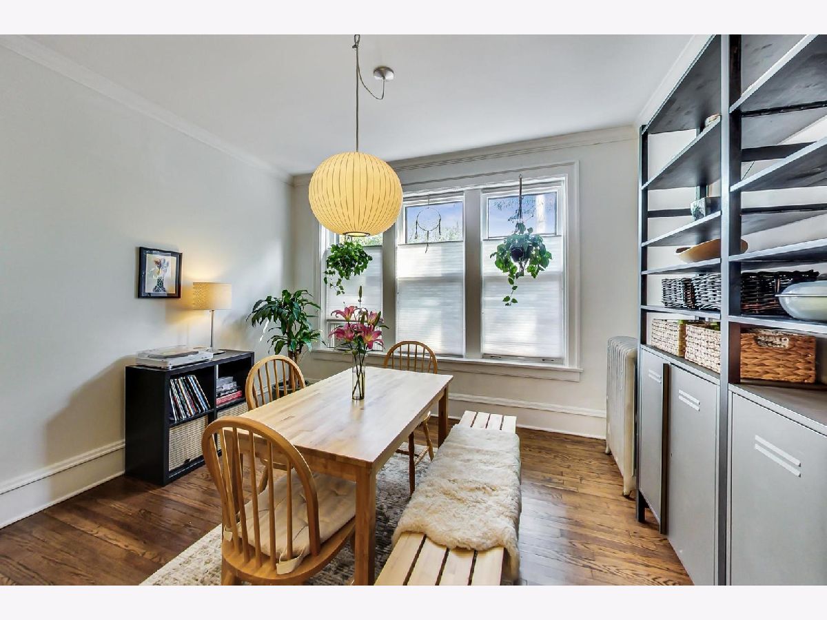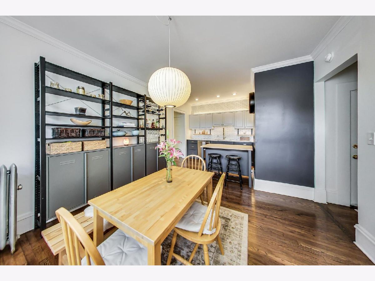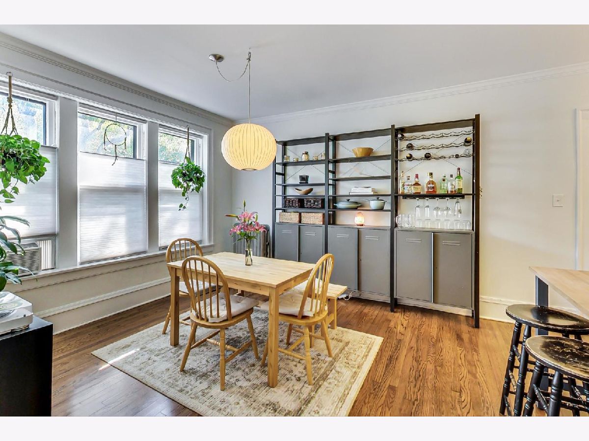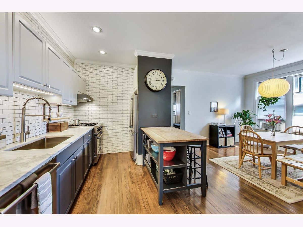 Uniqueness meets practicality and vintage charm meets modern sophistication in this recently rehabbed, character-rich, Edgewater Glen home! Awesome first-time buyer or investment opportunity! Great vintage details, including 9' ceilings, original crown moldings, lovely wood-framed windows and built-in bookcases on either side of a decorative fireplace. Custom mid-century modern lighting. The urban-cool kitchen features subway tile, newer stainless steel appliances, custom cabinetry, honed marble countertops and a maple butcher block island that acts a breakfast bar. Spacious and bright, the separate dining room features practical, design-appropriate shelving that transfers with the property and great southern exposure. Equally well thought out, the recently remodeled bath features a Grohe rainfall shower, custom made vanity and subway tile. Bedrooms are not back-to-back. Recently refinished hardwood flooring throughout. In-unit laundry. Personal, covered balcony. This sensational location is only a short walk from Whole Foods, the lakefront, beach and Edgewater's hottest boutiques, restaurants and entertainment venues. Quick and easy access to CTA Red Line trains and both express & local buses, Lake Shore Drive, Andersonville and the Bryn Mawr Historic District. Street parking is ample, free and easy! Pets welcome! Real estate taxes DO NOT reflect a Homeowner's Exemption. Other than a prohibition on short term rentals, there are no restrictions on owners who wish to lease their units.