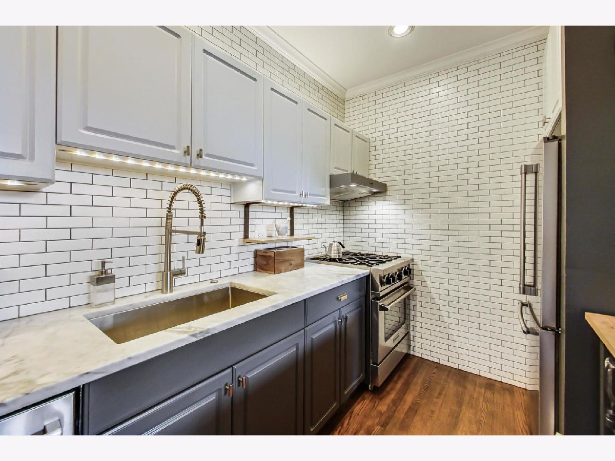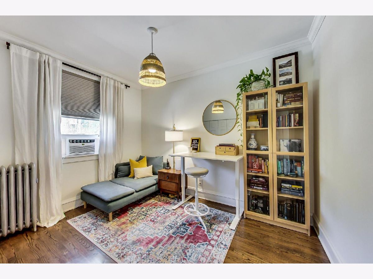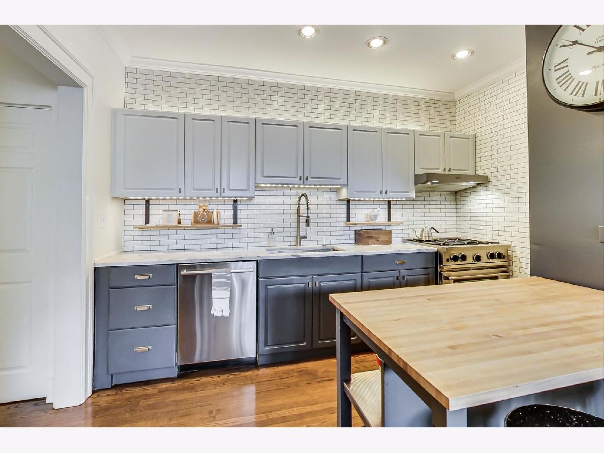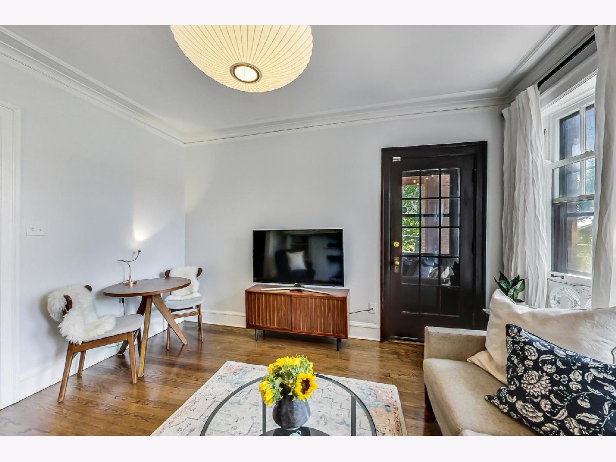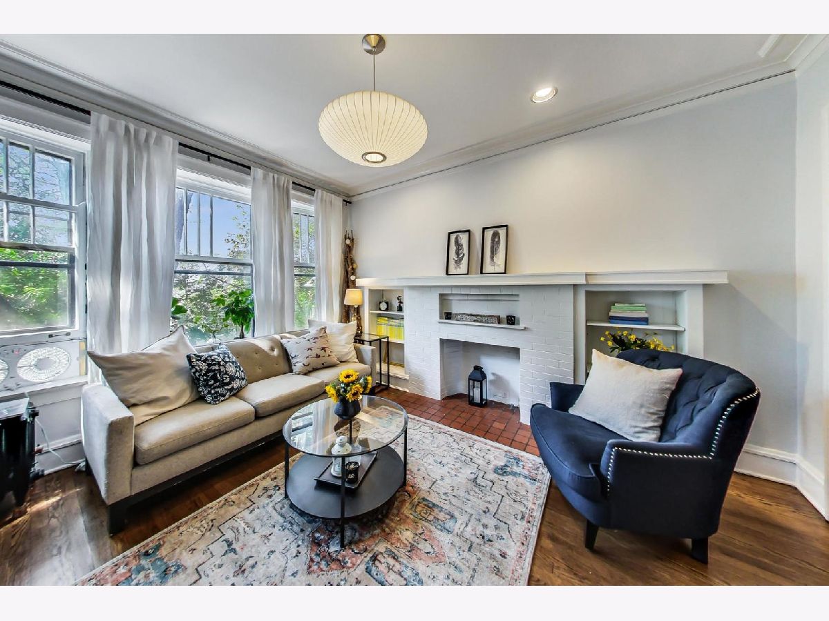 Uniqueness meets practicality and vintage charm meets modern sophistication in this recently rehabbed, character-rich, Edgewater Glen home! Awesome first-time buyer or investment opportunity! Great vintage details, including 9' ceilings, original crown moldings, lovely wood-framed windows and built-in bookcases on either side of a decorative fireplace. Custom mid-century modern lighting. The urban-cool kitchen features subway tile, newer stainless steel appliances, custom cabinetry, honed marble countertops and a maple butcher block island that acts a breakfast bar. Spacious and bright, the separate dining room features practical, design-appropriate shelving that transfers with the property and great southern exposure. Equally well thought out, the recently remodeled bath features a Grohe rainfall shower, custom made vanity and subway tile. Bedrooms are not back-to-back. Recently refinished hardwood flooring throughout. In-unit laundry. Personal, covered balcony. This sensational location is only a short walk from Whole Foods, the lakefront, beach and Edgewater's hottest boutiques, restaurants and entertainment venues. Quick and easy access to CTA Red Line trains and both express & local buses, Lake Shore Drive, Andersonville and the Bryn Mawr Historic District. Street parking is ample, free and easy! Pets welcome! Real estate taxes DO NOT reflect a Homeowner's Exemption. Other than a prohibition on short term rentals, there are no restrictions on owners who wish to lease their units.