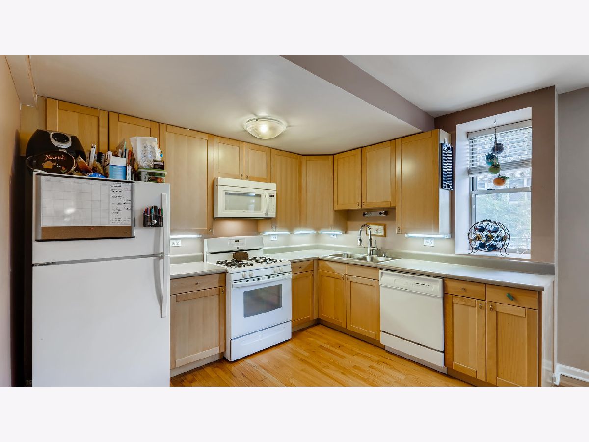 Live in the center of it all in this 2 bed garden unit featuring soaring ceilings and excellent natural light throughout the open concept floor plan. The living area is warm and welcoming with hardwood flooring that continues into the bedrooms. Large windows draw you in to the living room and dining room both offering plenty of room for seating. The updated kitchen features a great layout with ample counter space, under cabinet lighting, a 3-year old refrigerator and a new garbage disposal. Both comfortable bedrooms feature ceiling fans for comfort while the master bedroom also has a walk-in closet. They share a nicely appointed hall bathroom. Create an outdoor oasis on the covered patio with plenty of space for dining or relaxing. The A/C and furnace are just 2-years old keeping utility costs low. GREAT location just a short walk to everything: 4 min. to Aldi, 5 min. to the Granville Red Line Station, 8 min. to Loyola and 9 min. to Whole Foods and the lake!