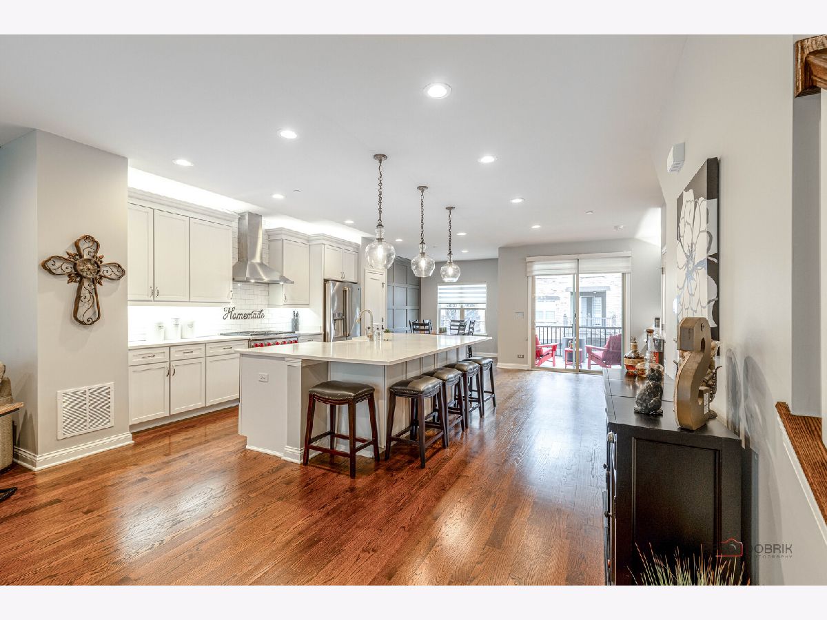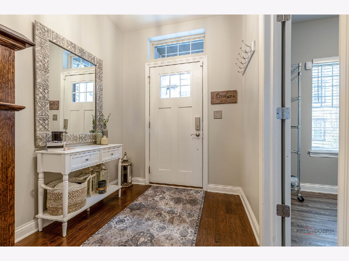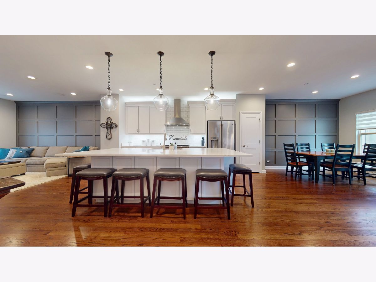 Impeccably upgraded and thoughtfully designed, this home showcases exceptional care and attention to detail at every turn. From custom moldings and designer blinds to plush, high-end carpet with waterproof and pet-proof padding, every feature has been carefully selected. Solid core doors, extra-wide baseboards, and a whole-house surge protector are just a few of the many premium upgrades (see the full improvement list for more). A private entrance welcomes you into a versatile flex space-perfect for a home office, gym, or even a first-floor bedroom. With plumbing already roughed in for a full bath, you've got flexibility to tailor the space exactly to your needs. Upstairs, the main living area unfolds in a bright, open-concept design where the sun-drenched living room-complete with built-in surround sound-flows seamlessly into the dining space and a chef's kitchen that effortlessly blends style and function-an ideal setting for both lively gatherings and everyday living. This is where culinary creativity meets everyday comfort. The kitchen is more than just a beautiful space-it's the heart of the home, where morning coffee rituals, holiday baking sessions, and weeknight dinners come to life. Crisp white cabinetry with roll-out shelves, soft-close drawers, and elegant crown molding provides both style and function. Stunning Quartz countertops offer ample prep space, while the chic porcelain Kohler farmhouse sink invites you to slow down and savor the little things-like rinsing fresh-picked herbs or scrubbing vegetables from the local farmers market. A full suite of premium stainless-steel appliances-including a Wolf oven, GE Cafe refrigerator, Panasonic microwave, and Asko dishwasher-supports every culinary moment, from quick weekday bites to elaborate dinners with friends. Under-cabinet lighting casts a soft, inviting glow-perfect for early-morning coffee or those quiet, late-night snacks. At the center of it all, the spacious island brings everyone together with bar seating perfect for casual conversations or laid-back recipe planning. A built-in desk adds a dedicated spot for schoolwork, catching up on emails, or staying organized throughout the day. Head out the slider to your covered patio, complete with a ceiling fan and gas line this is an ideal spot for quiet evenings or lively summer BBQs. Back inside, a stylish powder room rounds out the main living level. Upstairs, unwind in the main bedroom featuring a walk-in closet and a spa-inspired en suite with dual vanities and a tiled shower behind a charming barn door. Two more generously sized bedrooms, a second full bath, and a laundry room (also with a barn door!) provide everyday convenience. Attached 2-car garage and a location that can't be beat-just minutes from Independence Grove and all the charm of downtown Libertyville, including farmers markets, dining hotspots, and boutique shopping.