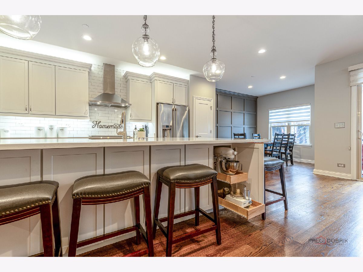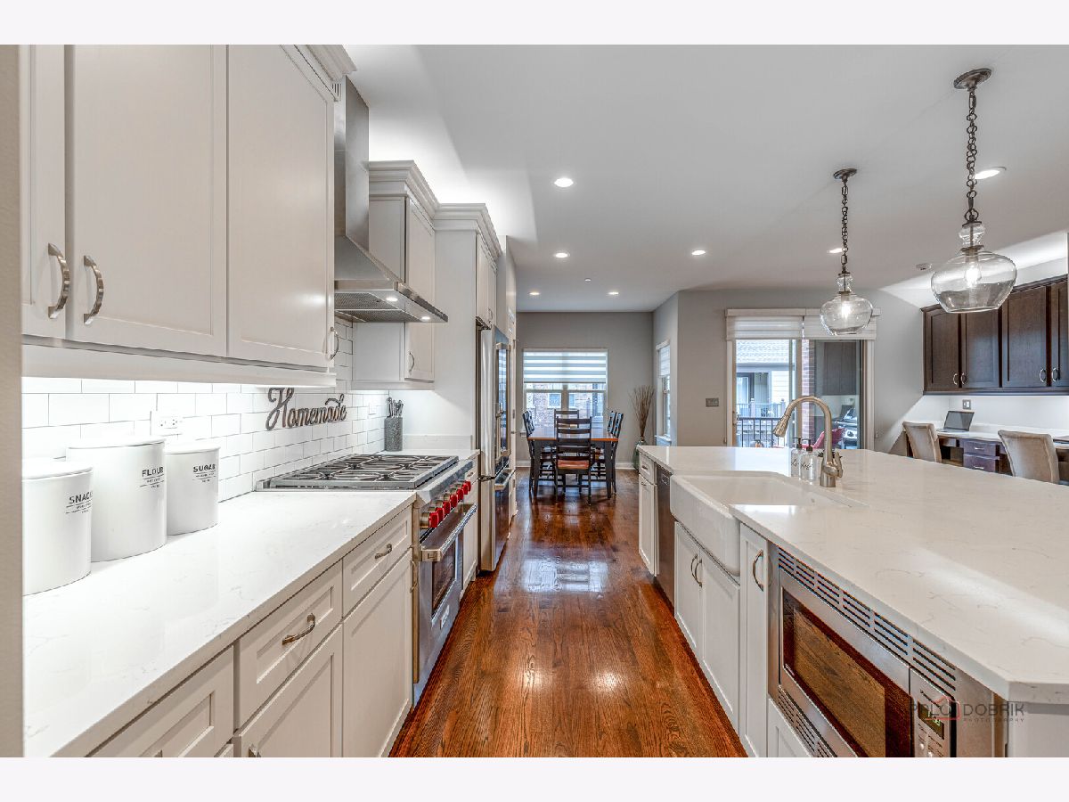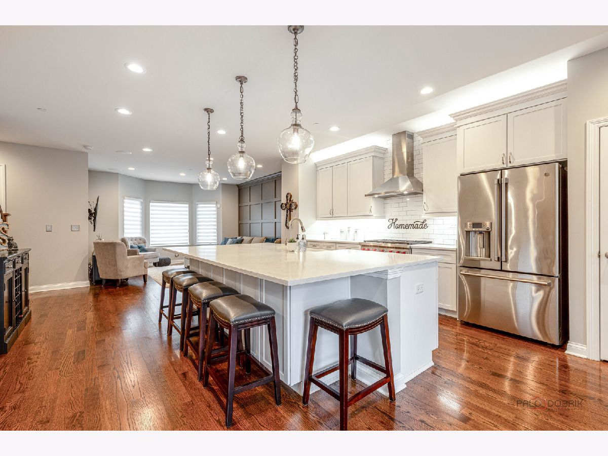 Impeccably upgraded and thoughtfully designed, this home showcases exceptional care and attention to detail at every turn. From custom moldings and designer blinds to plush, high-end carpet with waterproof and pet-proof padding, every feature has been carefully selected. Solid core doors, extra-wide baseboards, and a whole-house surge protector are just a few of the many premium upgrades (see the full improvement list for more). A private entrance welcomes you into a versatile flex space-perfect for a home office, gym, or even a first-floor bedroom. With plumbing already roughed in for a full bath, you've got flexibility to tailor the space exactly to your needs. Upstairs, the main living area unfolds in a bright, open-concept design where the sun-drenched living room-complete with built-in surround sound-flows seamlessly into the dining space and a chef's kitchen that effortlessly blends style and function-an ideal setting for both lively gatherings and everyday living. This is where culinary creativity meets everyday comfort. The kitchen is more than just a beautiful space-it's the heart of the home, where morning coffee rituals, holiday baking sessions, and weeknight dinners come to life. Crisp white cabinetry with roll-out shelves, soft-close drawers, and elegant crown molding provides both style and function. Stunning Quartz countertops offer ample prep space, while the chic porcelain Kohler farmhouse sink invites you to slow down and savor the little things-like rinsing fresh-picked herbs or scrubbing vegetables from the local farmers market. A full suite of premium stainless-steel appliances-including a Wolf oven, GE Cafe refrigerator, Panasonic microwave, and Asko dishwasher-supports every culinary moment, from quick weekday bites to elaborate dinners with friends. Under-cabinet lighting casts a soft, inviting glow-perfect for early-morning coffee or those quiet, late-night snacks. At the center of it all, the spacious island brings everyone together with bar seating perfect for casual conversations or laid-back recipe planning. A built-in desk adds a dedicated spot for schoolwork, catching up on emails, or staying organized throughout the day. Head out the slider to your covered patio, complete with a ceiling fan and gas line this is an ideal spot for quiet evenings or lively summer BBQs. Back inside, a stylish powder room rounds out the main living level. Upstairs, unwind in the main bedroom featuring a walk-in closet and a spa-inspired en suite with dual vanities and a tiled shower behind a charming barn door. Two more generously sized bedrooms, a second full bath, and a laundry room (also with a barn door!) provide everyday convenience. Attached 2-car garage and a location that can't be beat-just minutes from Independence Grove and all the charm of downtown Libertyville, including farmers markets, dining hotspots, and boutique shopping.