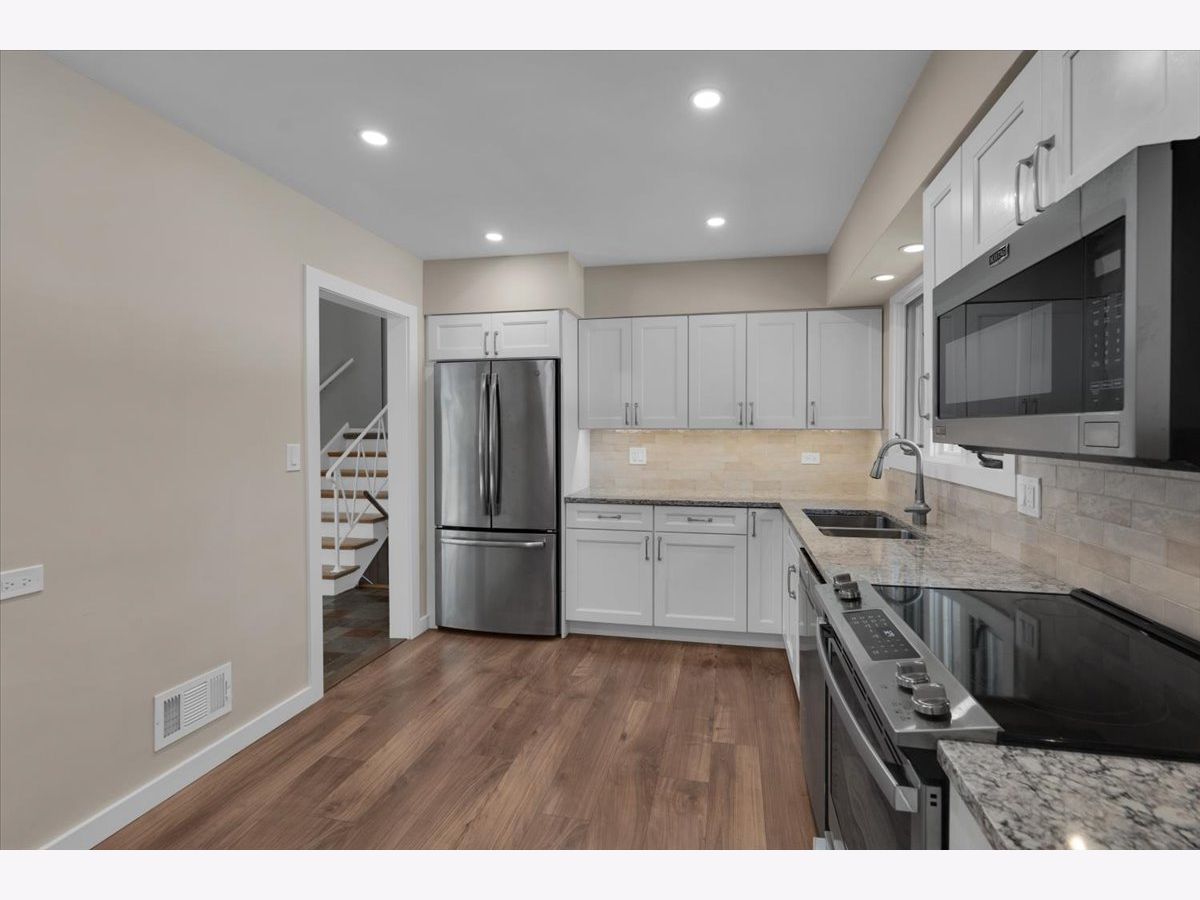 Beautifully updated home with amazing curb appeal, fantastic yard and a well appointed kitchen - complete with granite counters, tile backsplash, shaker cabinets, all stainless steel appliances. There's also fresh paint, new flooring and new lighting throughout most of the home. The four levels of living space plus the large utility/storage room provides so much room! The back patio is great for relaxing or entertaining... Not to mention the fantastic location near the end of a dead-end street! That means there will be virtually no traffic and extremely quiet - yet only one mile from the METRA station and downtown Mount Prospect. Closer still to the Lions Recreation Center and Sunrise Park!