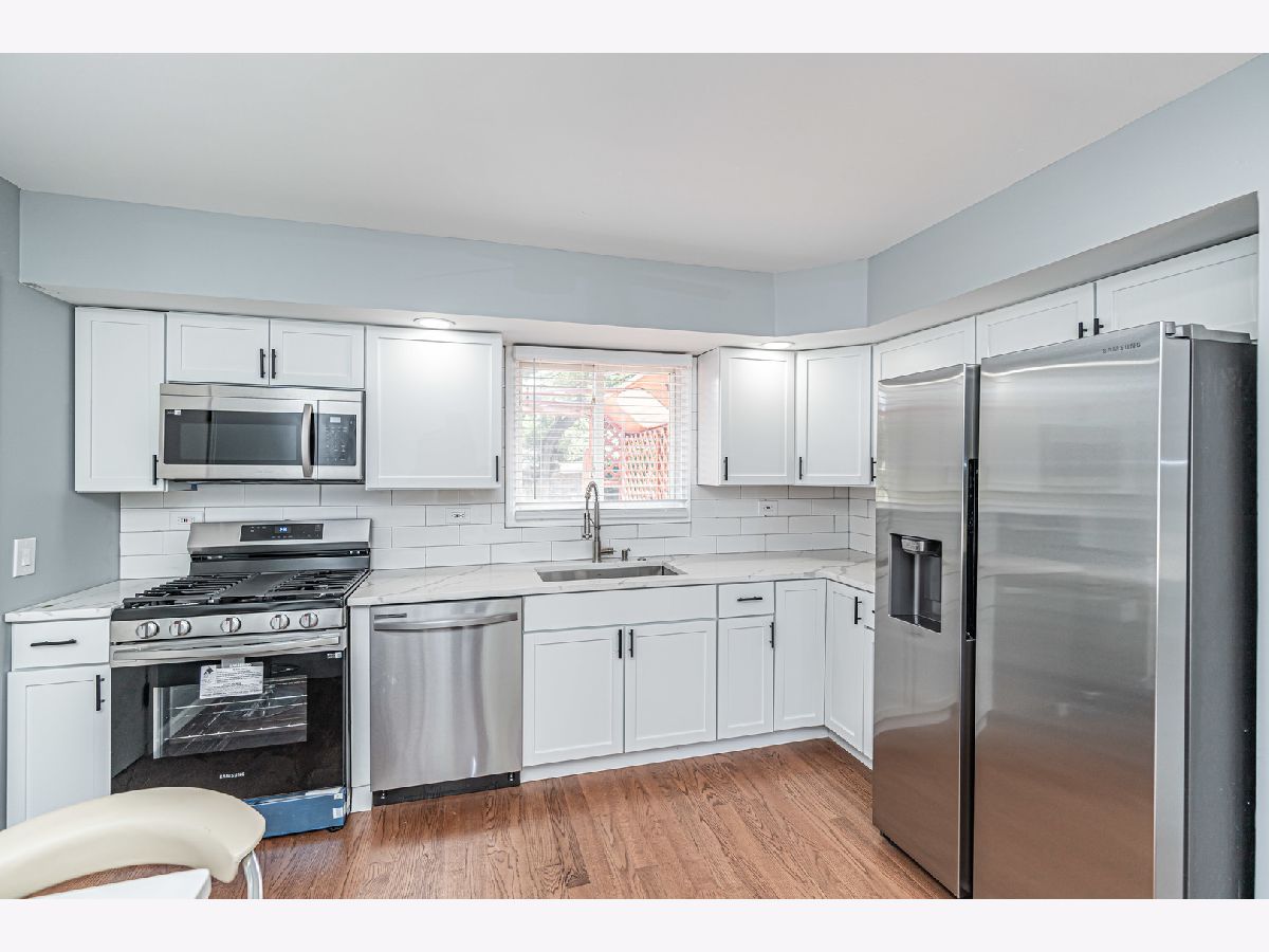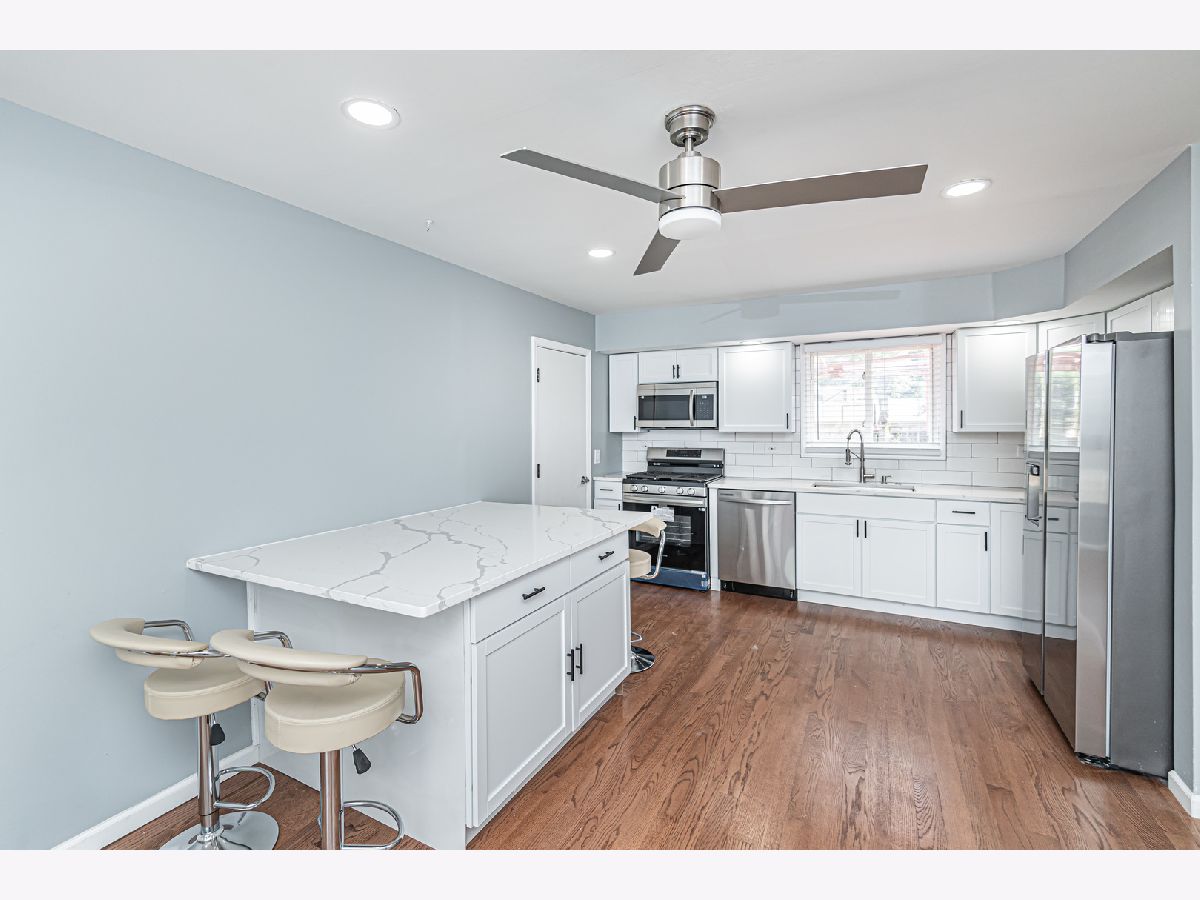 Take a look at this updated home in Palatine! The house features a modern neutral color scheme and thoughtful upgrades throughout. The main level boasts a spacious eat-in kitchen with an extended island, a large family room, and a half bath with access to a generous deck and private, fenced-in backyard. The brand-new kitchen includes all-new shaker cabinets, stainless steel appliances, and quartz countertops. Upstairs, you'll find the master bedroom, new carpeting throughout, and a total of four well-sized bedrooms and two full baths. Finished walk-out basement offers additional living space with a family room, extra office space, and a utility room. Enjoy the large backyard and attached one-car garage. Plus, the home has a new HVAC system (2024) and roof (2024)! Conveniently located with easy highway access and close to shopping, dining, schools, parks, and entertainment.