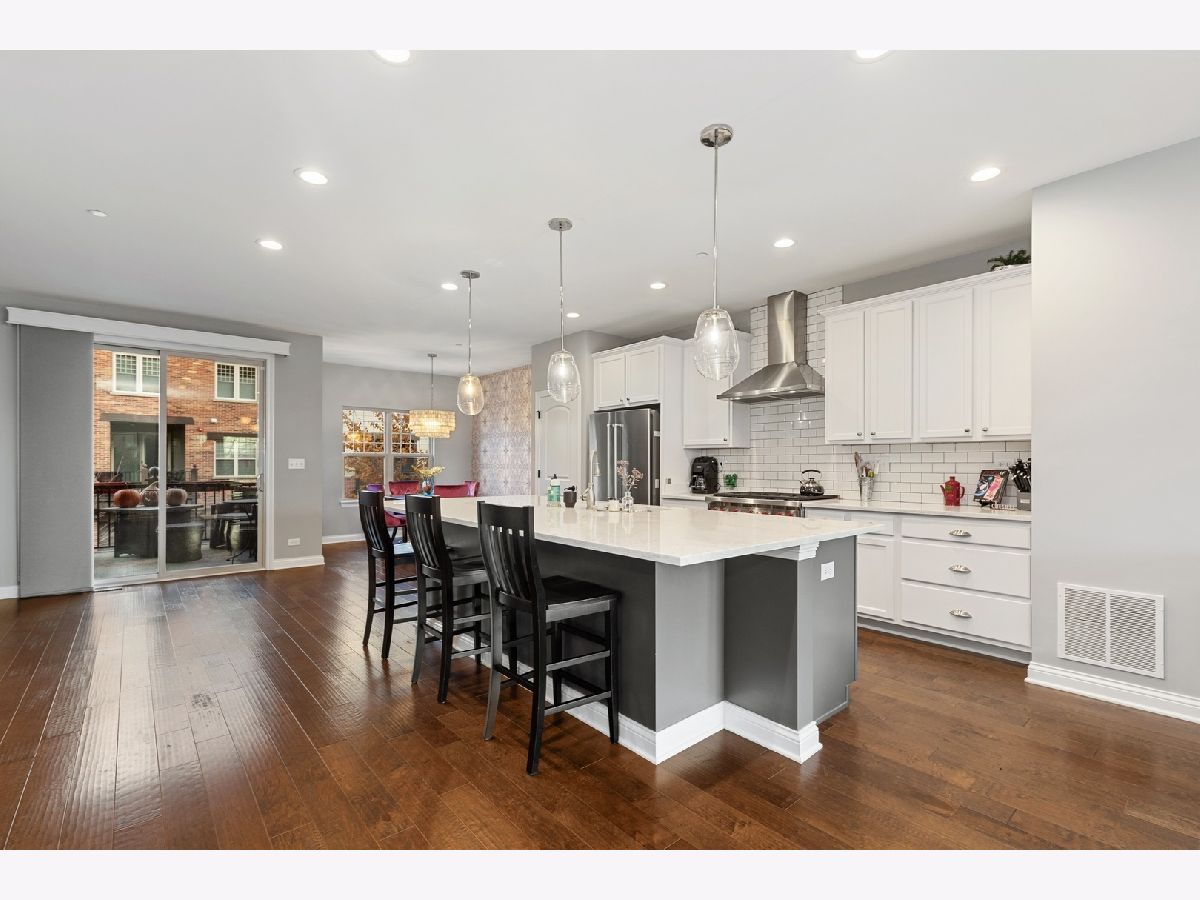 Move right into this sleek & sophisticated Libertyville Townhome. This newer development is perfectly located in close proximity to the Metra train & downtown restaurants, shops & boutiques with easy access to parks, lake & walking paths. The open-concept main living area's features include high ceilings, 42-inch white birch shaker style cabinets, designer back splash, all stainless appliances, oak hardwood floors, an oversized quartz island with space for seating & enough room for a dining table, a built-in double desk for homework or office, Living Room, Walk Out Balcony & Pond views. All three Bedrooms are on the Third Level. The elegant owner's suite includes a spa-like bath, plantain shutters & an extra large walk-in closet. Other amenities include 2nd floor Washer & Dryer, 2 car heated garage parking, a large storage room on the main level that could be used as an office or additional bedroom, roughed in for another bathroom. Enjoy everything the Great City of Libertyville has to offer!