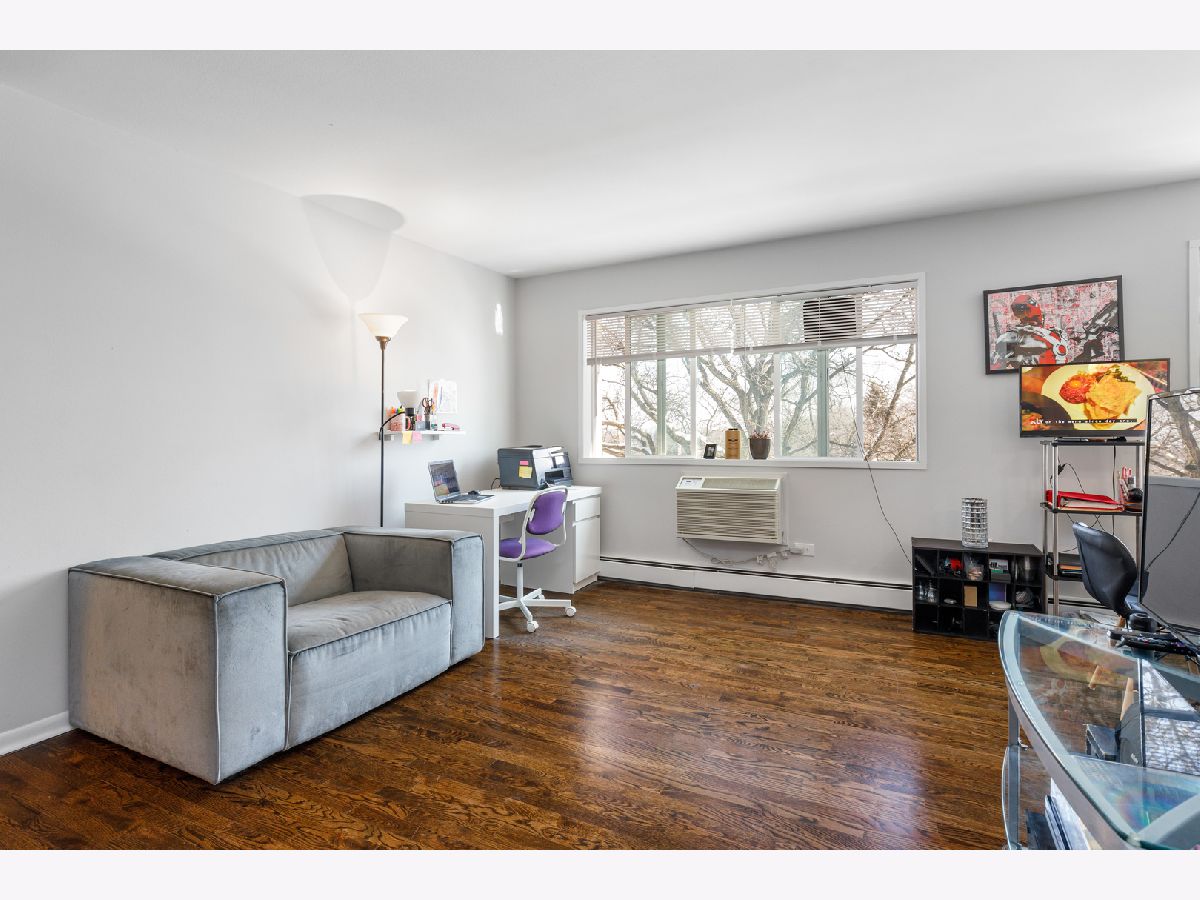 Bright and spacious two bedroom condo with 1.5 baths. Hardwood floors throughout, Master bedroom with bath and walk-in-closet. Kitchen consists of granite counter top with new bush nickel facet to match updated stainless-steel appliances. There is a common laundry area in addition to the installed in-unit washer and dry hookup. Unit does come with a storage locker and 1 deeded parking. The property complex does have additional guest parking, intercom system, elevator and in the New Trier School District.
